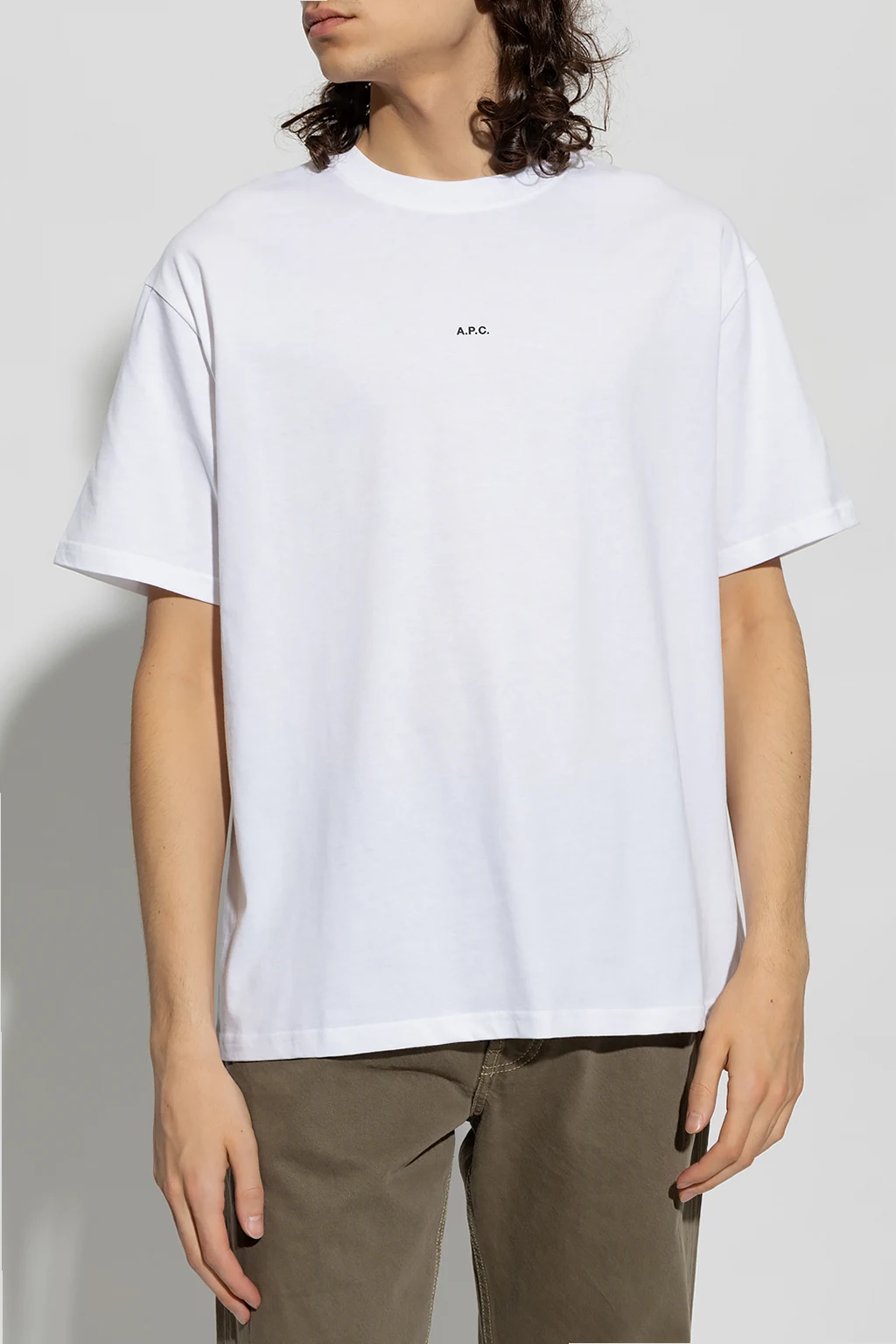 White ‘Kyle’ T-shirt from A.P.C. Crafted from organic cotton, this short sleeve design features a black logo print and ribbed crew neck.