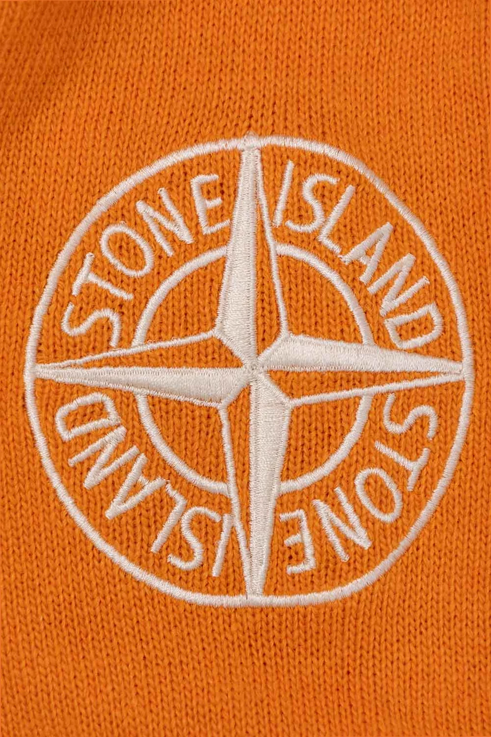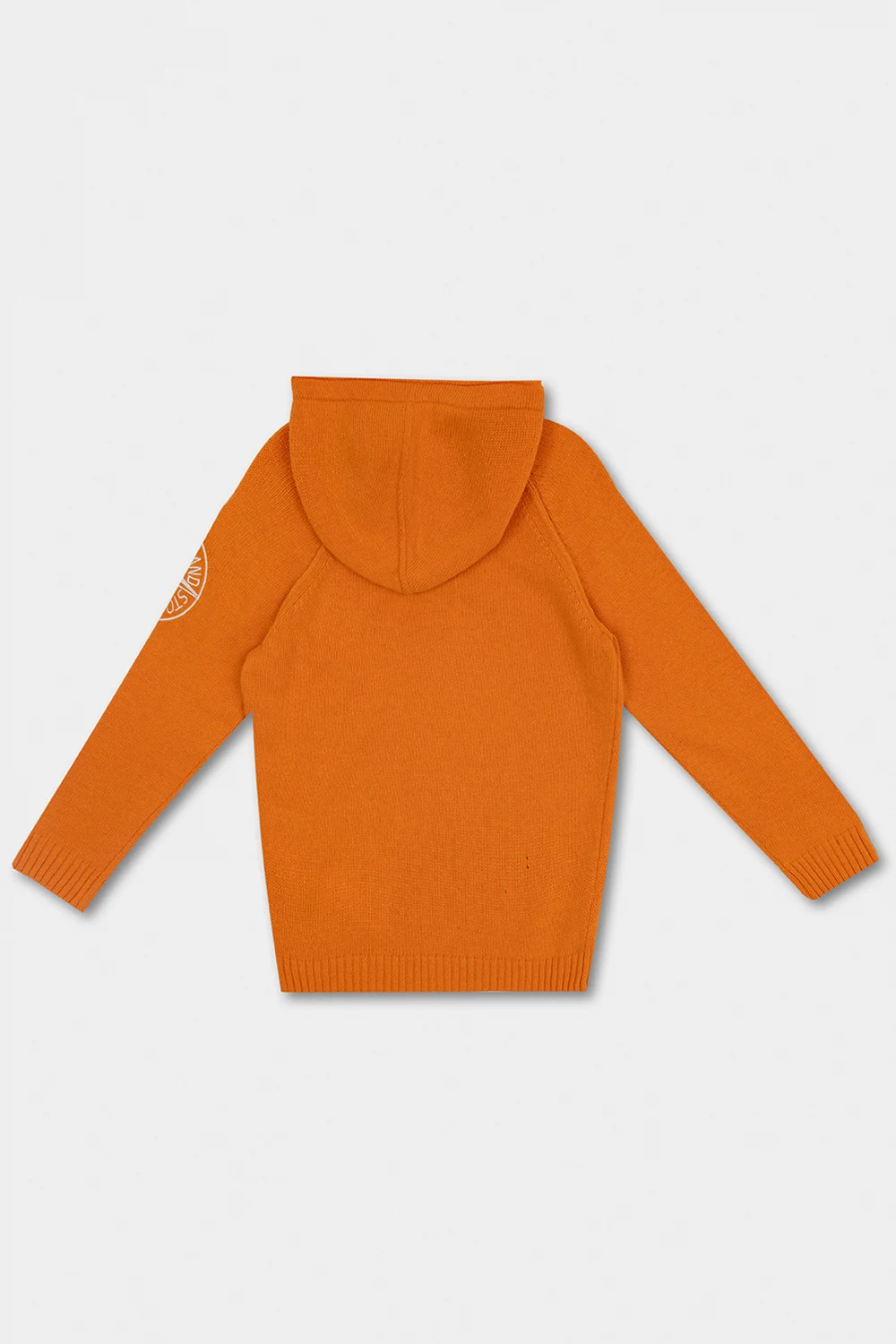Orange sweater with a hood from Stone Island Kids. Crafted from a wool blend, this style features an embroidered logo on the front and ribbed trims on the bottom hem and cuffs.