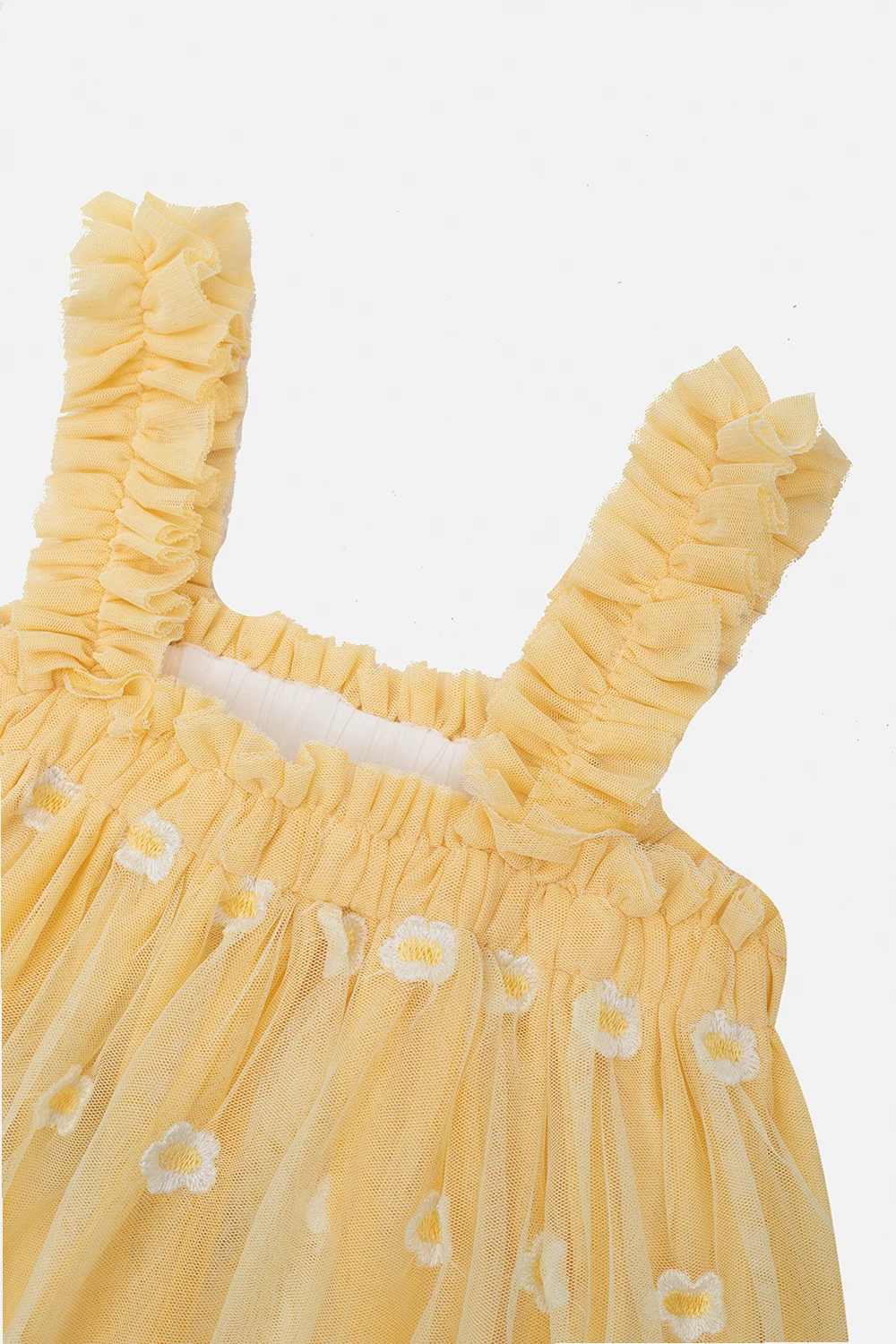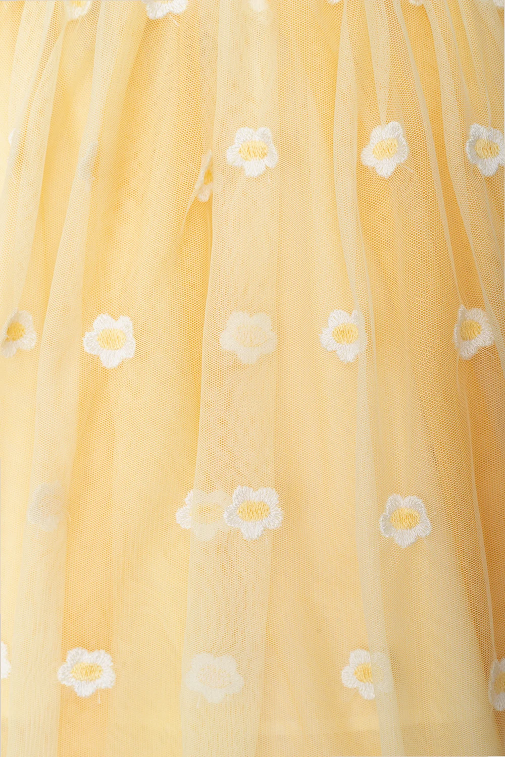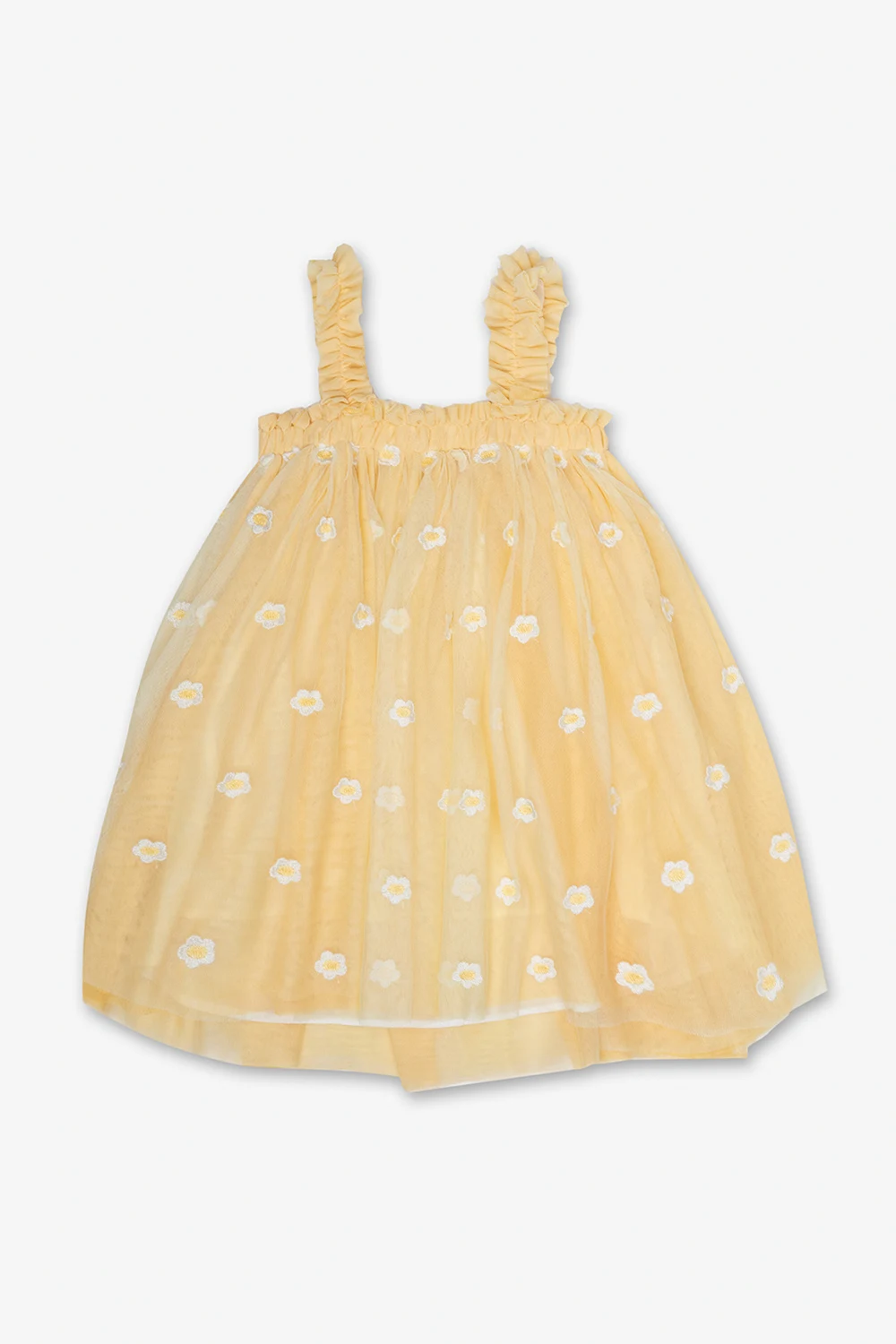 Yellow slip dress from Stella McCartney Kids. Emblazoned with a floral motif, this style features a flared hem.