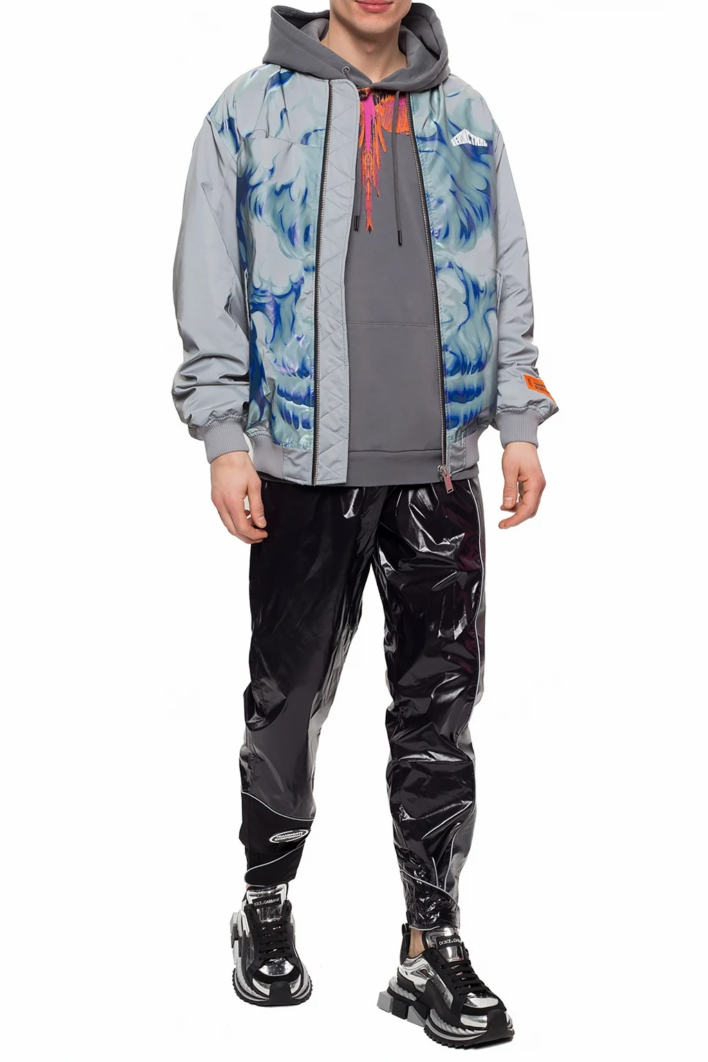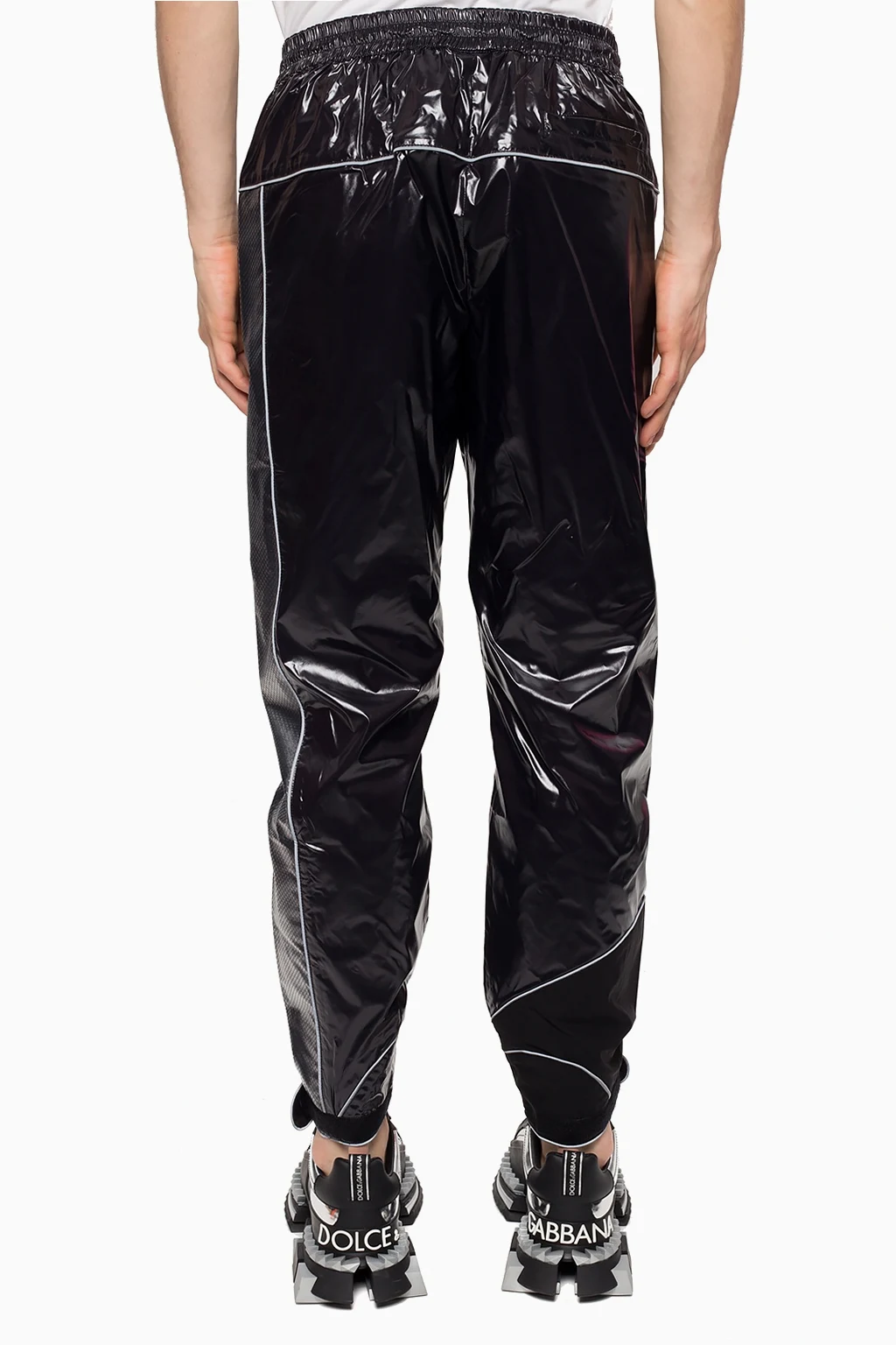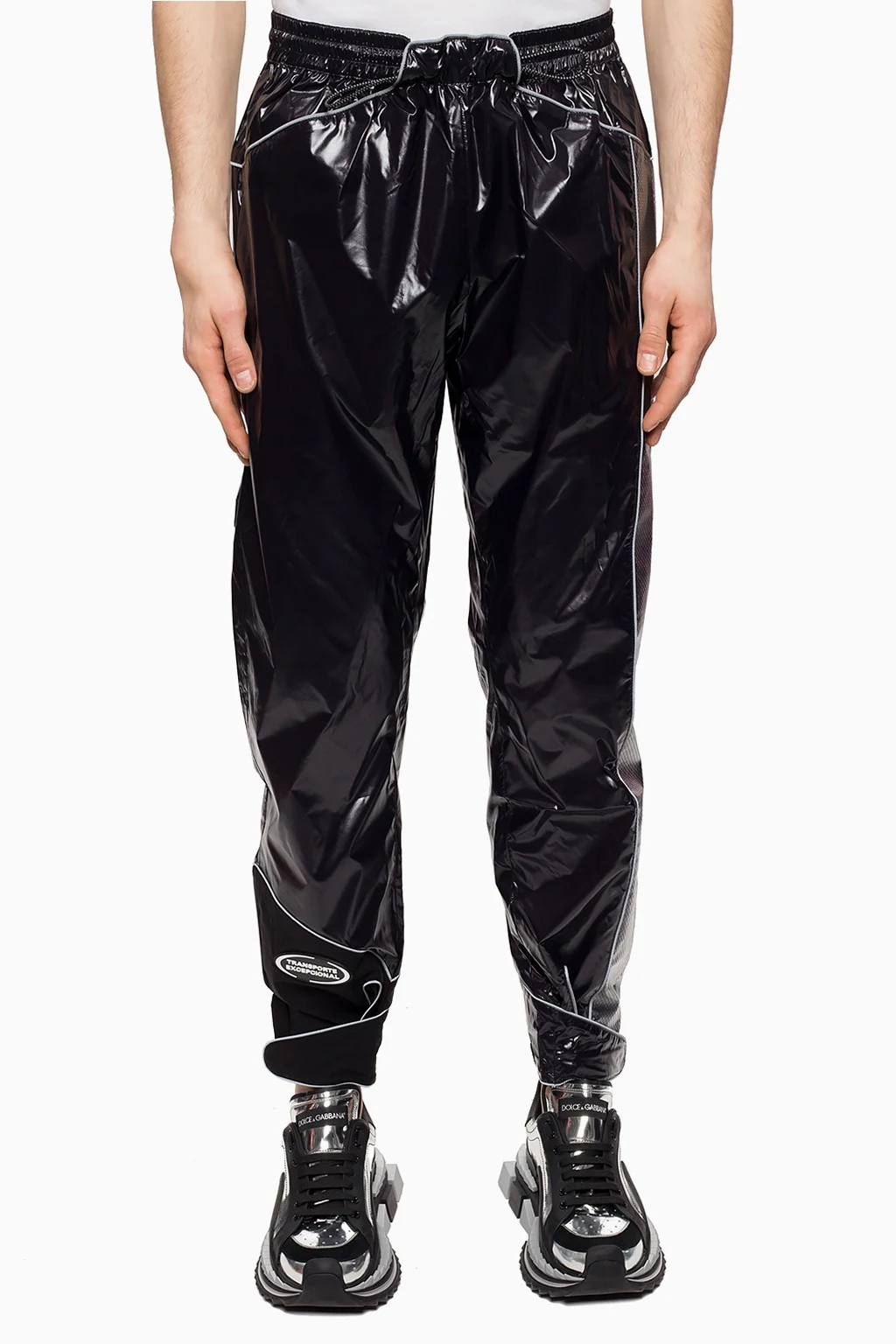 Black trousers from Marcelo Burlon. Pulled with drawcords at the waist. Embellished with rubberised appliqué and reflective inserts. Feature two inset front pockets and legs detailed with velcro-fastened vents.