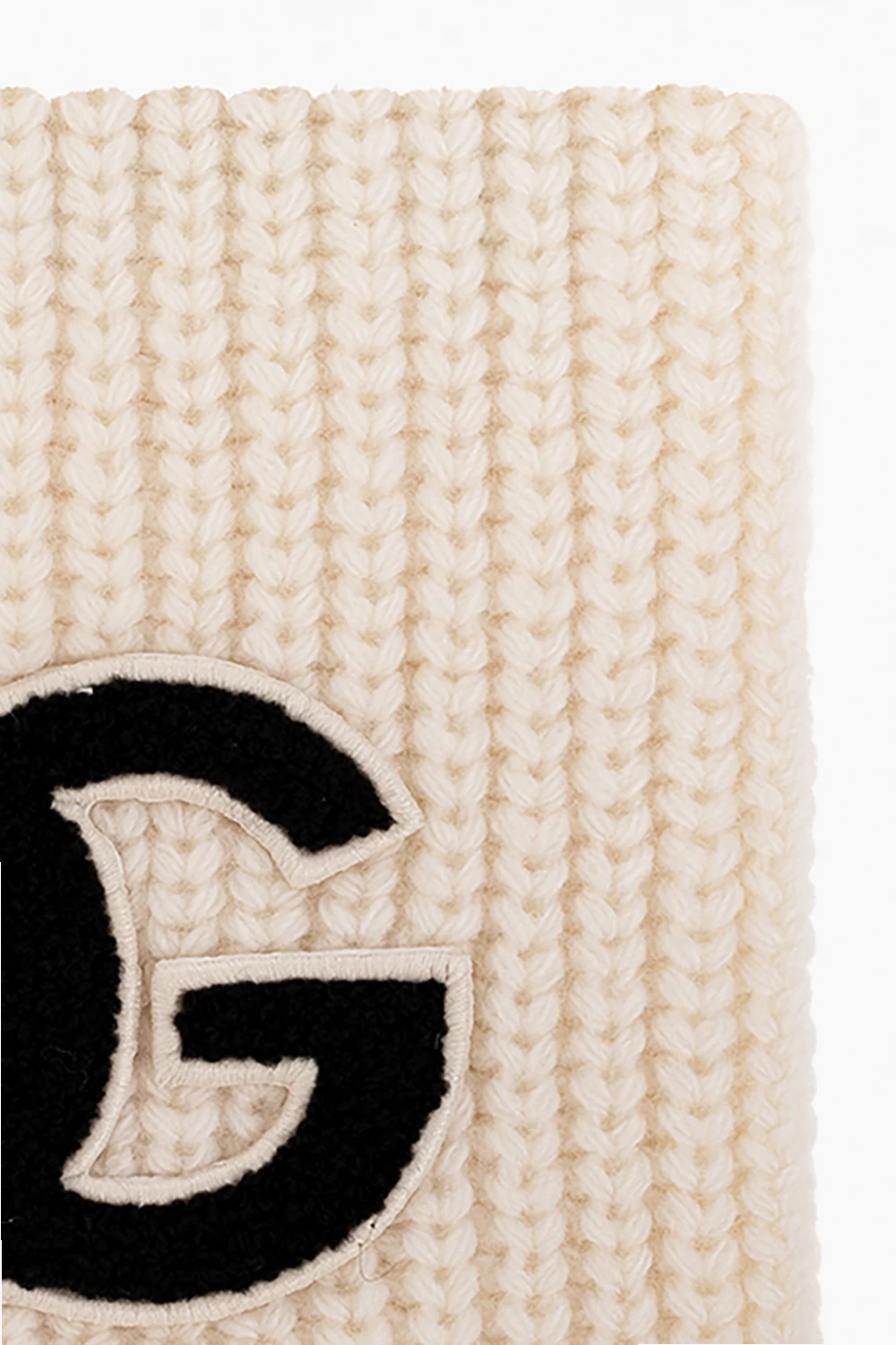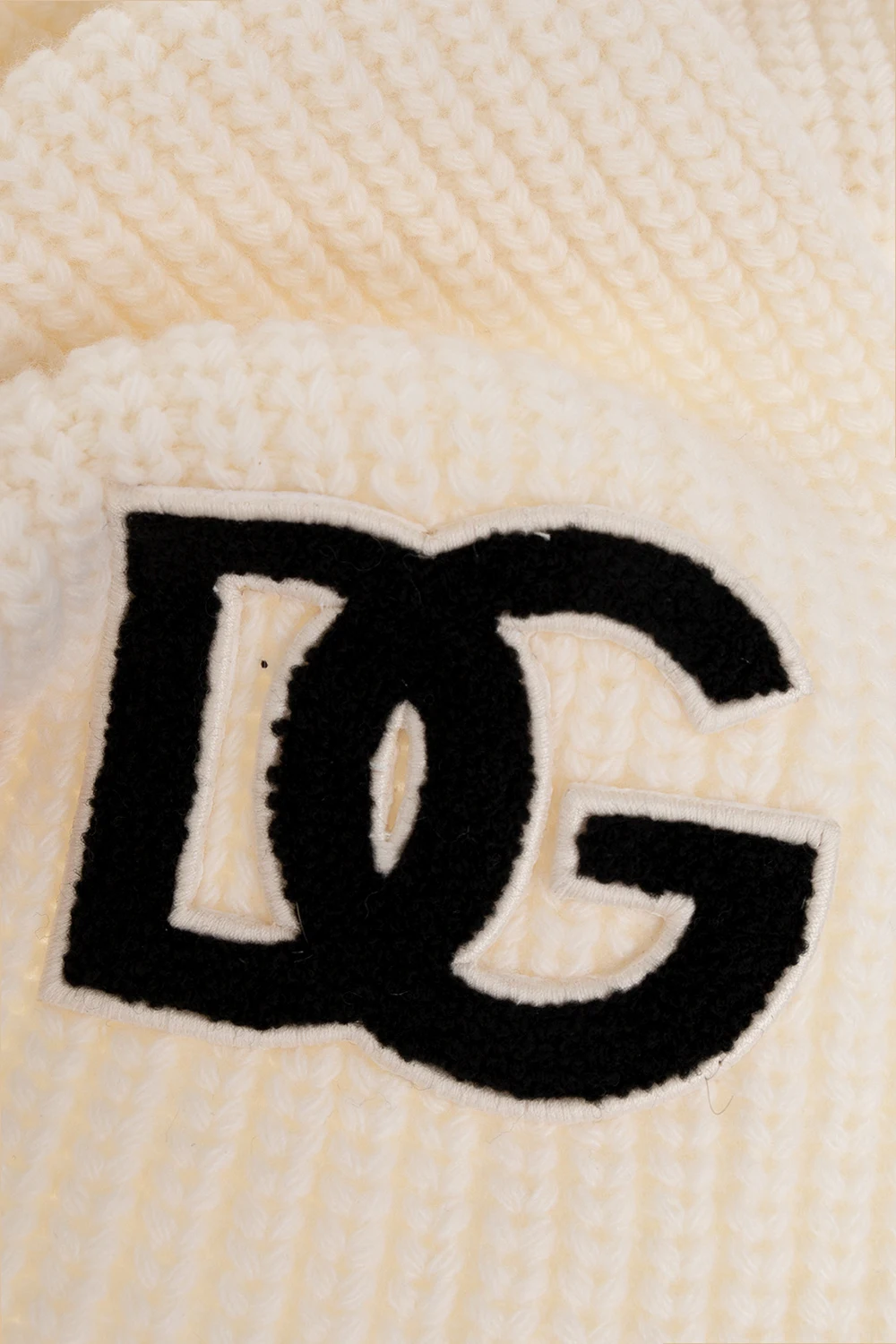 Creme scarf from Dolce & Gabbana Kids. Made of wool, this design is decorated with a black logo patch.