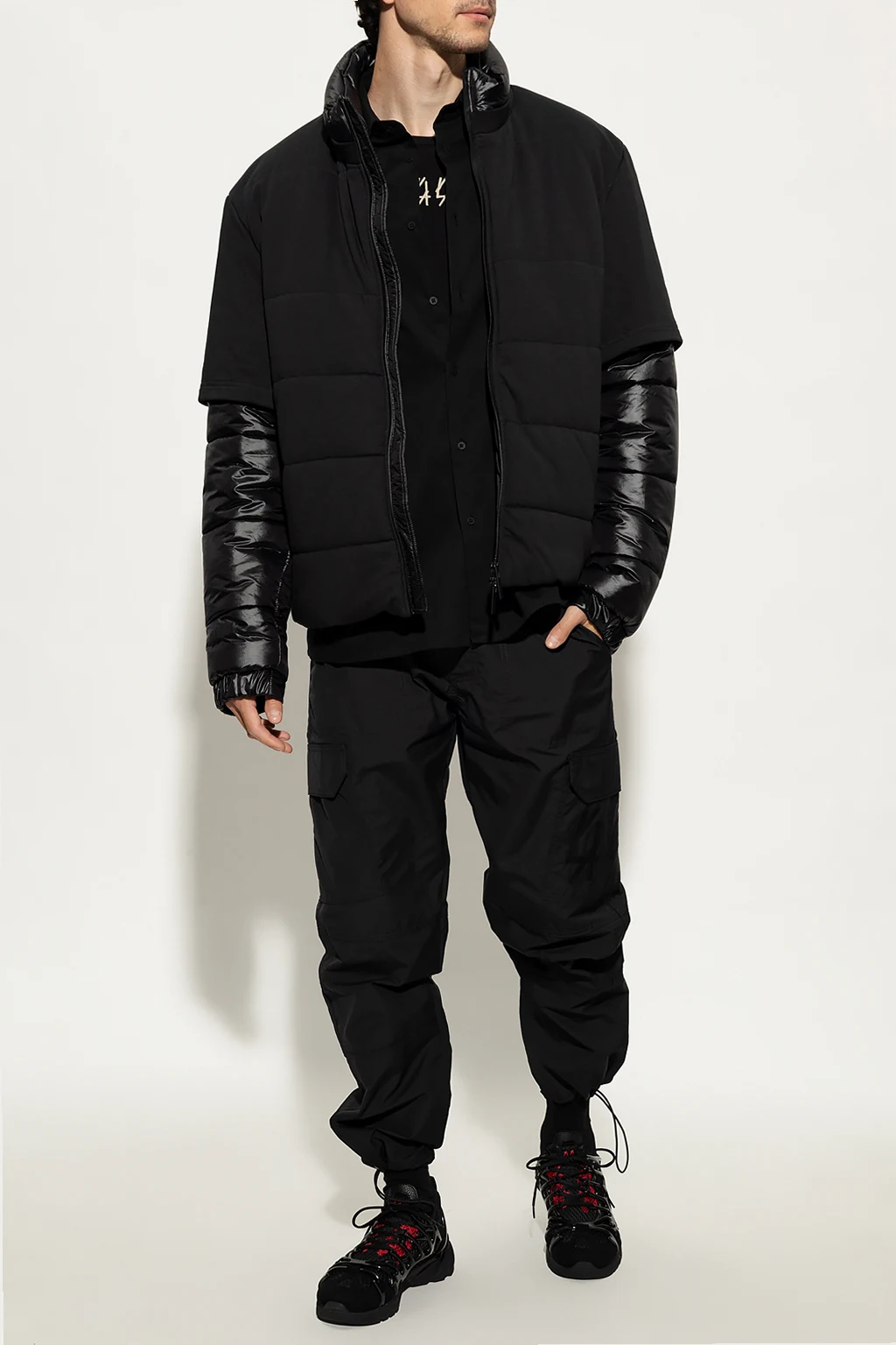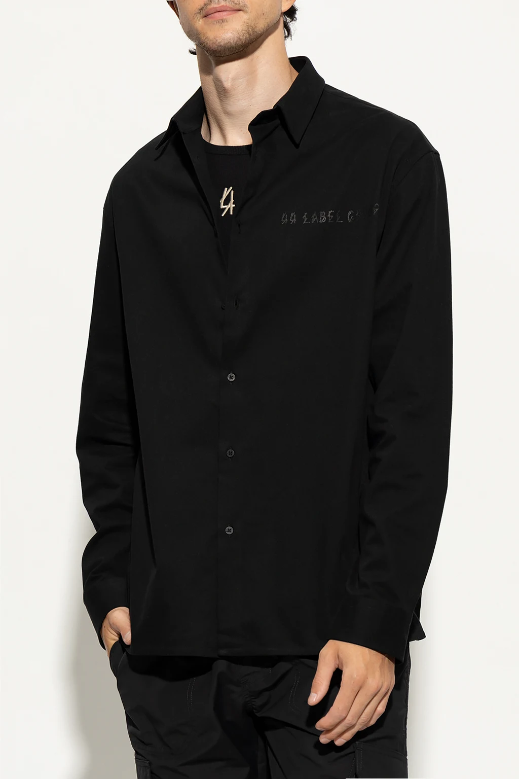 Black shirt from 44 Label Group. Made of cotton, this garment features button fastenings, logo print, white print at the back and long sleeves with buttoned cuffs.