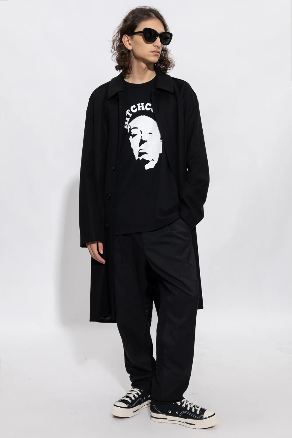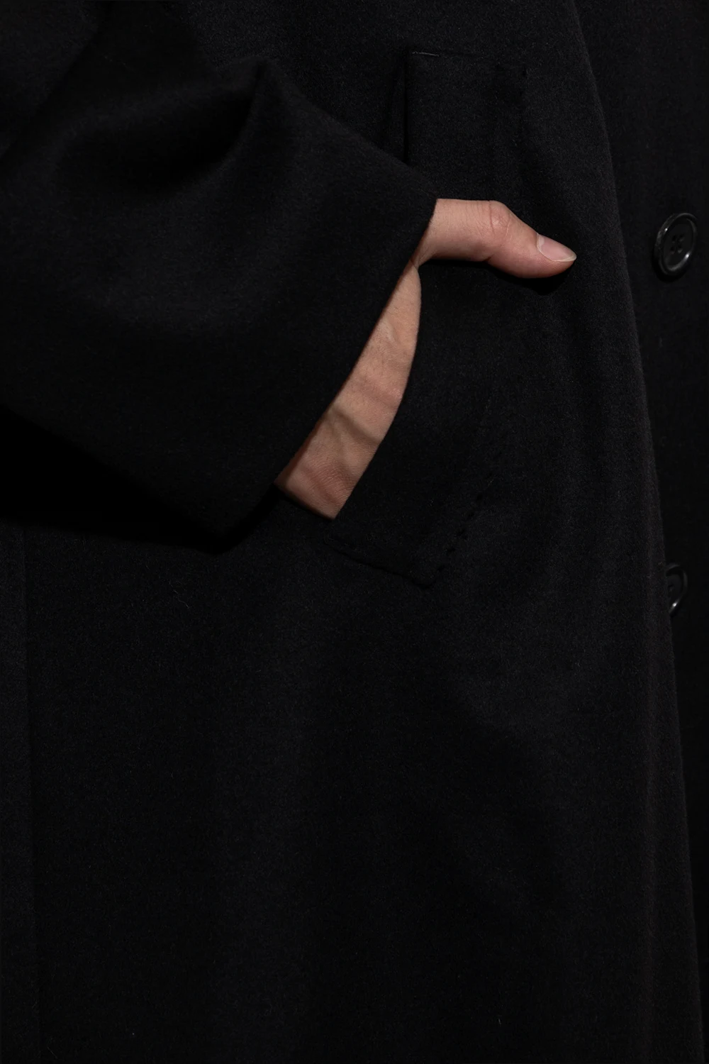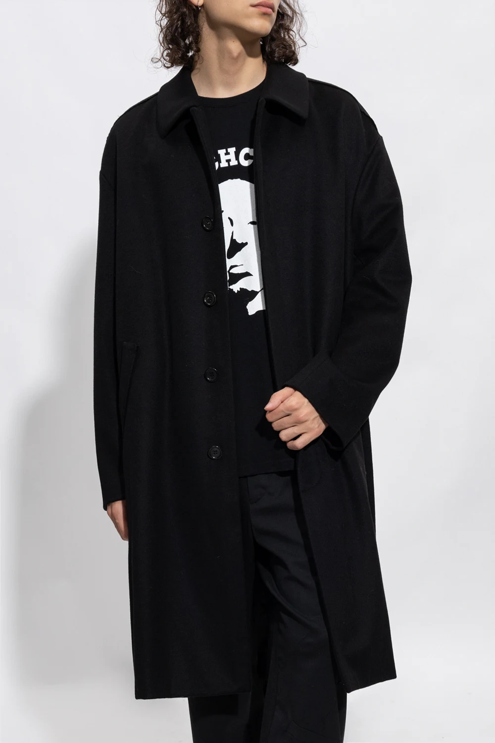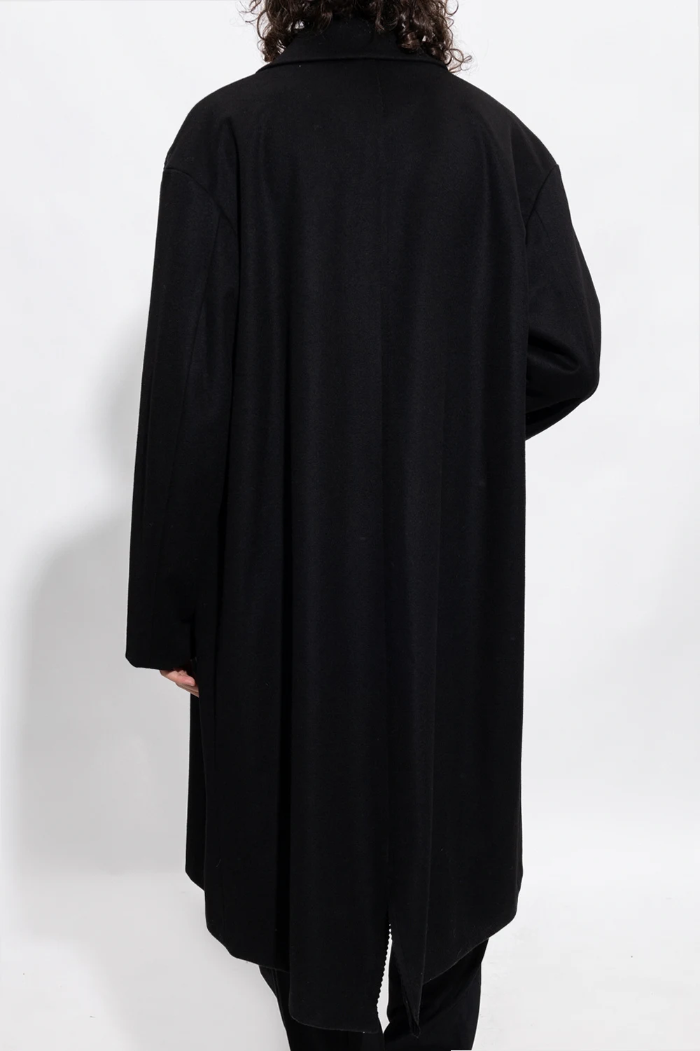 Black coat from Undercover. Crafted from a wool and cashmere blend, this design is complete with two slip pockets and single rear vent.