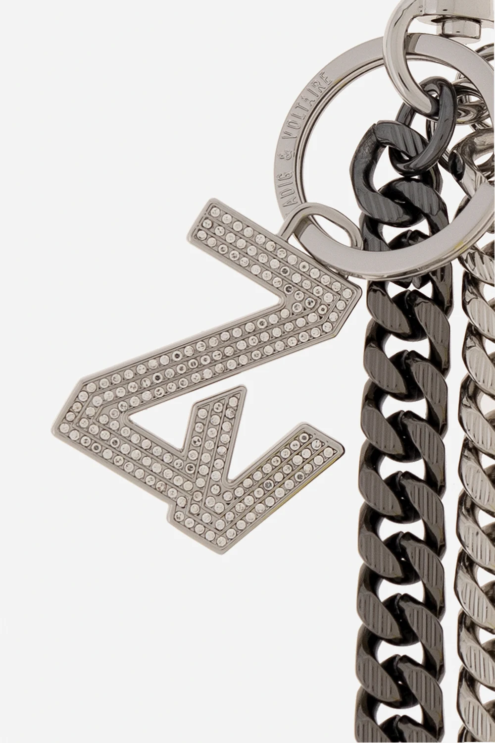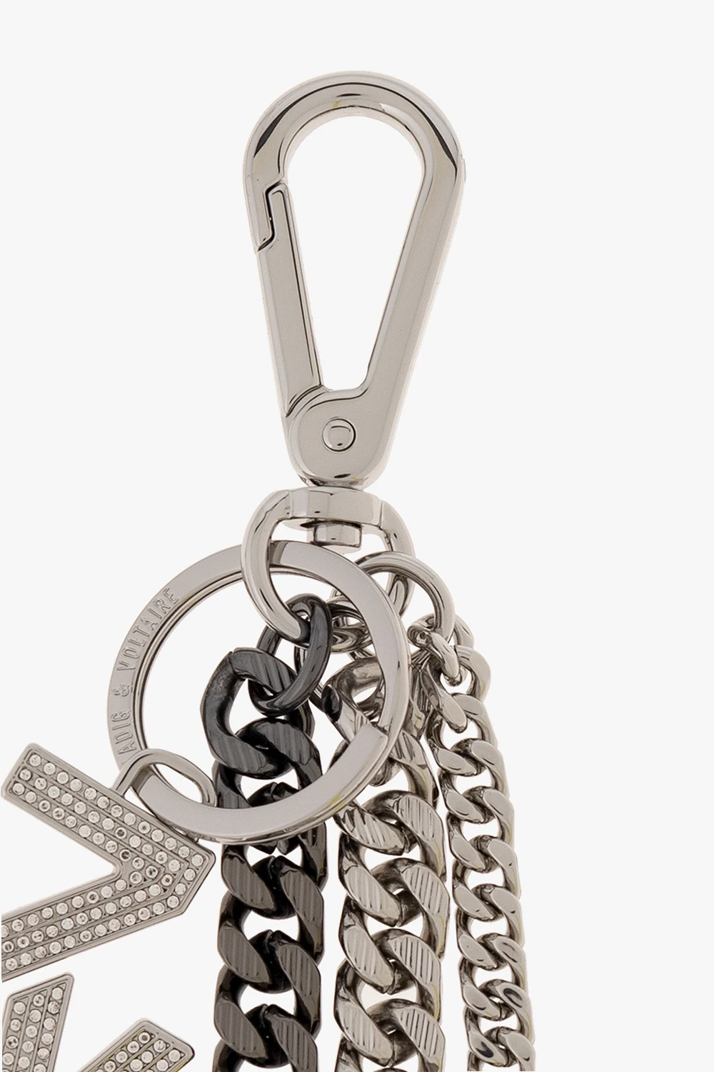 Silver-tone keyring from Zadig & Voltaire. Made in metal, this item features a lobster clasp fastening, a crystal-bejewelled logo charm and decorative chains in various sizes.