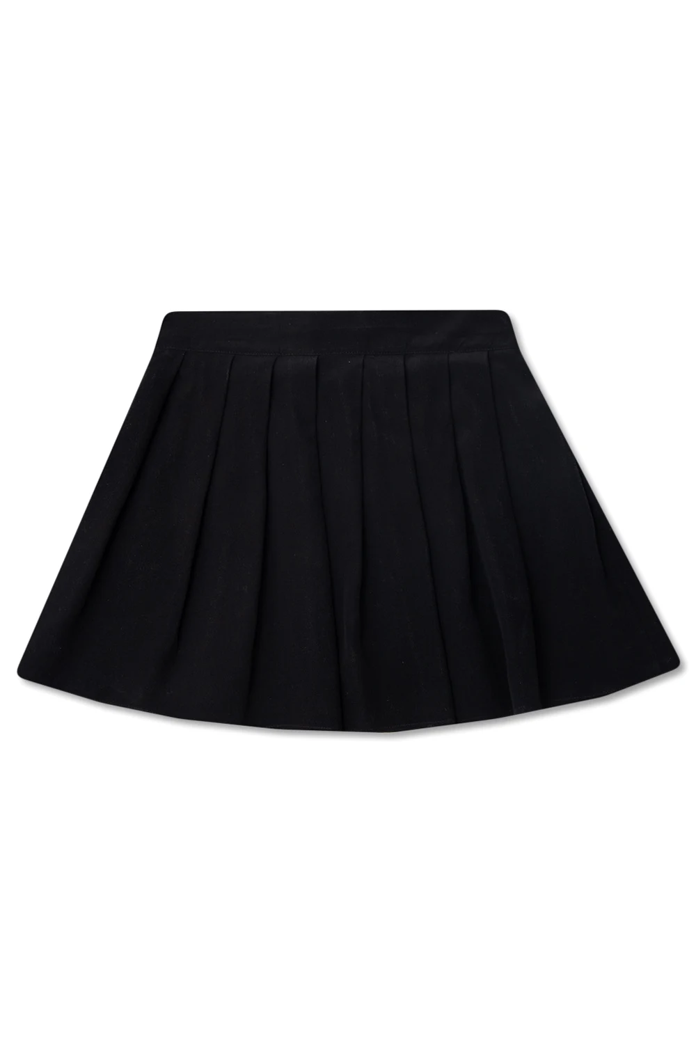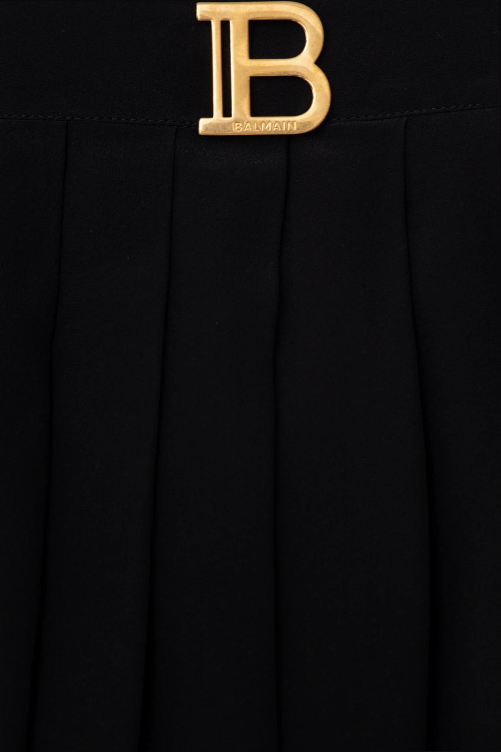 Black pleated mini skirt from Balmain Kids. Made of silk, this style features a hidden zip closure on the side and gold-tone logo hardware on the front.