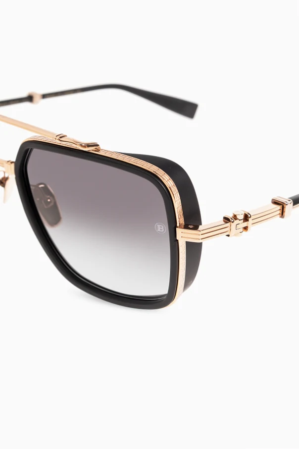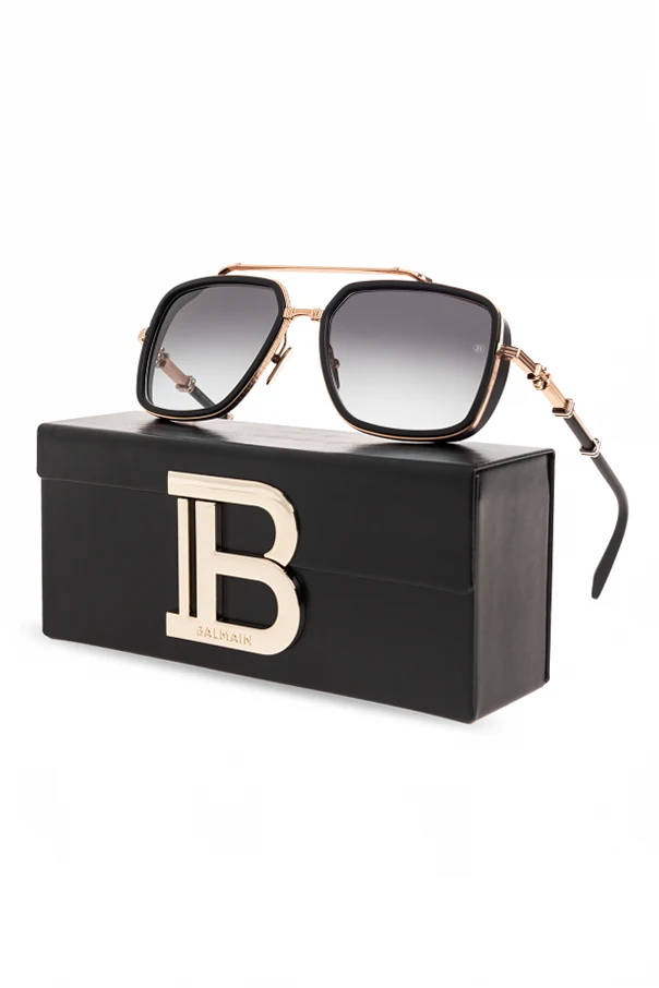 Dark brown sunglasses from Balmain. This square frame pair features side inserts with a logo and brown gradient lenses with 100% UV protection. Case included.