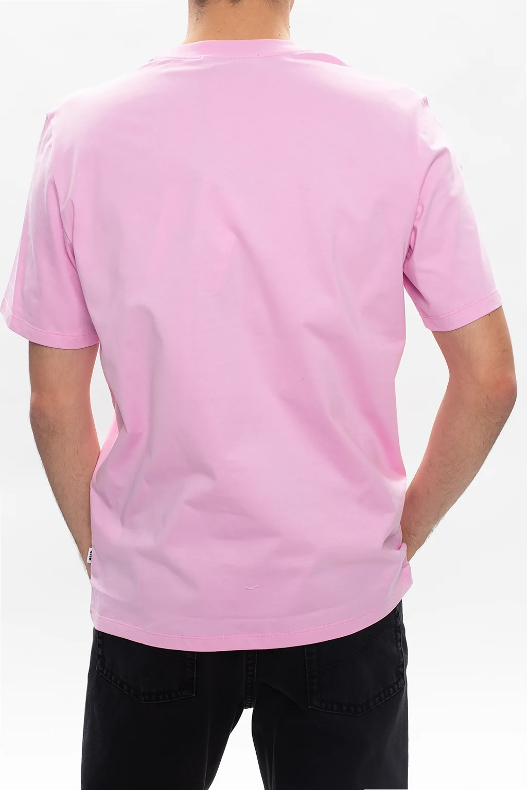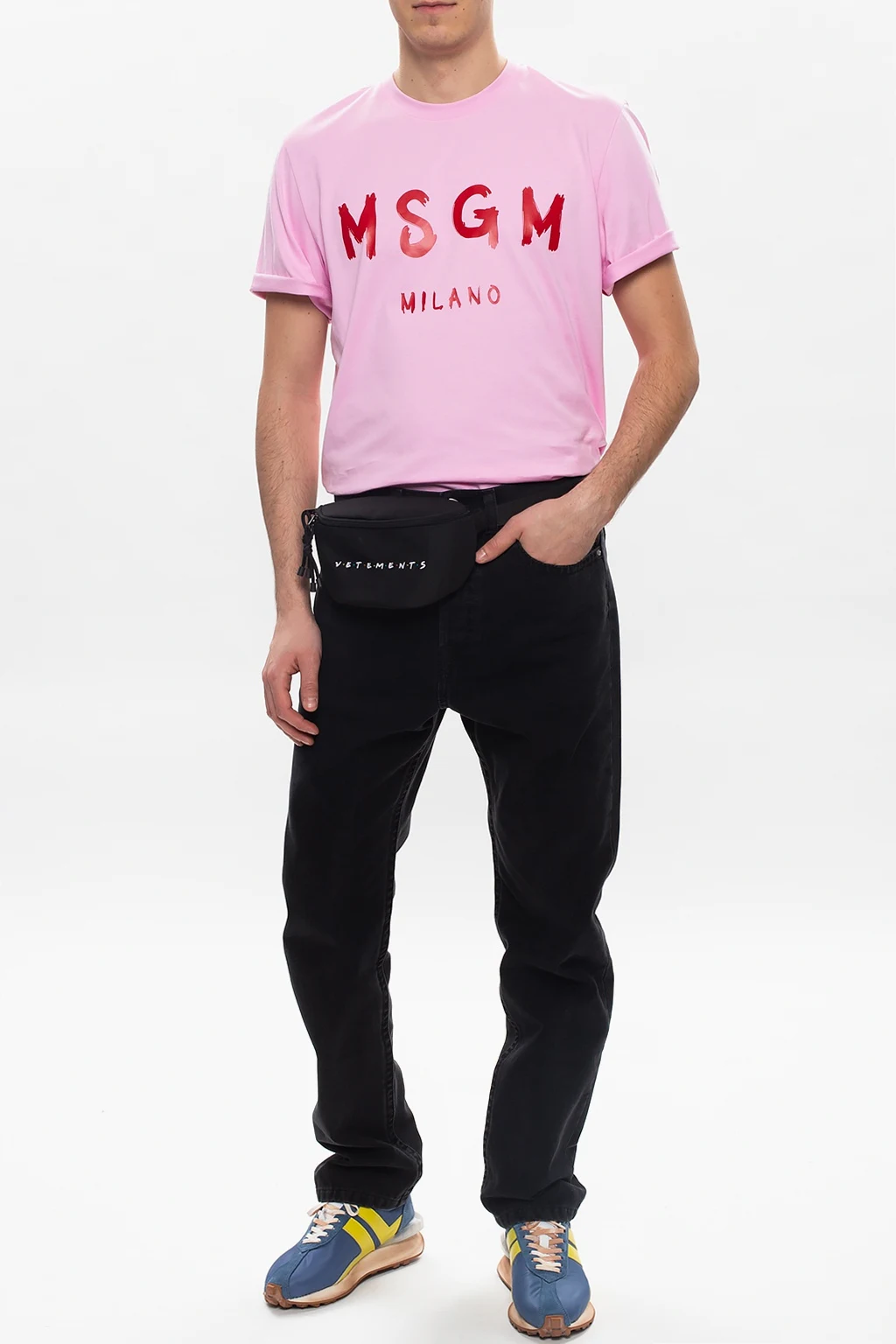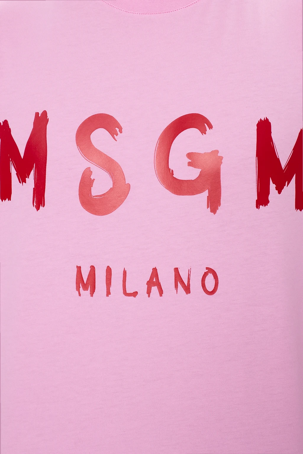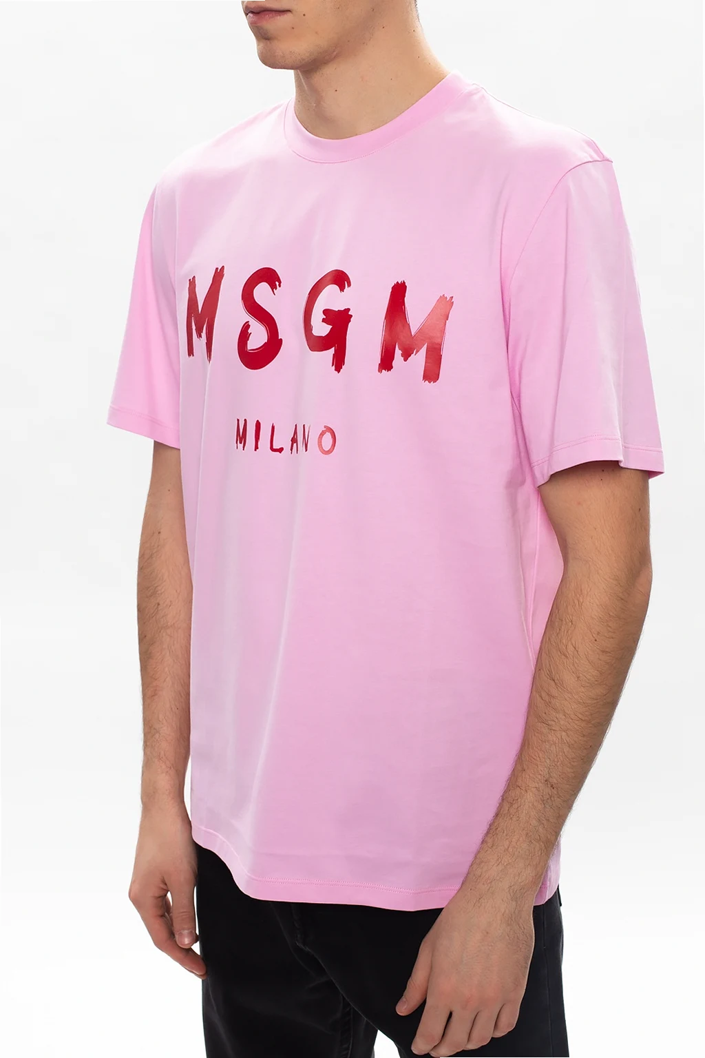 Pink crewneck T-shirt from MSGM. Printed with the brand\'s logo in red, this cotton-crafted style is complete with short sleeves and an elasticated collar.