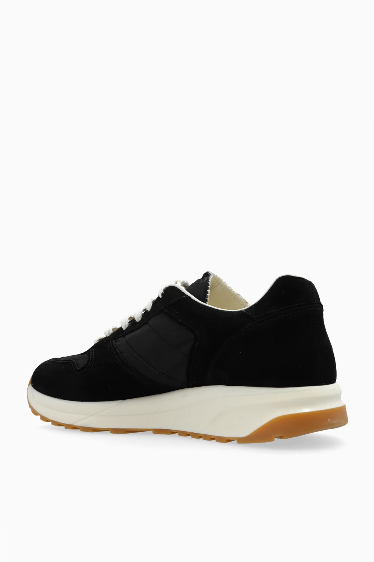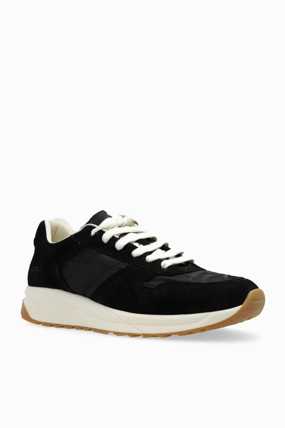 Introducing the Track sneakers from Common Projects, an epitome of elegance and sporty sophistication in the exclusive WOMEN, SHOES, SNEAKERS, LOW TOPS category. Designed by the illustrious duo Flavio Girolami and Prathan Poopat, these sneakers showcase the pinnacle of Italian craftsmanship and minimalist design. Crafted in a dominant black hue, the Track sneakers are an exquisite blend of textile and suede materials. The classic low-top silhouette is complemented by a white sole with a contrasting light brown bottom, exuding an air of elegance and style. The white laces not only enhance the sporty aesthetic but also provide a striking contrast to the black upper. Delicate stitching along the sides adds structure and a touch of intricate design, while a small, gold inscription on the outer heel subtly highlights the brand\'s distinctive mark. Inside, the sneakers are lined with a light material, ensuring unparalleled comfort. The insole bears the inscription \"WOMAN by COMMON PROJECTS\" along with a serial number, a hallmark of the brand\'s authenticity. The thick rubber sole offers excellent cushioning and comfort, making these sneakers a perfect fusion of style and functionality. Why Choose This Product? Exquisite Craftsmanship - Impeccable Italian design and construction. Premium Materials - High-quality textile, suede, and rubber components. Elegant Design - Classic low-top silhouette with sophisticated details. Comfort - Light inner lining and cushioned rubber sole for supreme comfort. Exclusive Branding - Unique gold inscription and brand markings.