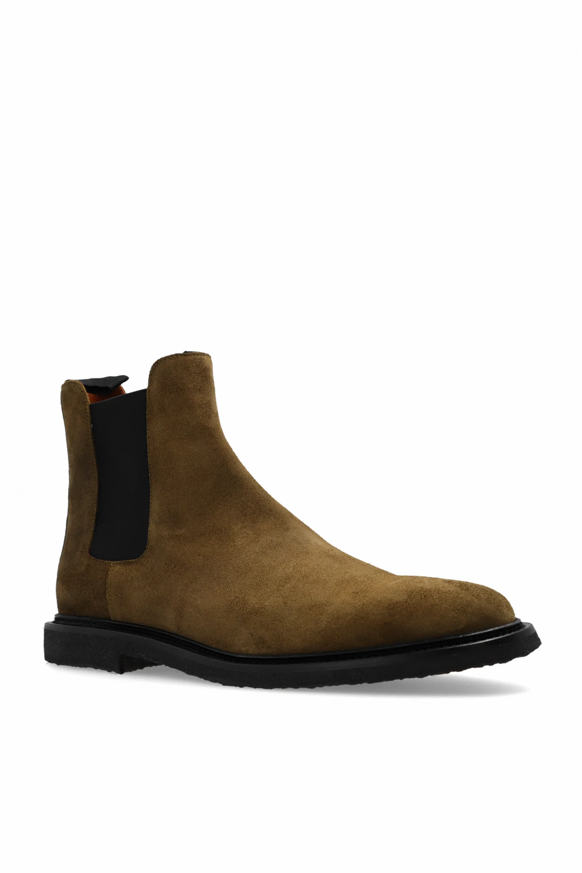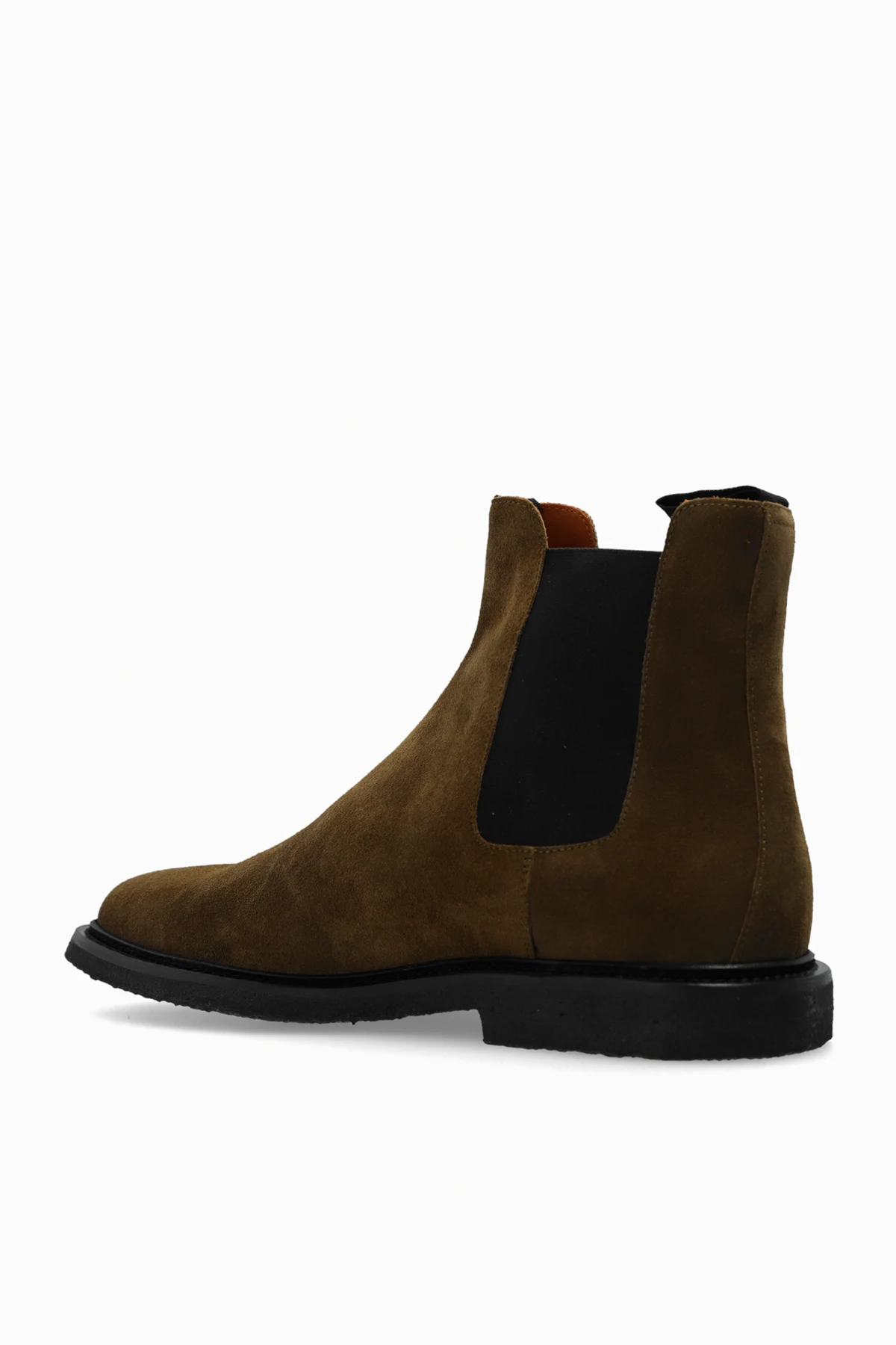 Introducing the exquisite Brown Chelsea Ankle Boots from the renowned designers Flavio Girolami and Prathan Poopat, the masterminds behind Common Projects. These boots epitomize elegant sophistication, seamlessly blending timeless design with contemporary flair. Crafted from luxurious brown suede, these Chelsea boots feature the iconic rounded toe and snug ankle-high fit. The elastic side panels in contrasting black ensure ease of wear, while the pull tab at the heel adds a practical touch. The gum rubber sole provides superior grip and comfort, making these boots as functional as they are stylish. With their minimalist design, devoid of visible logos or inscriptions, these boots offer a sleek, understated elegance. The rich brown hue makes them a versatile addition to any wardrobe, suitable for both formal occasions and casual outings. Why You Should Buy This Product Superior Craftsmanship from Common Projects, a hallmark of quality and style. Luxurious Materials including premium suede and durable rubber. Timeless Design that pairs effortlessly with a range of outfits. Comfort and Ease with elastic side panels and a pull tab for easy wear. Minimalist Elegance with no visible logos, perfect for a refined look.