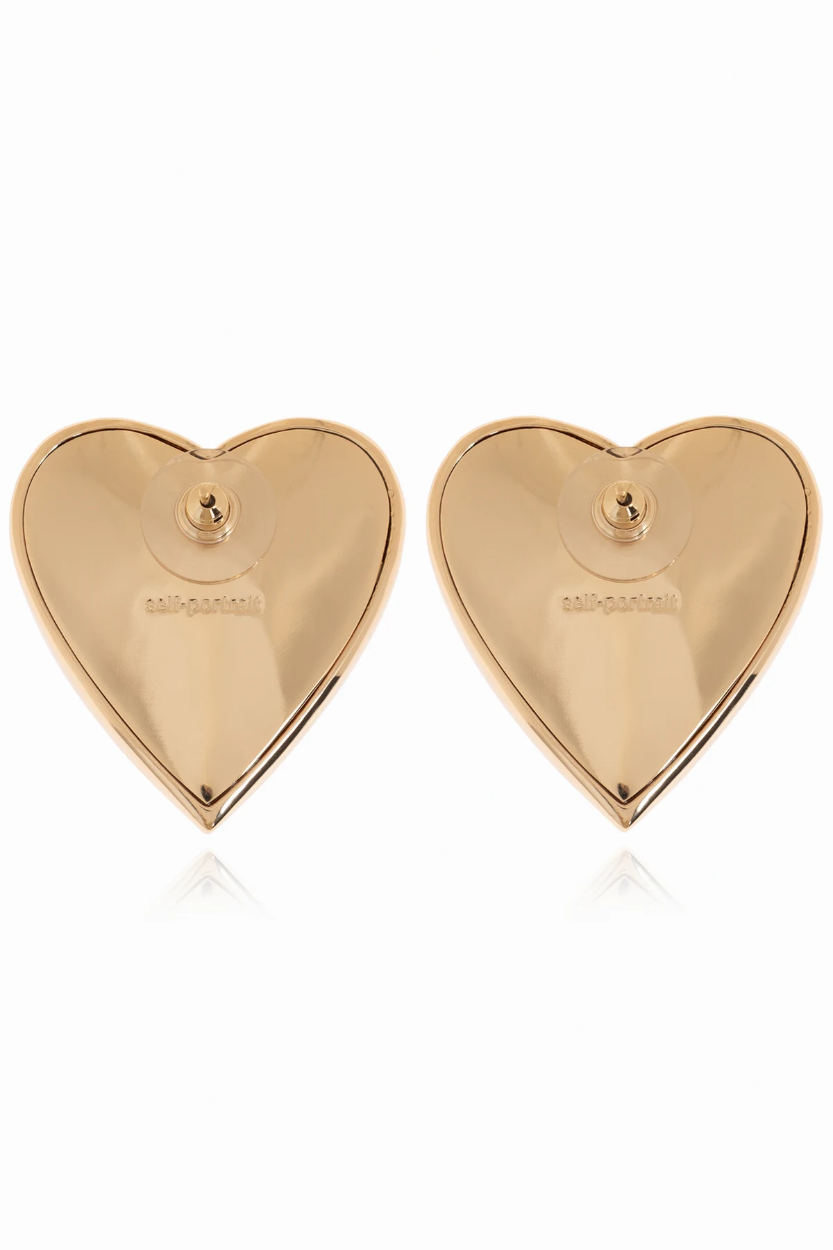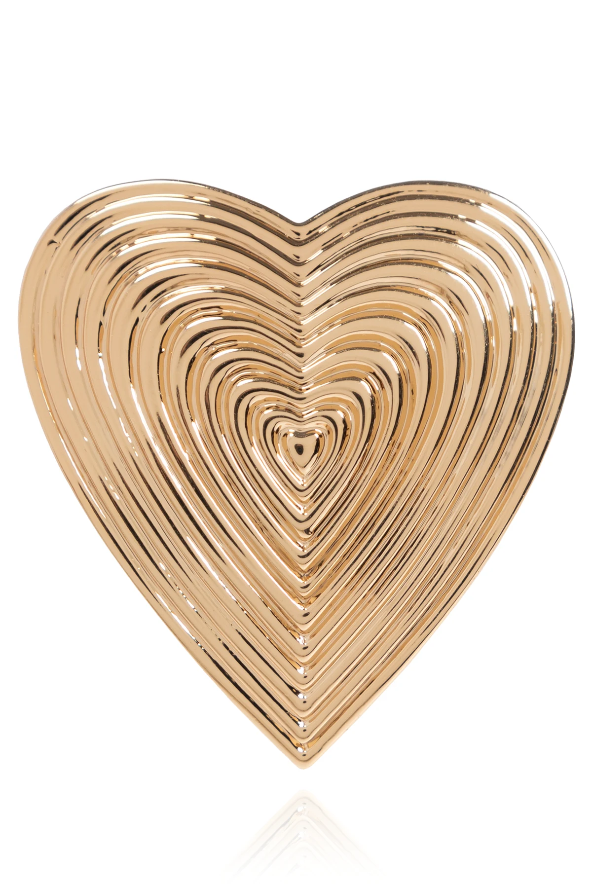 Introducing the Heart-Shaped Earrings by Self-Portrait, where romantic aesthetics meet modern elegance. Crafted from premium brass, these earrings exhibit a layered, three-dimensional design, creating a mesmerizing effect of undulating lines flowing from the edges to the heart\'s center. The surface is impeccably smooth and lustrous, adding an air of sophistication. Adorning the back is a stud closure and a subtly engraved designer logo. These earrings are substantial in size, commanding attention as they gracefully occupy the earlobe, making them a striking accessory. The dominant golden hue enhances their opulent appeal, perfectly aligning with Self-Portrait\'s vision of luxurious yet accessible fashion. Why Choose This Product? Exclusive design with a unique three-dimensional pattern. Premium brass construction ensures durability and elegance. Large size for a bold, fashionable statement. Delicately engraved designer logo for authenticity. Golden color for a touch of luxury.