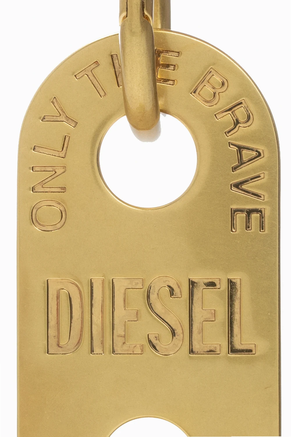 Gold-tone keyring from Diesel. Embossed with the brand\'s logo, this item features multiple detachable charms.