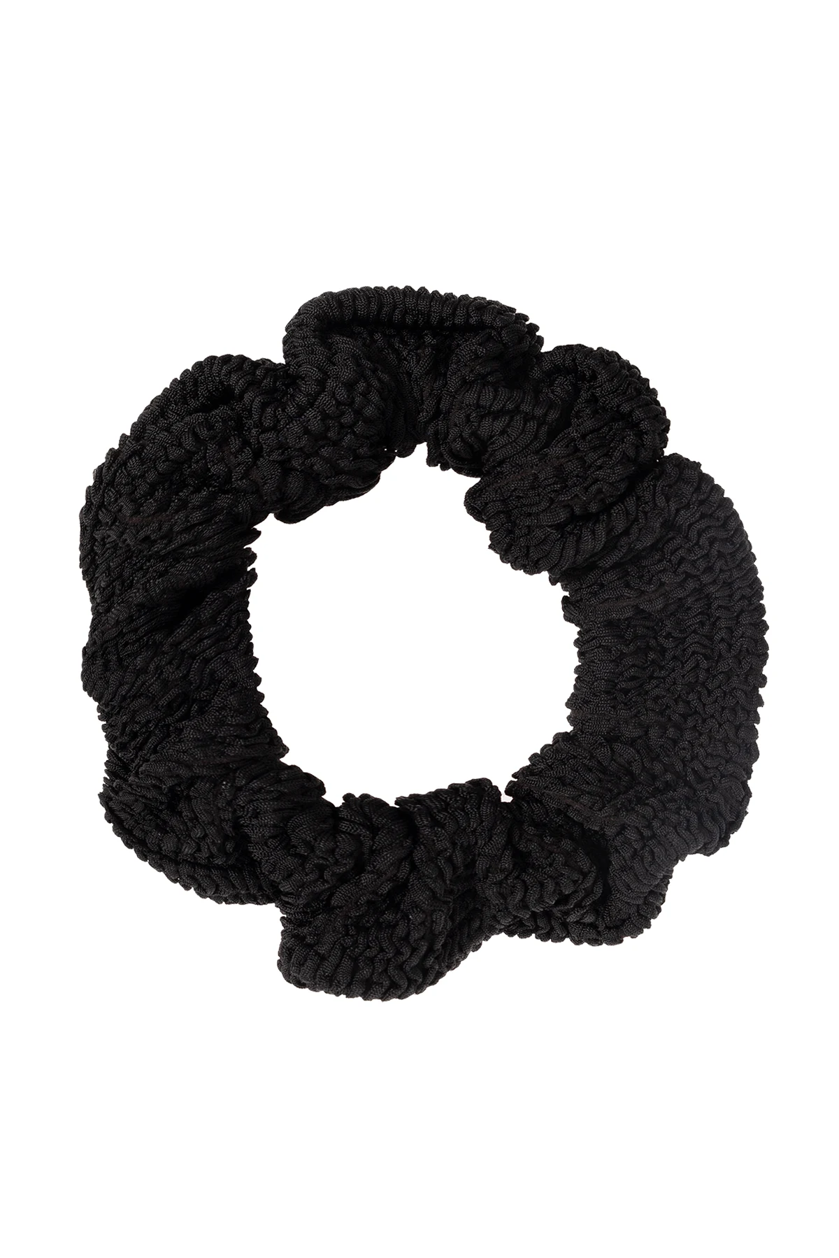 Black scrunchie from Bond-Eye. This item was made partially from a blend of recycled materials with a texture.