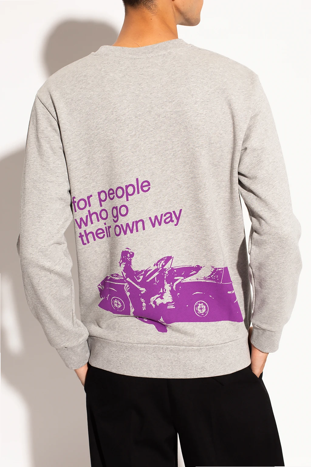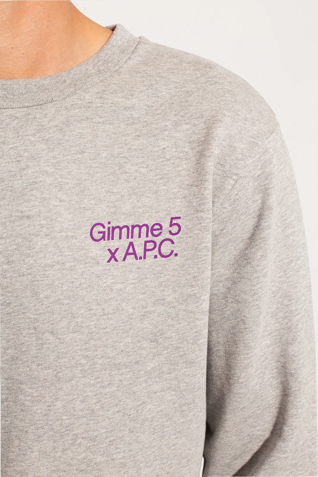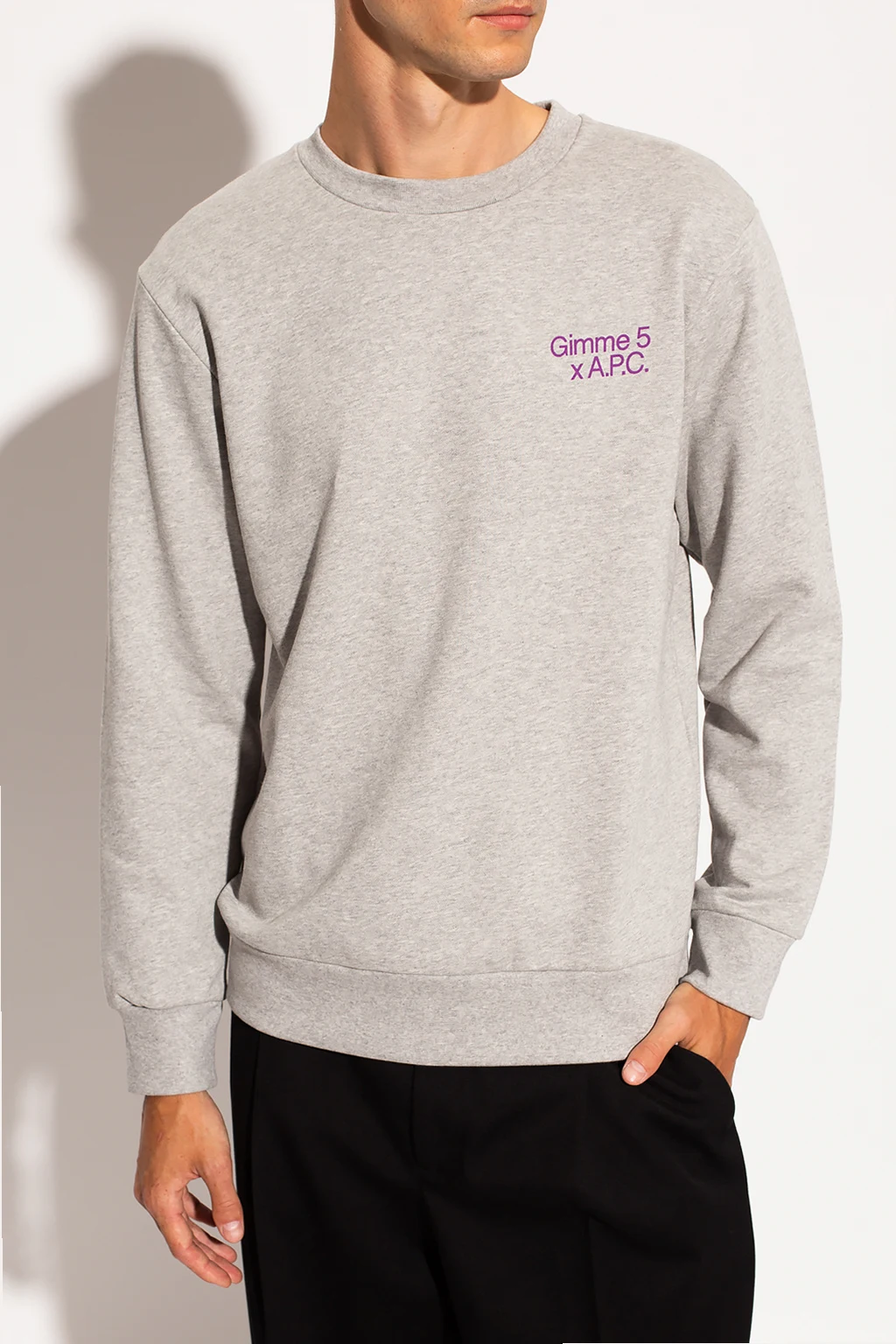 Grey crewneck sweatshirt from A.P.C. Crafted from cotton jersey, this style showcases a purple graphic print with the brand\'s logo on the front and back and rib detailing on the bottom hem and cuffs.