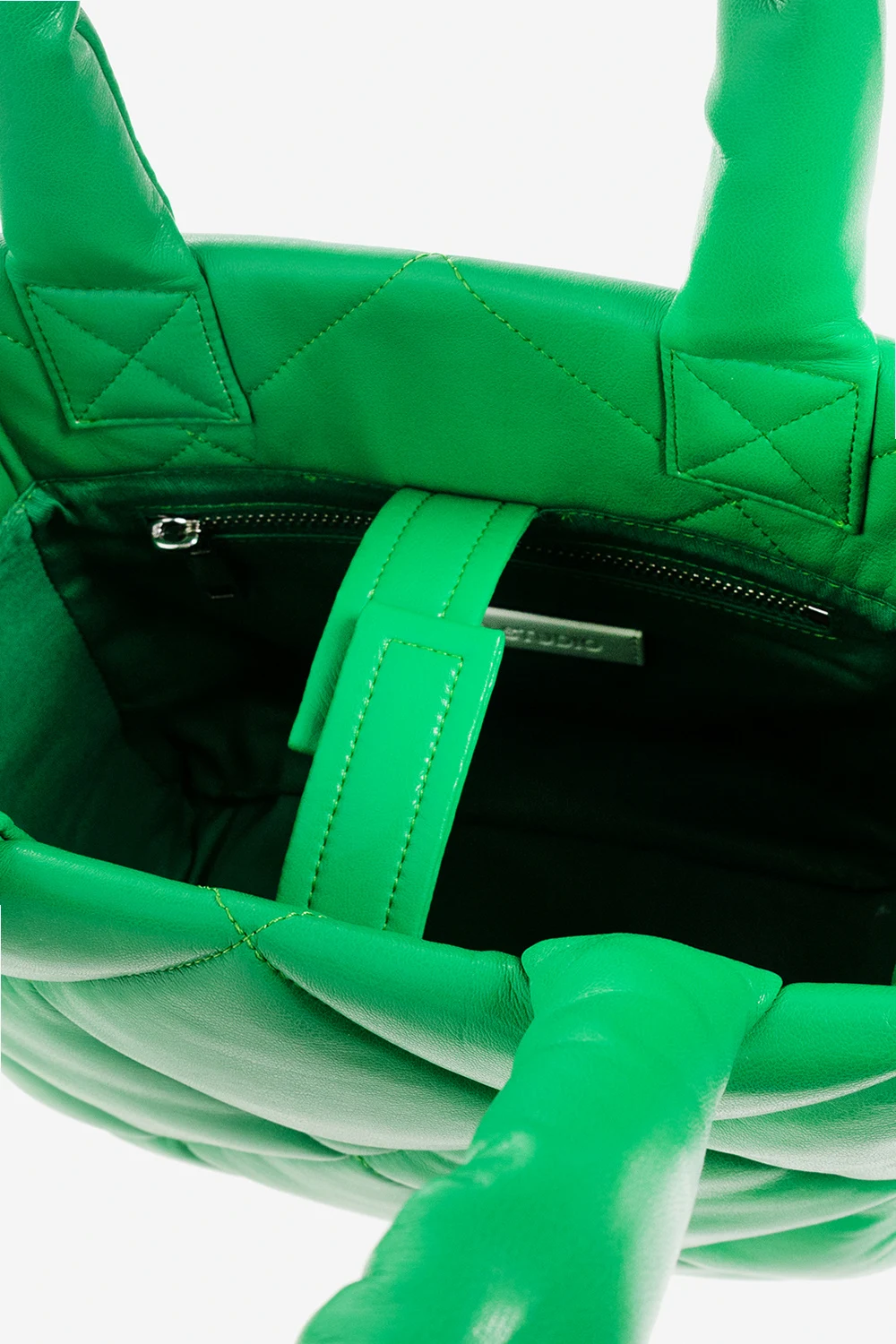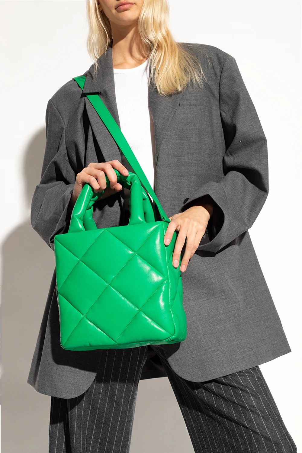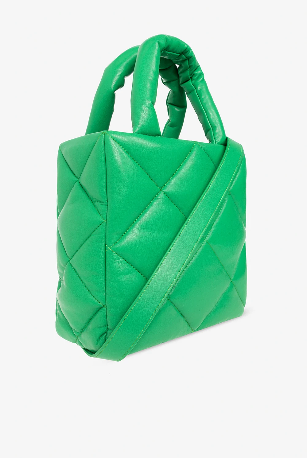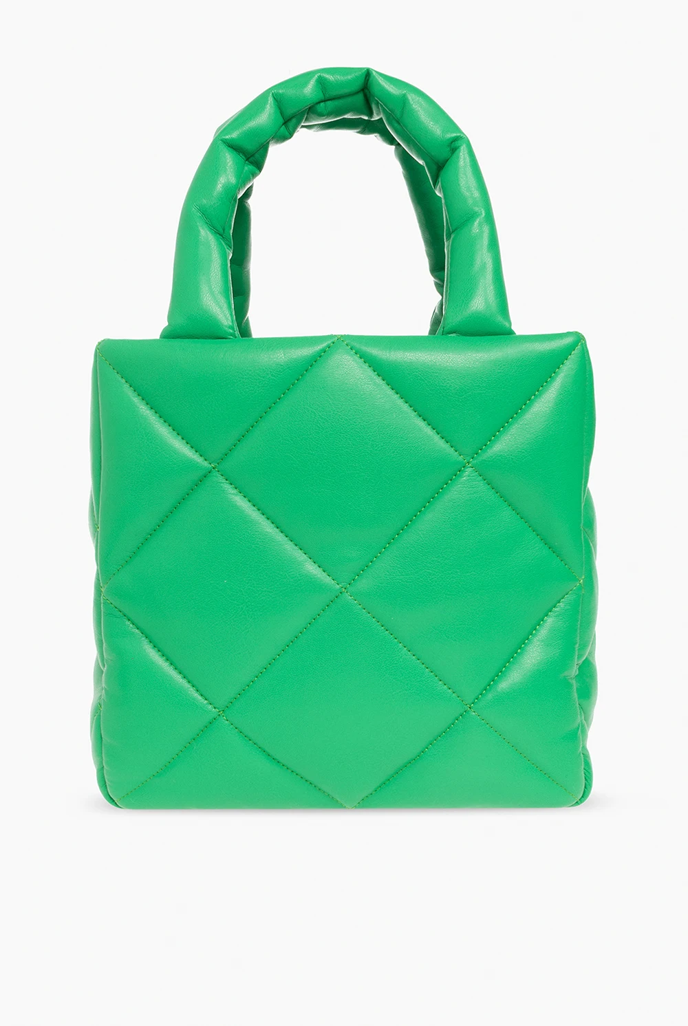 Green ‘Rosanne Diamond II’ quilted shopper bag from STAND STUDIO. Made of faux leather, this model features a snap closure, two half-rounds handles, detachable and adjustable shoulder strap, silver-tone metal hardware and one internal compartment with one zip pocket.