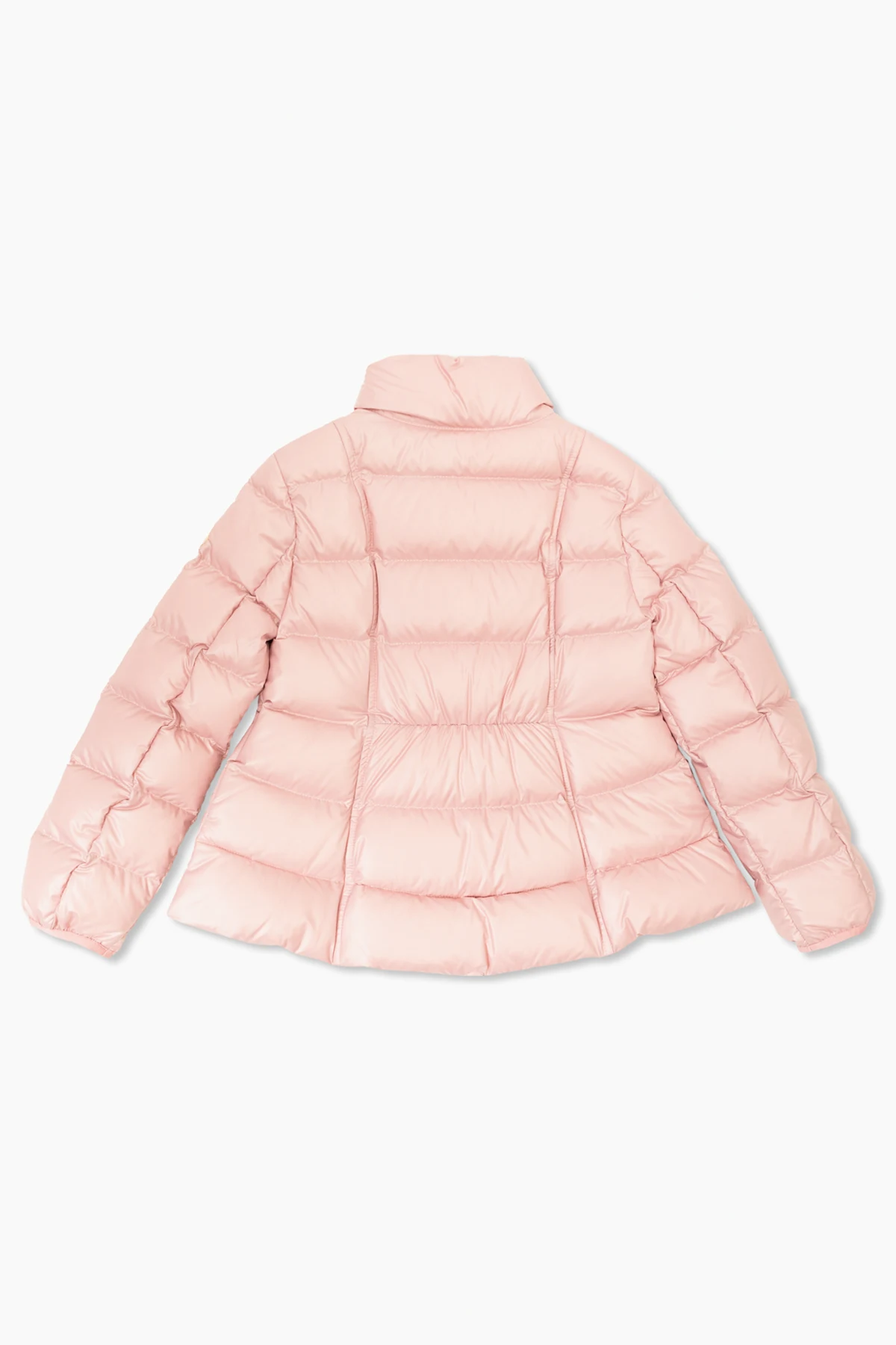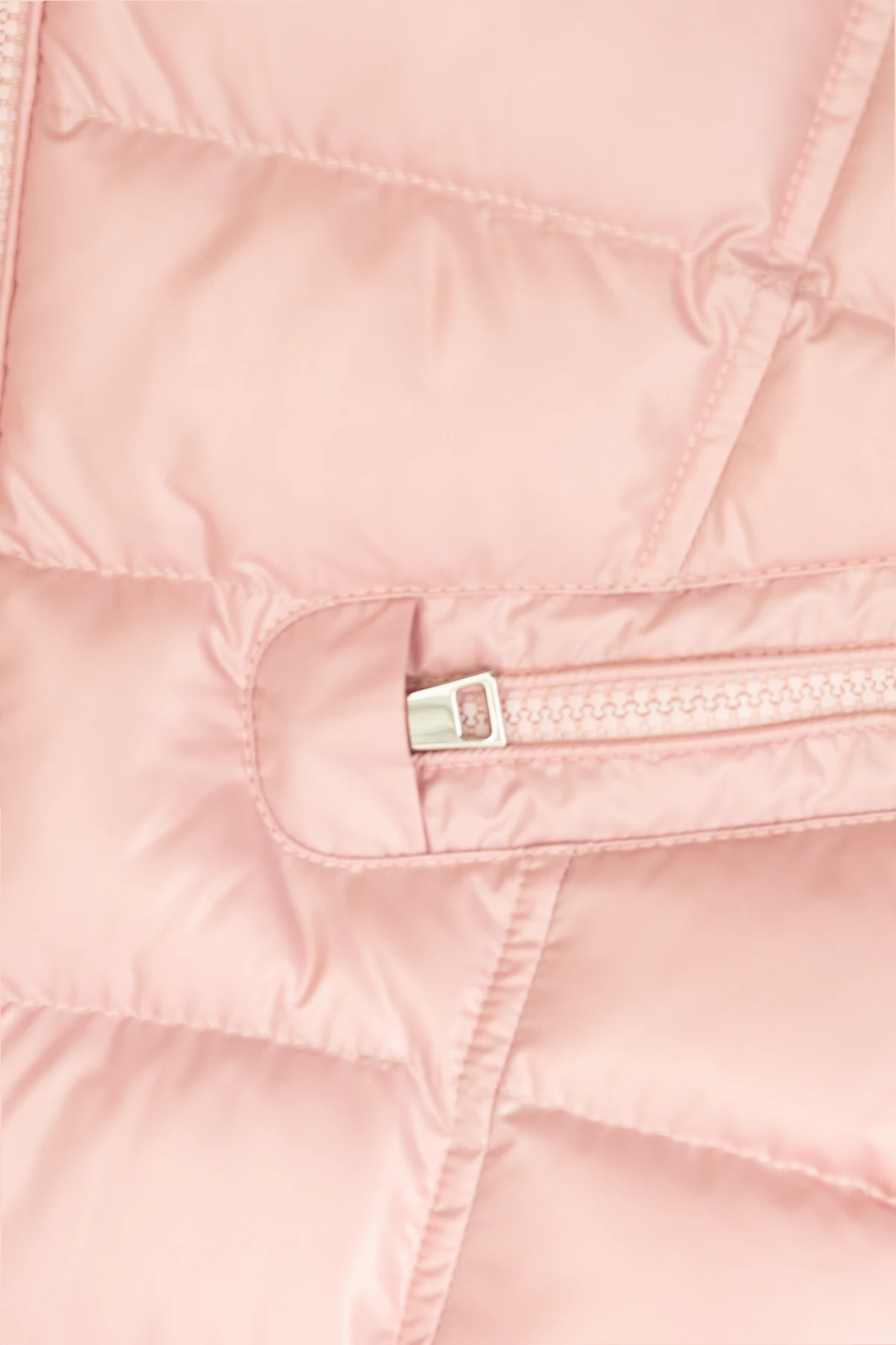 Introducing the epitome of winter elegance, the \'Ainay\' down jacket by Moncler Enfant. Crafted with unparalleled attention to detail, this piece is a testament to luxurious warmth and sophisticated style. The jacket features a classic, straight cut with horizontal quilting that creates a chic pattern, enhancing its slender silhouette. The pastel pink hue lends a touch of subtle delicacy, making it a versatile addition to any refined wardrobe. The \'Ainay\' is meticulously designed with a round neckline and secured with a zipper closure, elegantly accentuated by a decorative tape along the zip line for a hint of exclusivity. It boasts two side pockets with zip closures, subtly highlighted by the same tape, blending functionality with style. The exterior and interior layers are fashioned from premium polyester, while the filling combines 90% down and 10% feather, ensuring supreme comfort and warmth. Distinguished details include a metal plaque with the logo at the zipper and a shoulder patch made from wool-like material, showcasing the brand\'s emblem in contrasting colors. These elements not only signify the jacket\'s authenticity but also its lineage to the prestigious Moncler Enfant brand. Why Purchase This Product? Elegant design with a subtle pastel palette, perfect for a sophisticated look. High-quality materials ensure durability and coziness. Functional features, such as zippered pockets, meld style with practicality. Signature brand details affirm the exclusivity and authenticity of the jacket.