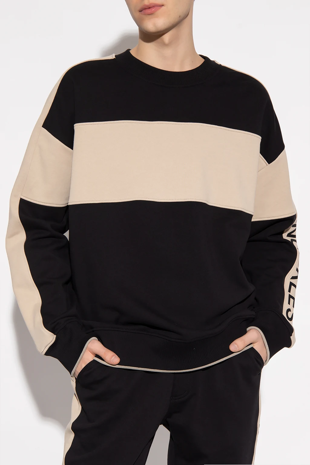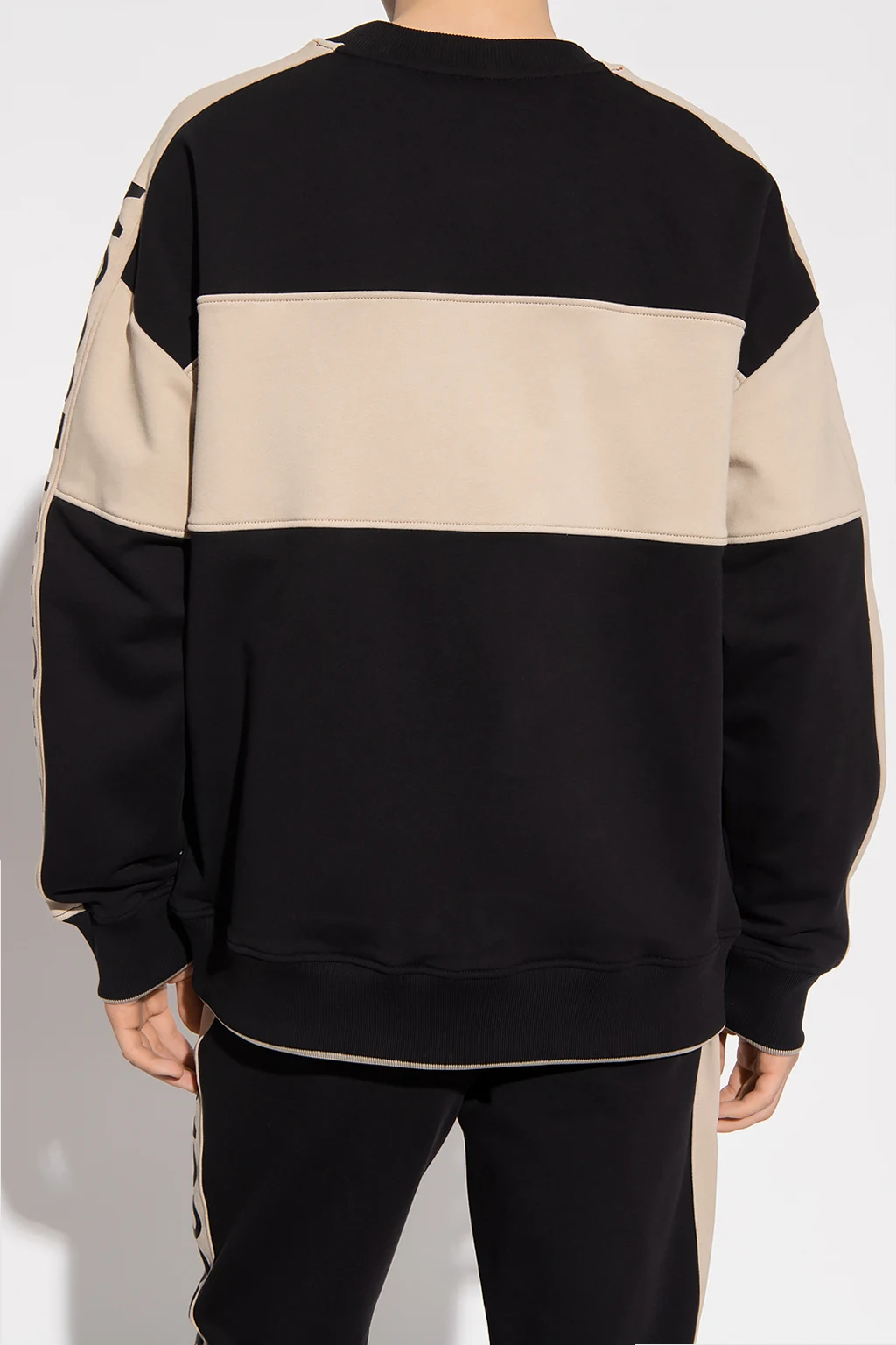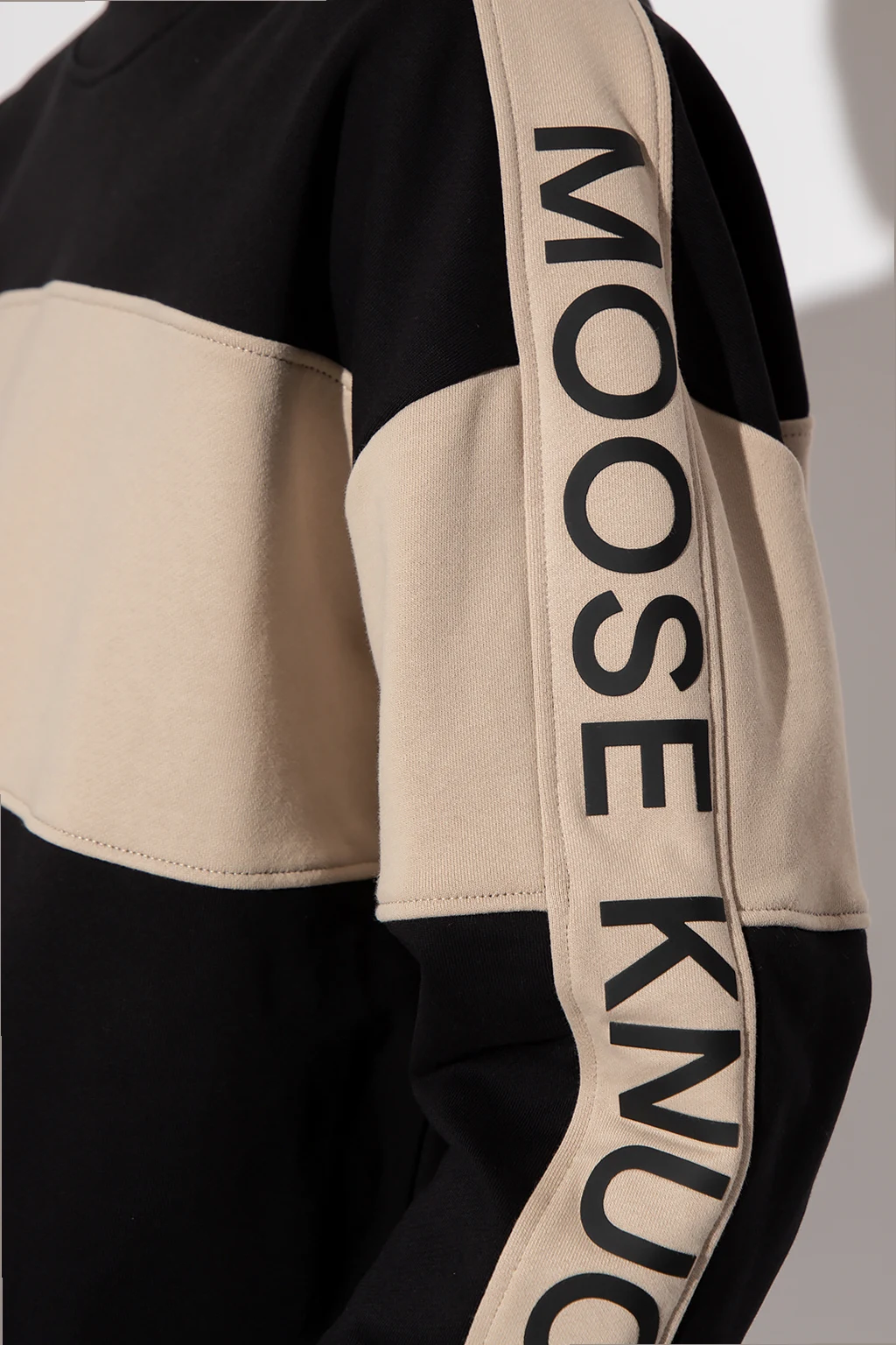 Black and beige ‘Wabasso’ crewneck sweatshirt from Moose Knuckles. Crafted from cotton jersey, this style showcases a black logo appliqué on the sleeve and ribbed trims on the collar, bottom hem and cuffs.