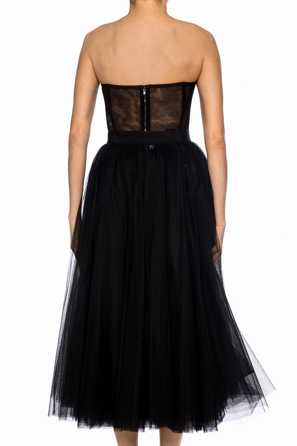 Black sheer corset with open shoulder straps from Dolce&Gabbana. Zip pocket at the back.