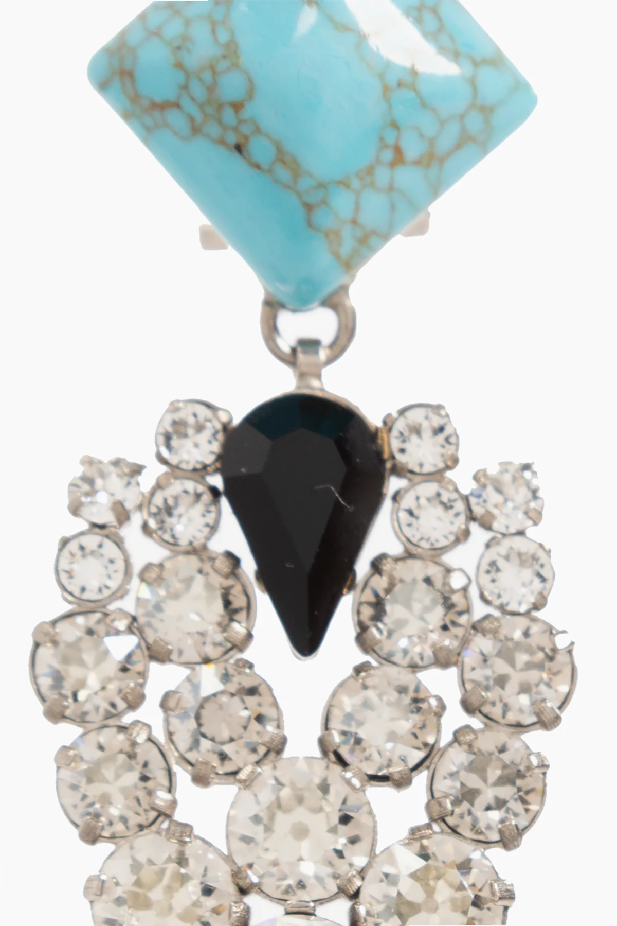 Silver-tone earring from Maison Margiela. Made of brass, this item features a blue stone and crystals in white and black.