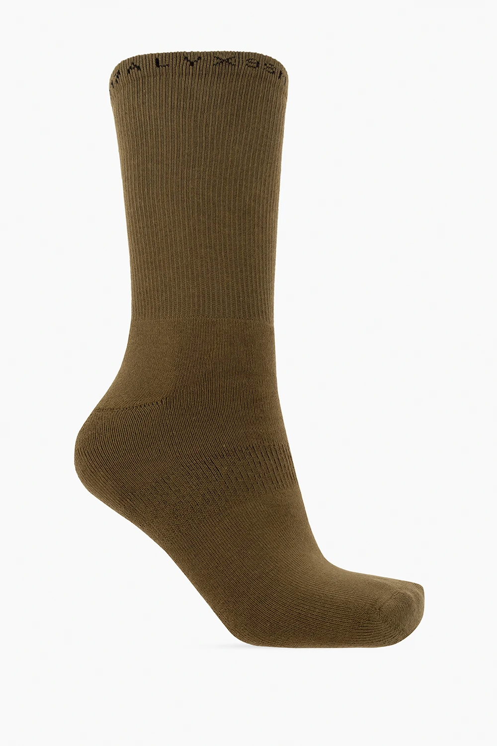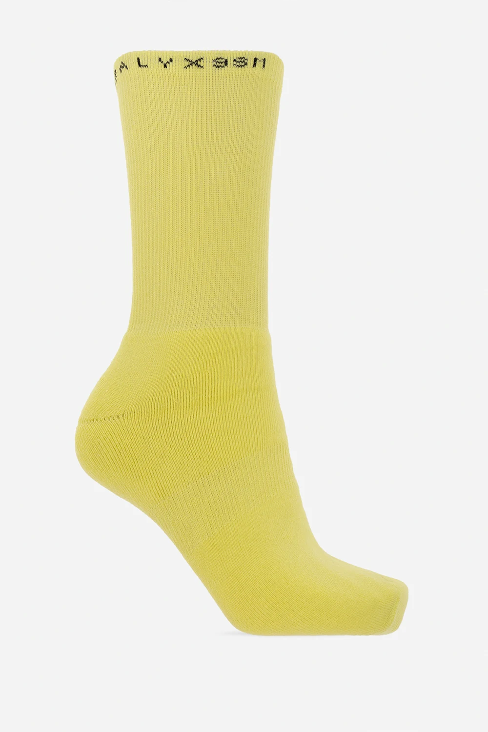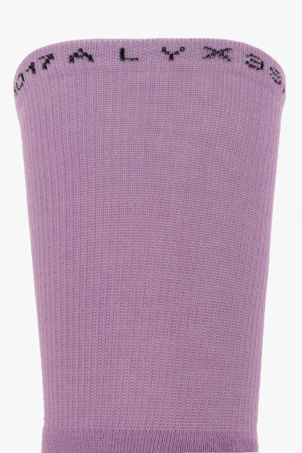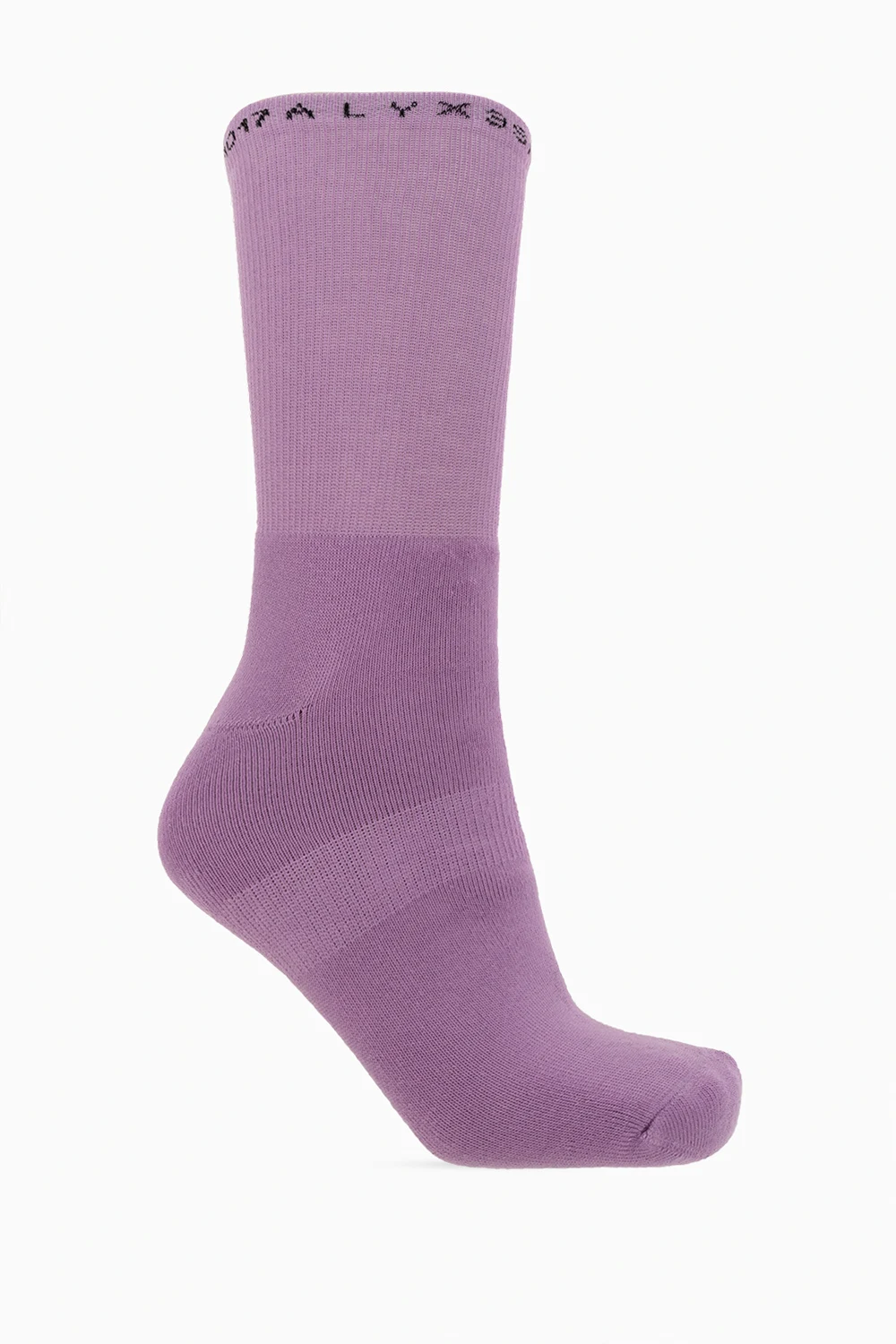3-pack of socks in khaki, purple and yellow from 1017 ALYX 9SM. Made of cotton, each pair features a black logo and ribbed cuffs.