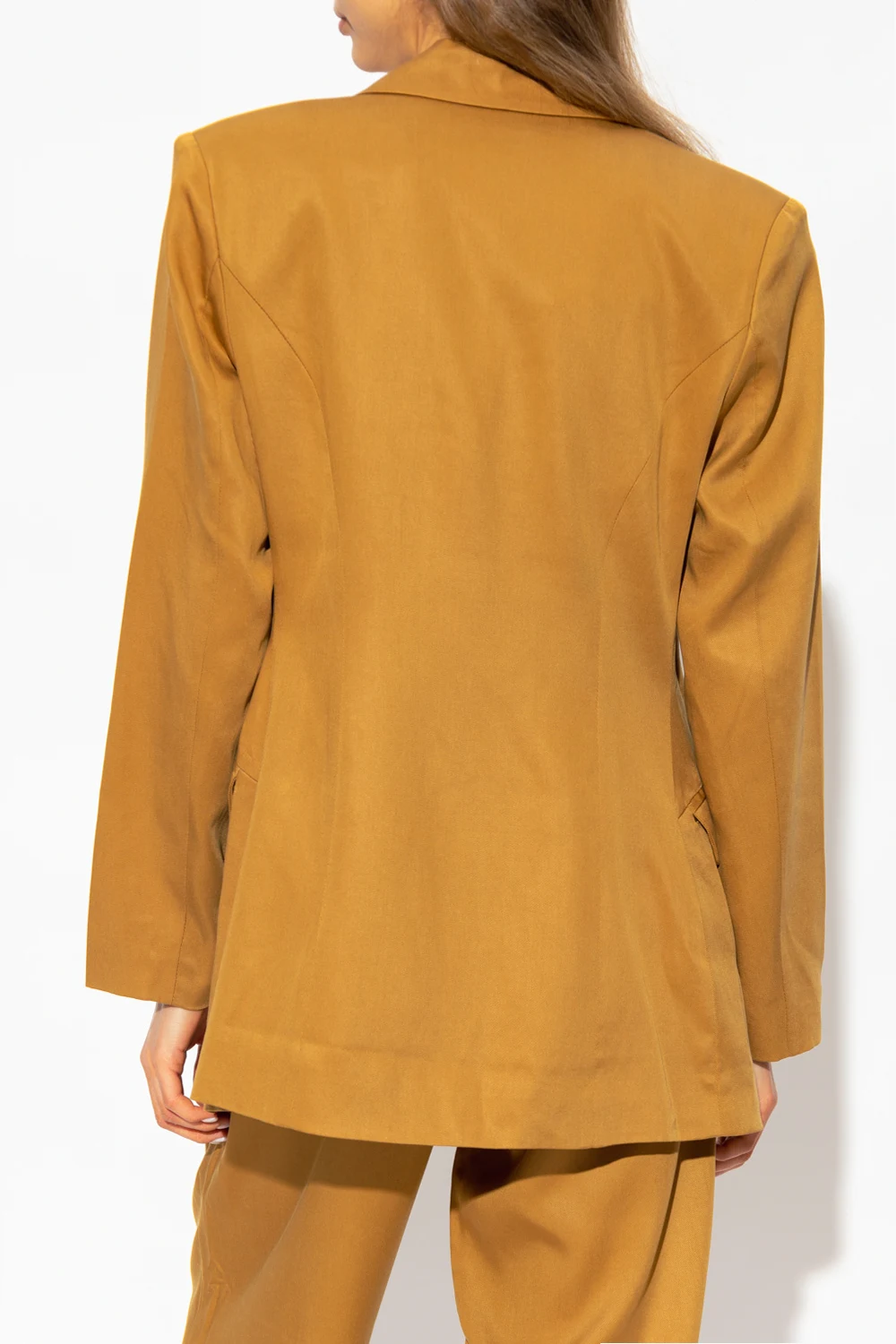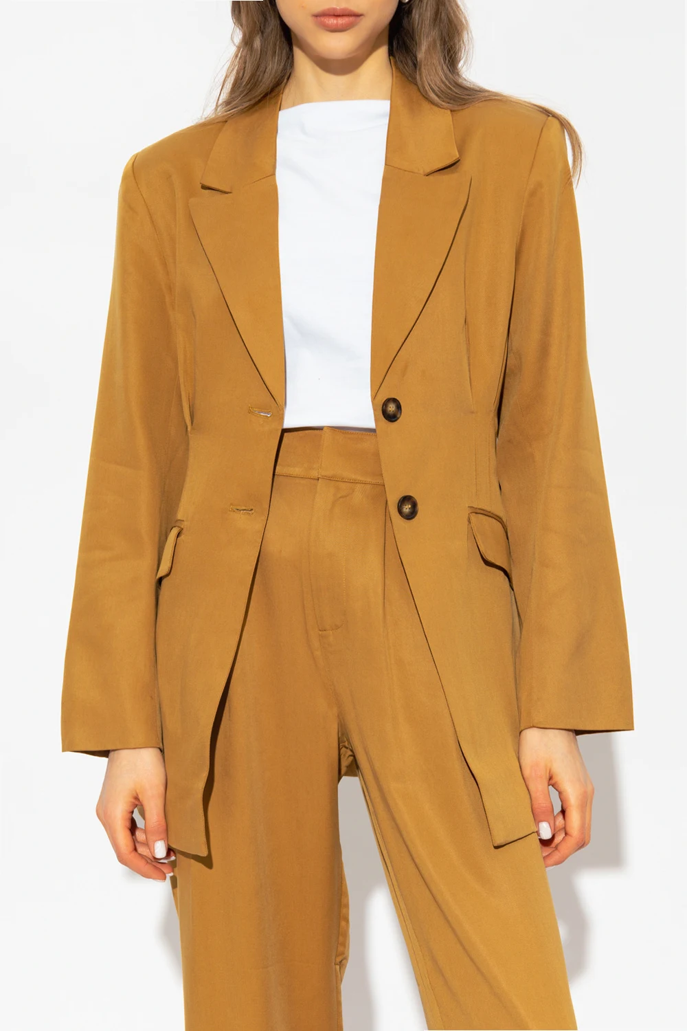 Brown ‘Ginger’ single-breasted blazer from Notes Du Nord. Cut with a tailored fit, this style fastens with buttons and features peak lapels, two flapped pockets and long sleeves.