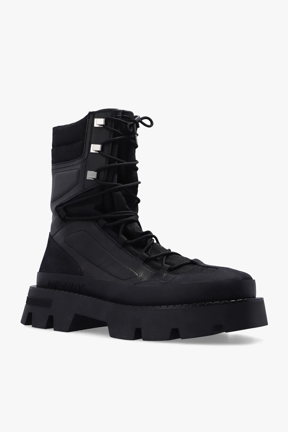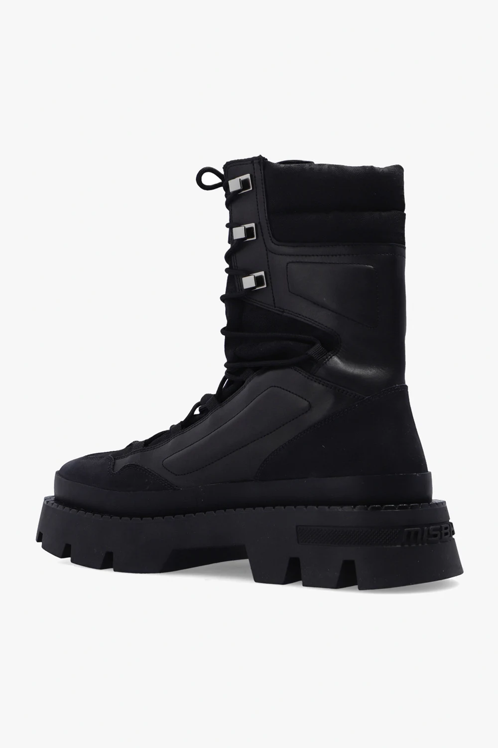 Black ‘The Ibiza’ ankle boots from MISBHV. Enriched by the brand\'s monogram, this lace-up model features leather trims, an embossed logo on the side and a black rubber sole at the base.