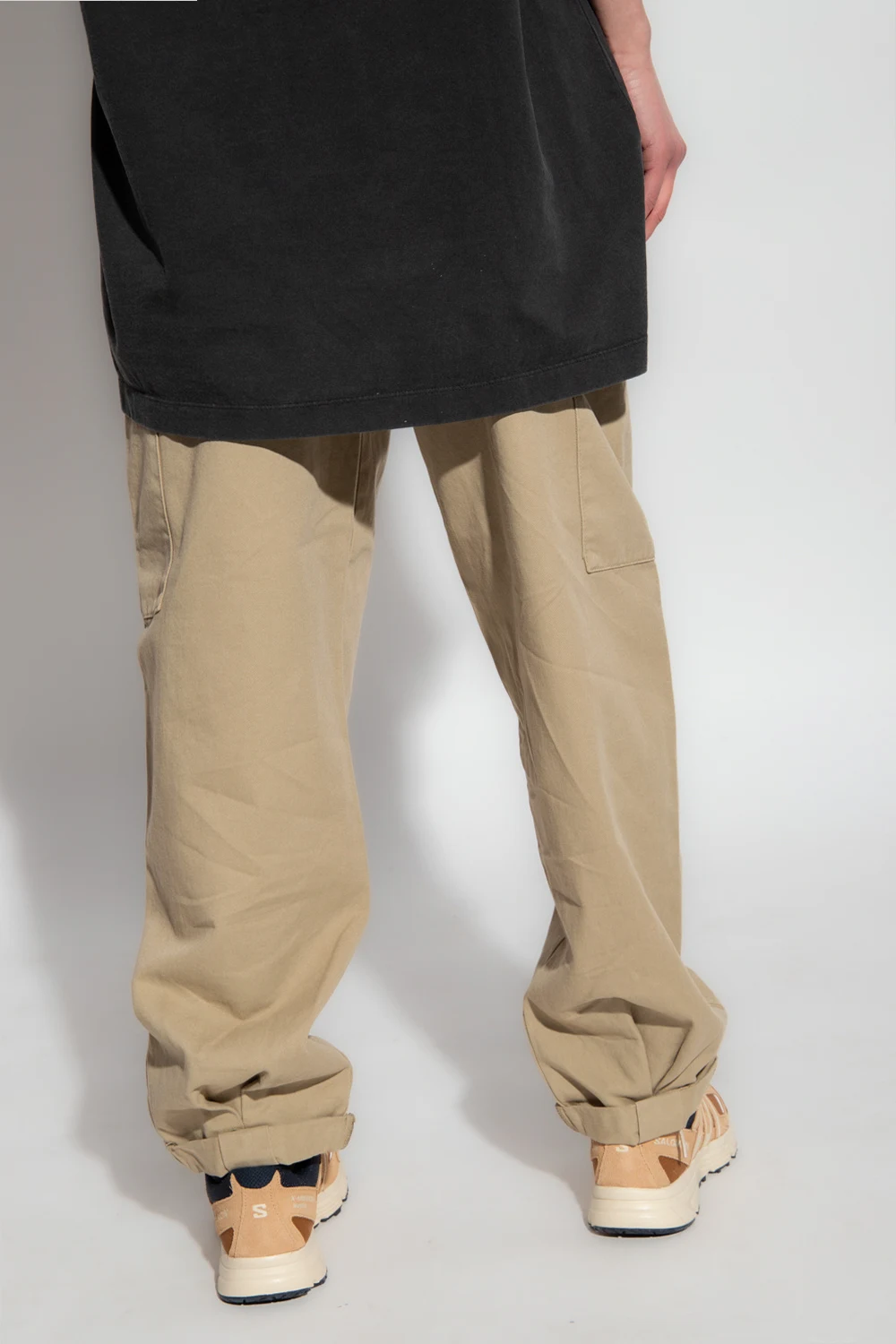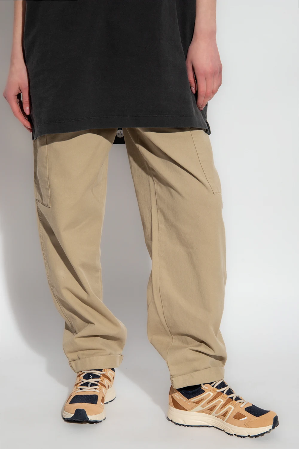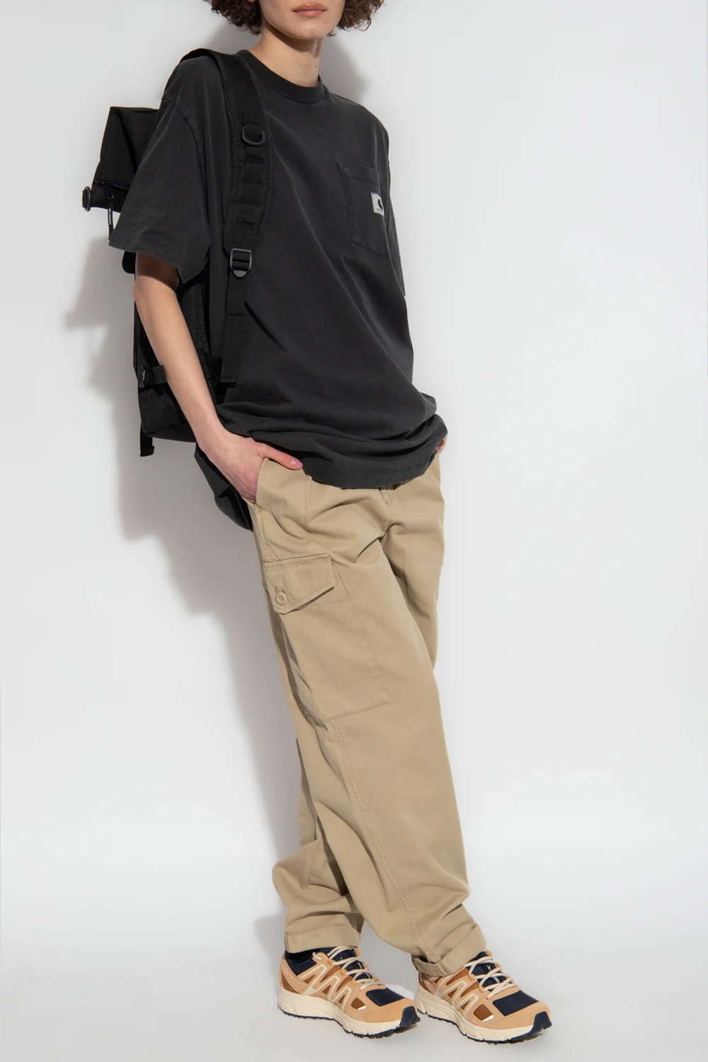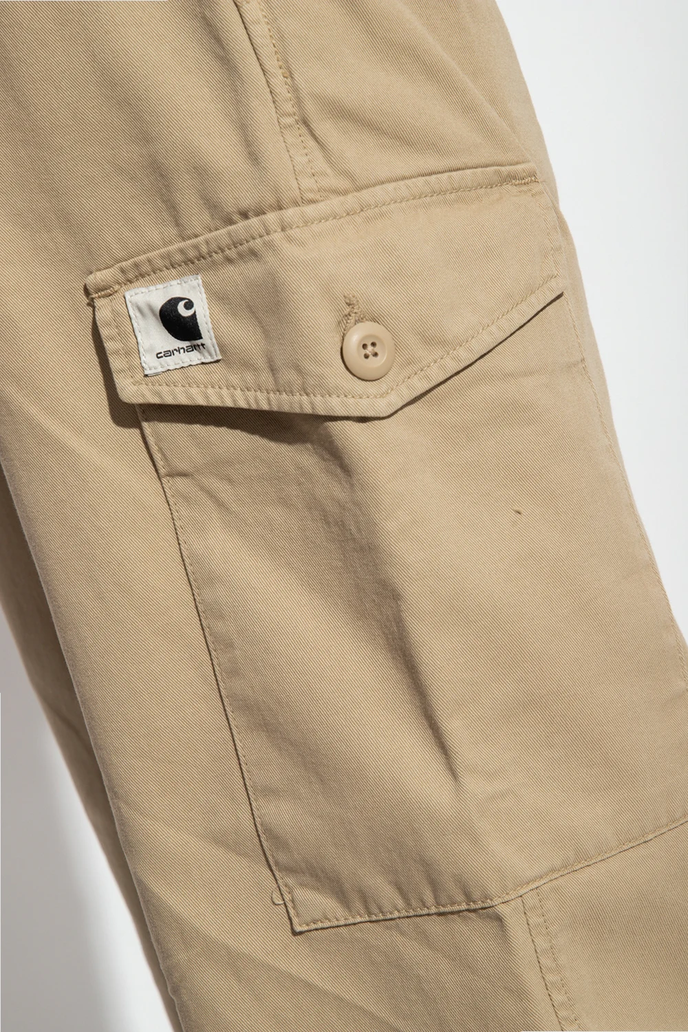 Beige ‘Collins’ cargo trousers from Carhartt WIP. Crafted from organic cotton, this pair falls with tapered legs and features a zip fly with a button, a logo patch and six pockets: two slip ones and four with button closures.