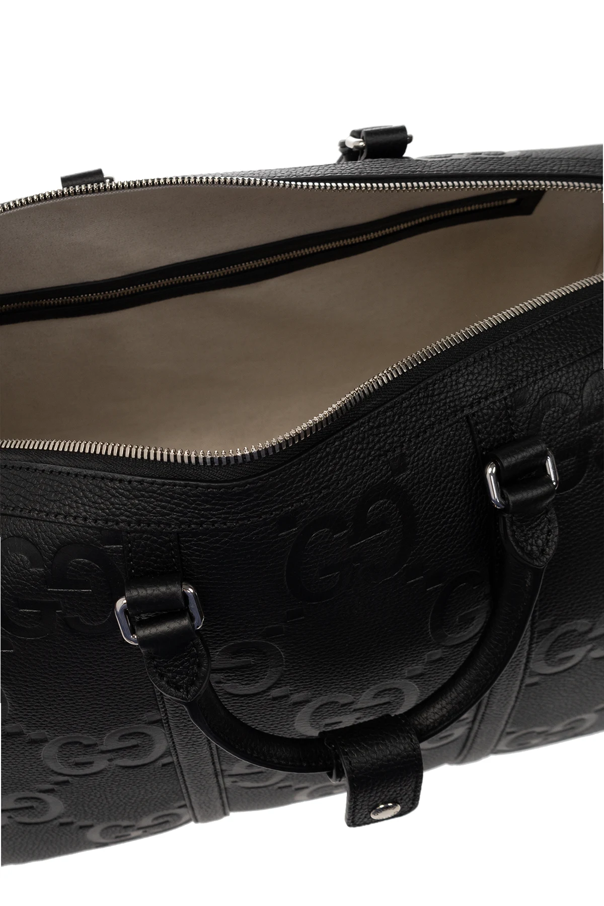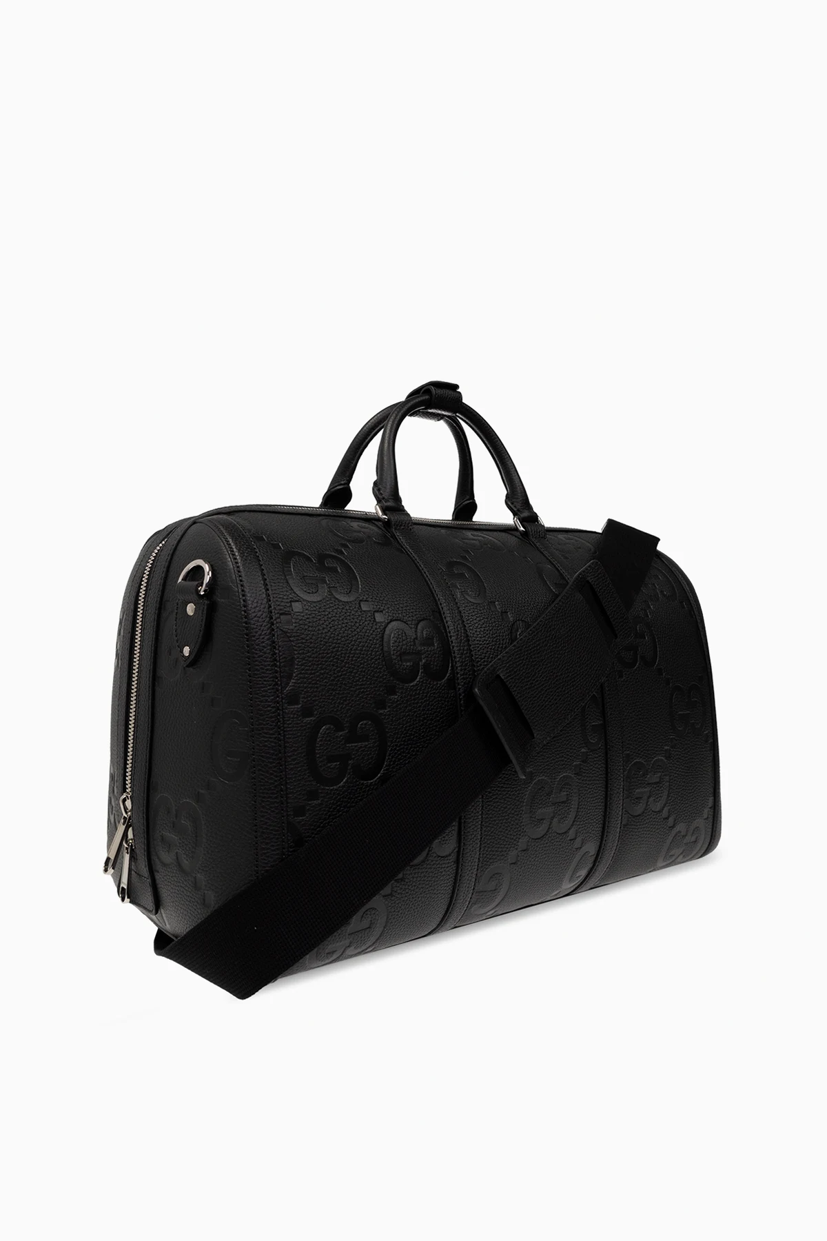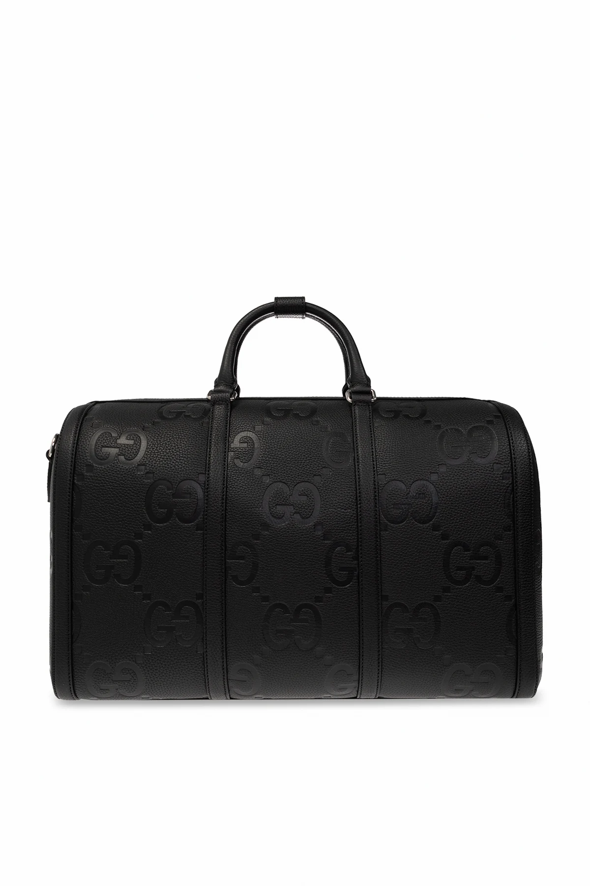 Black duffle bag from Gucci. Made of leather with the Jumbo GG pattern, this model features a two-way zip, two half-round handles, silver-tone metal hardware and one internal compartment with two zip pockets.