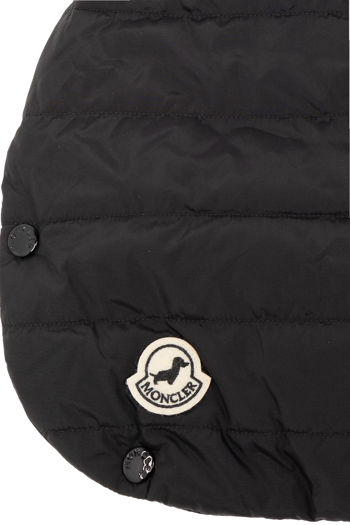 Insulated dog vest in black from Moncler. Emblazoned with a logo patch, this item features snap closures.