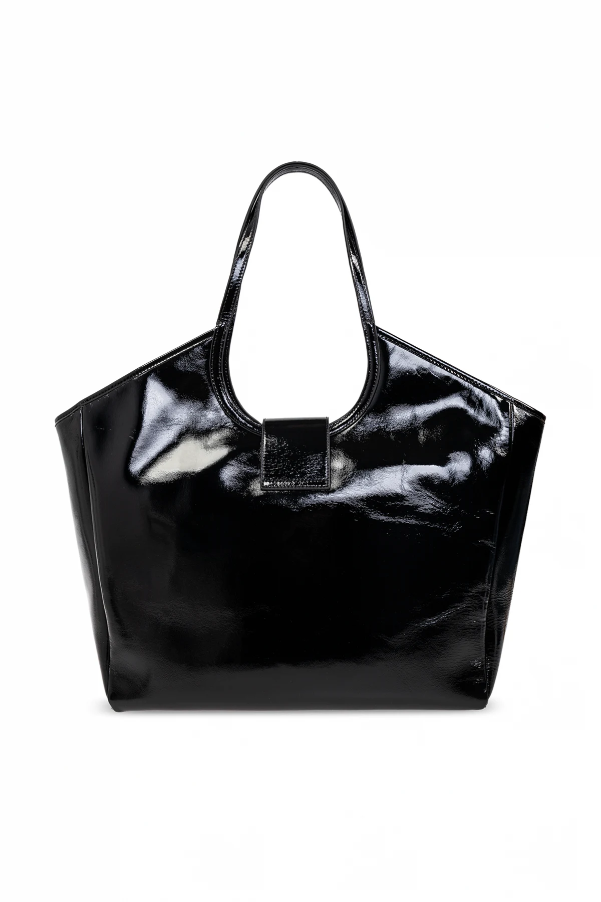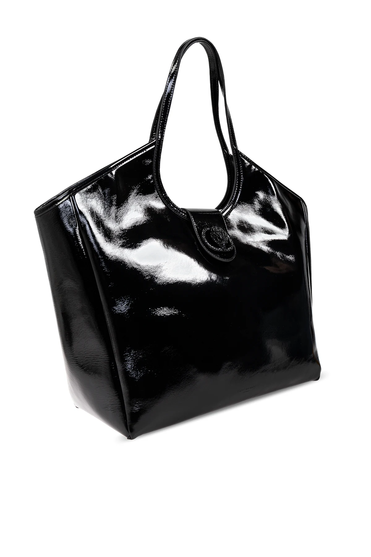 Introducing the exquisite Chelsea Bag from the renowned British designer, Kurt Geiger. This black shopper bag, part of an exclusive collection, is a testament to opulence and sophistication. Crafted from lustrous, patent leather, it exudes an air of understated elegance. The bag features a classic rectangular shape with softly rounded edges, while the front is adorned with an ornate clasp embossed with the designer\'s logo. Its interior is thoughtfully designed with a spacious compartment and three pockets, including a zippered one, ensuring practicality without compromising on style. Medium-length handles offer comfortable shoulder carrying, making it an ideal companion for daily endeavors. The Chelsea Bag seamlessly combines ample capacity with a chic appearance, embodying the perfect balance of form and function. Why Choose This Product? Timeless Elegance: A sleek black design with a glossy finish. Signature Detailing: Embossed logo clasp for added flair. Practical Interior: Spacious compartment with three pockets. Comfortable Carrying: Medium-length handles for shoulder wear. Designer Excellence: From the illustrious house of Kurt Geiger.