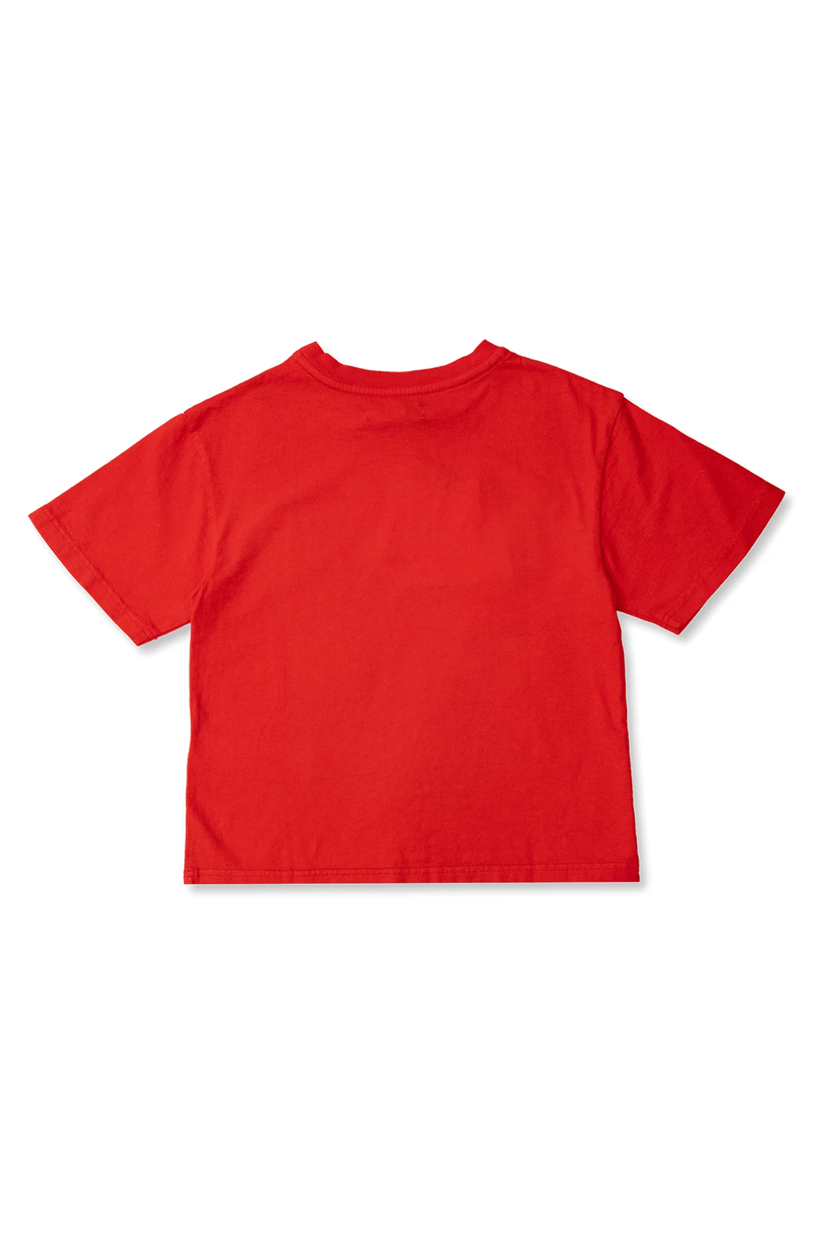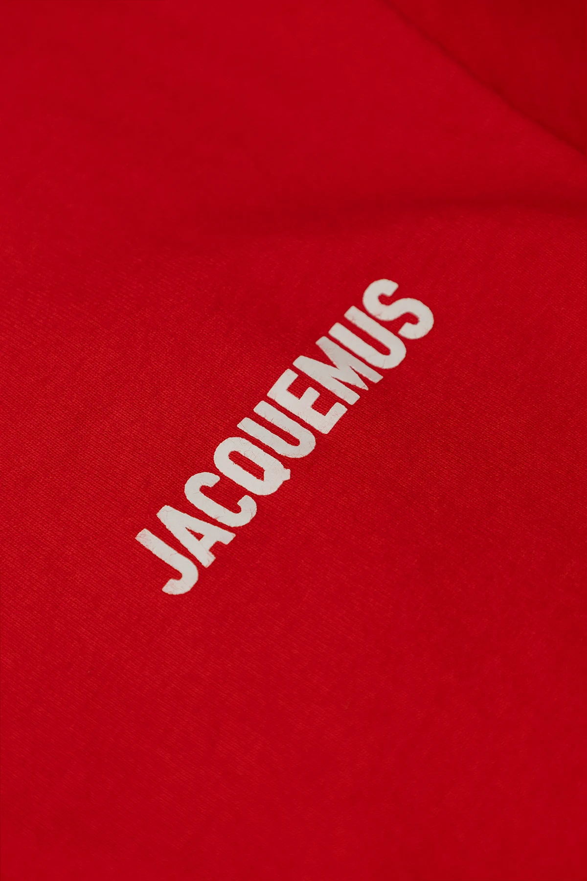 Red crewneck T-shirt from Jacquemus Kids. Made of cotton, this style features a white logo print on the front, short sleeves and ribbing on the collar.