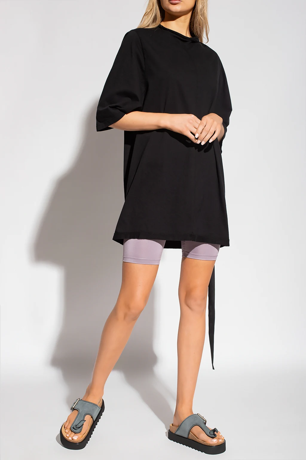 Short, purple leggings from Rick Owens Lilies. Made of shiny fabric, this pair has an elastic waistband.