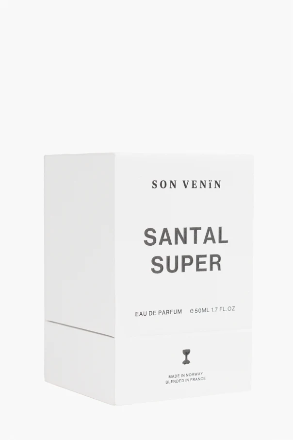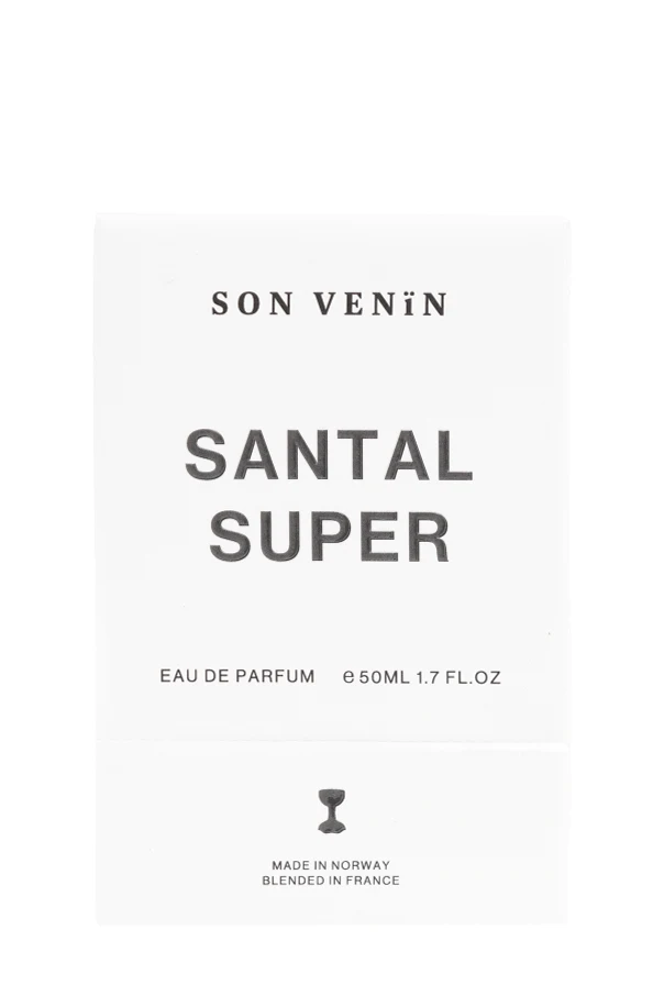 Introducing SANTAL SUPER by the illustrious Son Venin , an eau de parfum that epitomizes sophistication and unisex allure. Encased in a transparent, spherical glass bottle with a minimalist design, this exquisite fragrance reveals its contents at a glance, complemented by a matte black cap. The white rectangular label on the flacon, inscribed with "SANTAL SUPER" and "EAU DE PARFUM," denotes its 50ML (1.7 FL.OZ) capacity. The packaging, dominated by a pristine white hue with black lettering, proudly displays the Son Venin logo and the notable origins of the product: "Made in Norway," "Blended in France." This addictive and confident scent balances warm and spicy notes, offering an invigorating blend of white jasmine and cardamom . The fragrance is crowned with seductive undertones of sandalwood and cedar , harmonized with ISO E-Super, a musk molecule. Why Choose This Product? Elegant, transparent glass bottle with a sophisticated design Unisex fragrance suitable for all genders Complex scent profile featuring bergamot, jasmine, and sandalwood Exclusively crafted and blended in renowned locations Perfect balance of warmth and spice, offering a unique olfactory experience