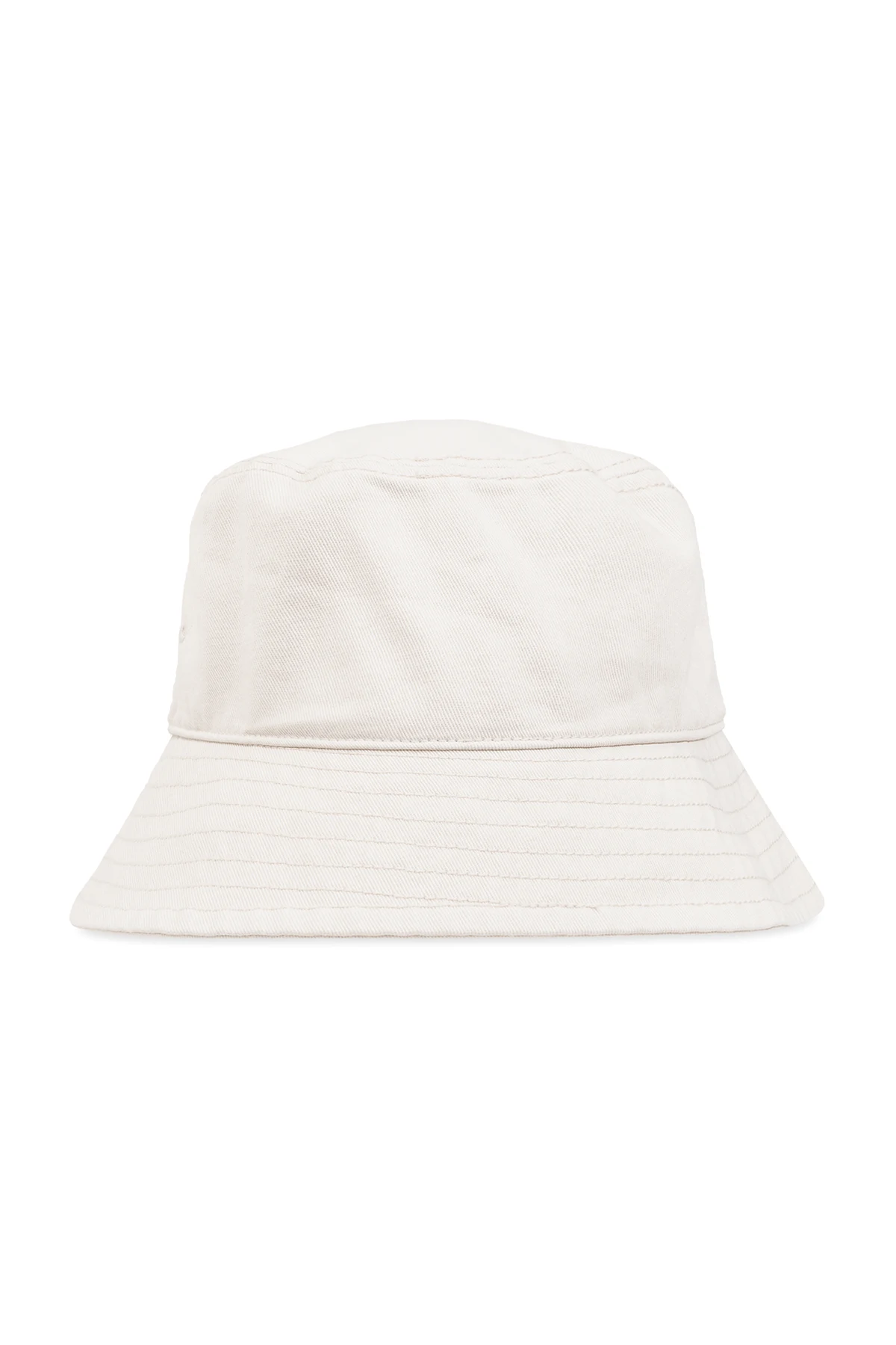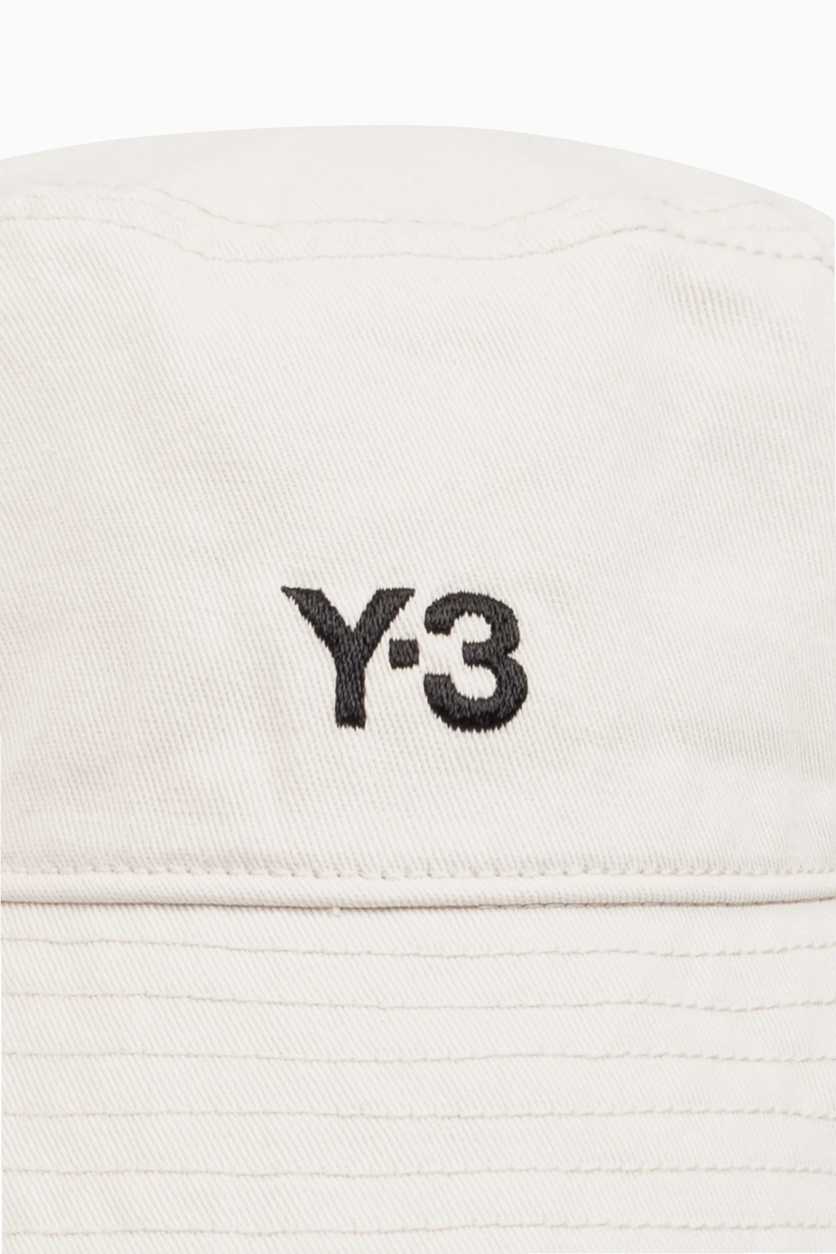 Cream bucket hat from Y-3 Yohji Yamamoto. Made from cotton, this item showcases an embroidered black logo.