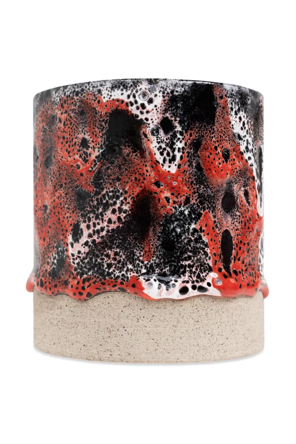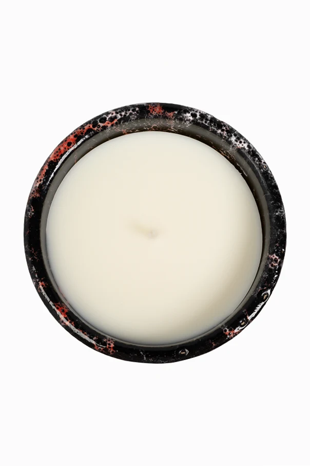Introducing the Redstone Glaze scented candle by the esteemed fashion house Bottega Veneta . This luxurious candle, crafted with meticulous attention to detail, is a testament to the brand's dedication to elegance and innovation. The candle boasts a cylindrical shape with a unique glaze pattern that exudes artistic flair. The surface features dynamic color splashes and tonal transitions in red, black, and white , reminiscent of a masterful glaze effect. The base, made from a light, stone-like material, is elegantly engraved with "BOTTEGA VENETA MADE IN ITALY," signifying its prestigious origin. Encased in a ceramic jar adorned with volcanic glaze, the Redstone Glaze candle is as much a visual masterpiece as it is an olfactory delight. Its scent profile includes rich notes of plum, tobacco leaves, and cedar essence , creating a captivating aroma that transforms any space into a sanctuary of sophistication. Why Choose This Product? Exquisite Design: A stunning combination of artistry and elegance. Luxurious Scent: Infused with plum, tobacco leaves, and cedar essence for a rich, inviting aroma. Prestigious Branding: Crafted by Bottega Veneta, a renowned name in the world of high fashion. Unisex Appeal: Perfect for any setting, adding a touch of class to any lifestyle. Made in Italy: A testament to superior craftsmanship and quality.