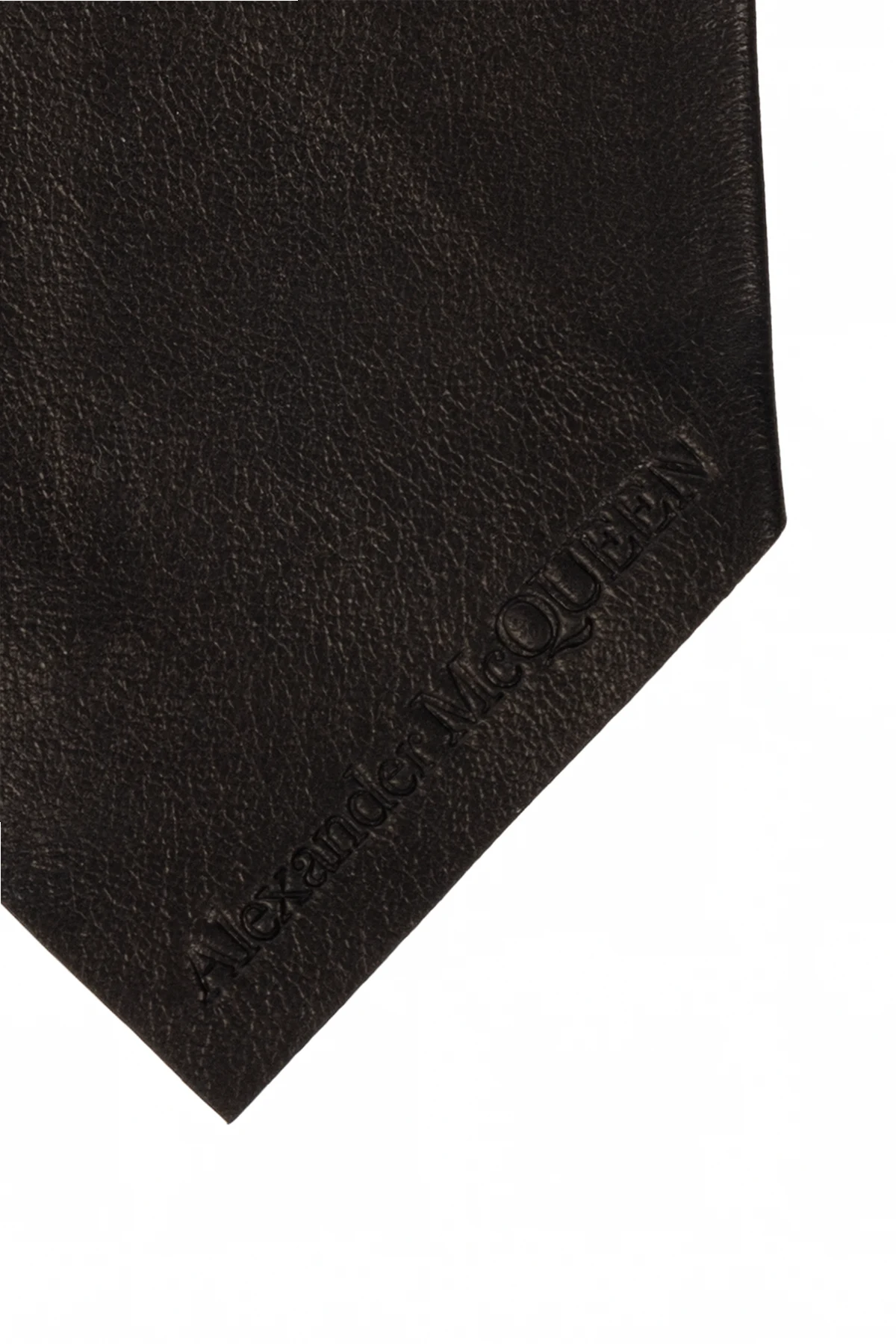 Black tie from Alexander McQueen. Made of lamb leather, this item features an embossed logo.
