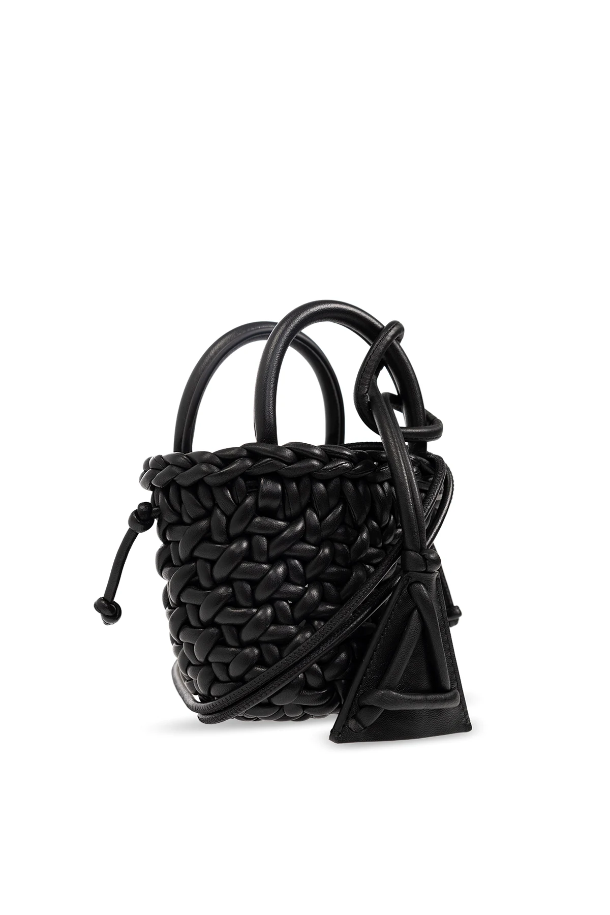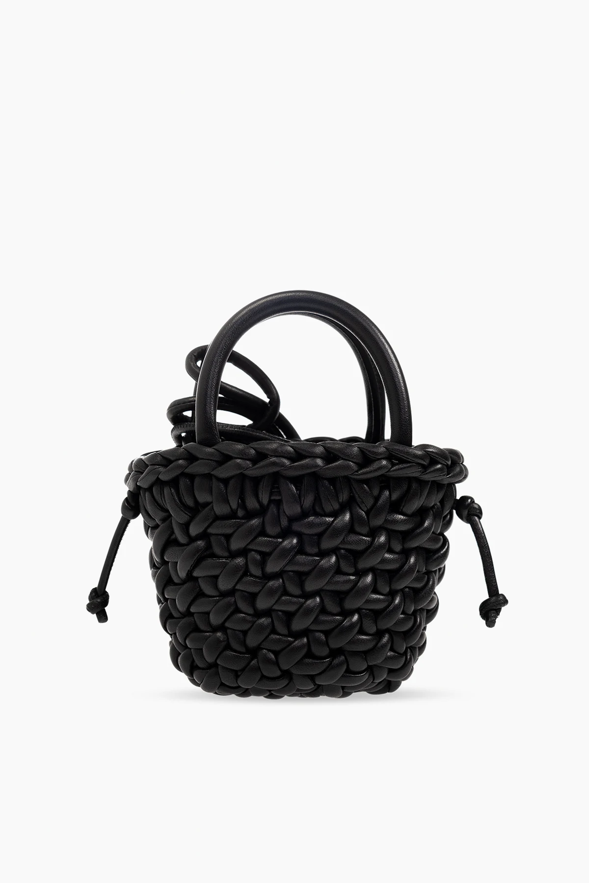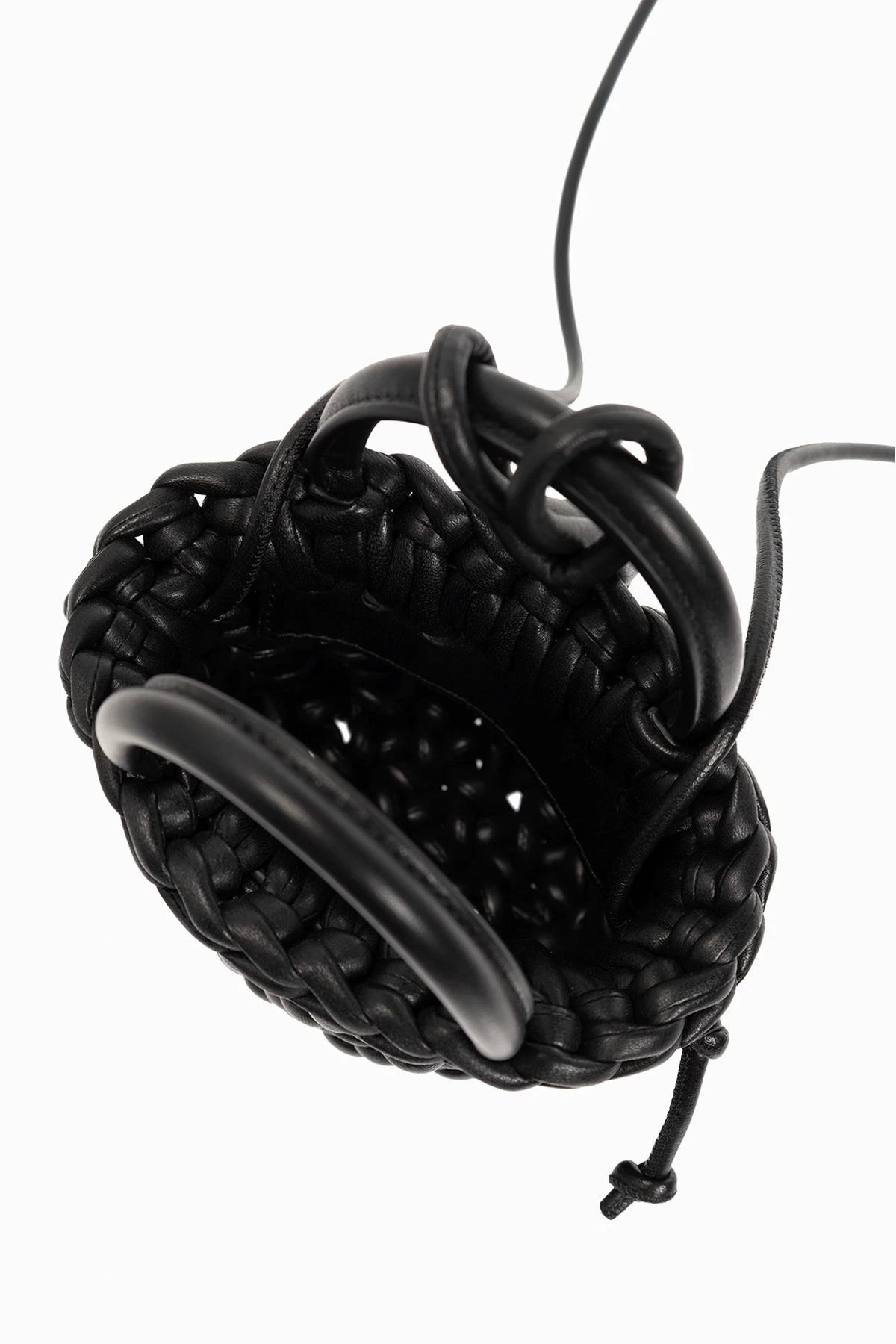 Black ‘Icon Mini’ shoulder bag from Alanui. Made of woven leather, this design features a detachable logo keyring, shoulder strap, two half-round handles, one internal compartment and gold-tone metal hardware.