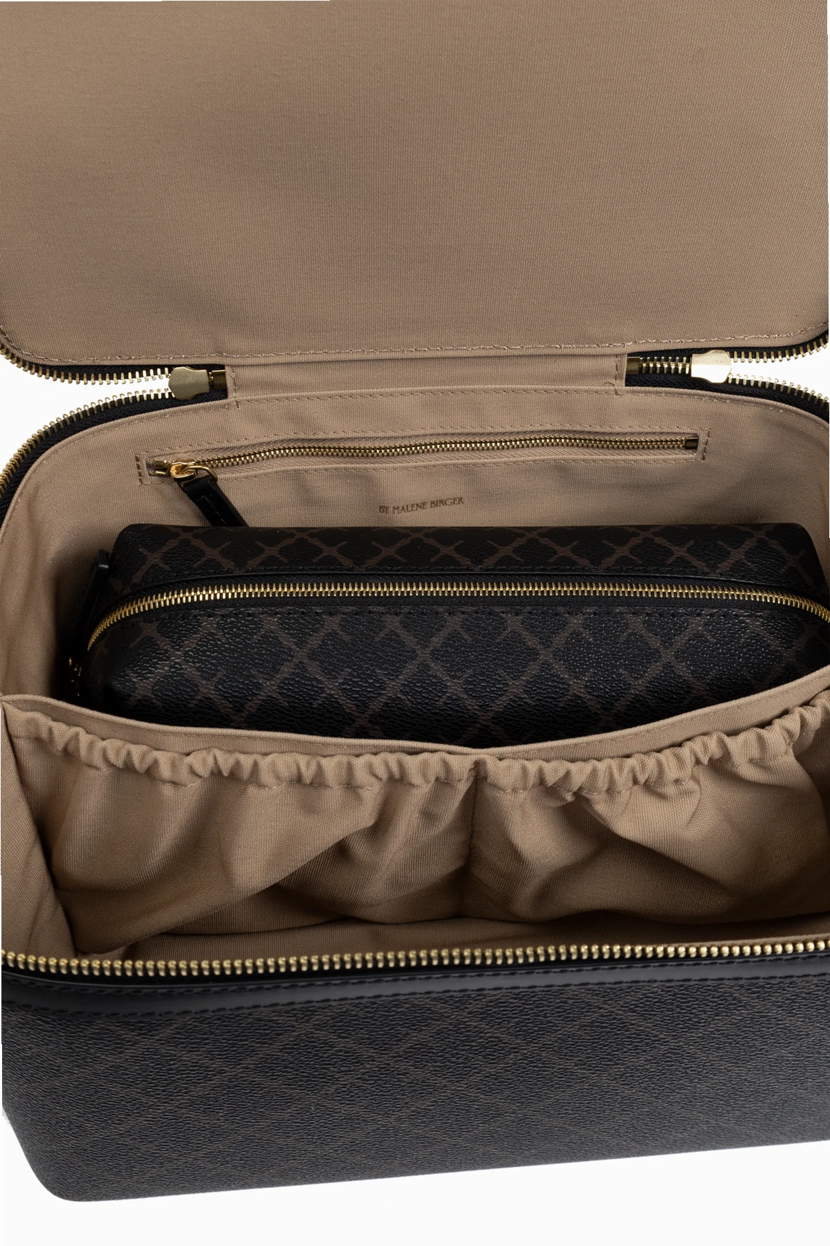 Introducing the Bae Beauty Case by By Malene Birger, an epitome of luxury and functionality molded into one. Crafted from premium material adorned with a distinctive pattern that weaves across its surface, this accessory stands out for its durability and timeless design. Its rectangular shape, with subtly rounded corners, projects a spacious and sturdy silhouette, ensuring ample room for all your beauty essentials. The case\'s aesthetic is enhanced by its classic black color, offering both elegance and practicality. Gold-toned metal zippers add a touch of opulence, harmonizing with the overall luxurious feel of the case. The single handle, fabricated from the same high-quality material as the body, allows for easy and comfortable carrying. Functionality meets style within its interior, which reveals a lighter contrast color, multiple compartments, and three pockets—two slip and one zippered—augmenting its practicality. An included cosmetic pouch further elevates its utility, making organization effortless. Why Purchase the Bae Beauty Case? Superior Craftsmanship: Impeccably designed with high-quality materials and attention to detail. Timeless Design: Classic black hue paired with gold accents ensures it remains a staple luxury accessory. Functional Elegance: Spacious interior with multiple pockets and a cosmetic pouch for organized storage. Signature Style: Features a unique pattern, potentially emblematic of the By Malene Birger brand, adding an exclusive touch.