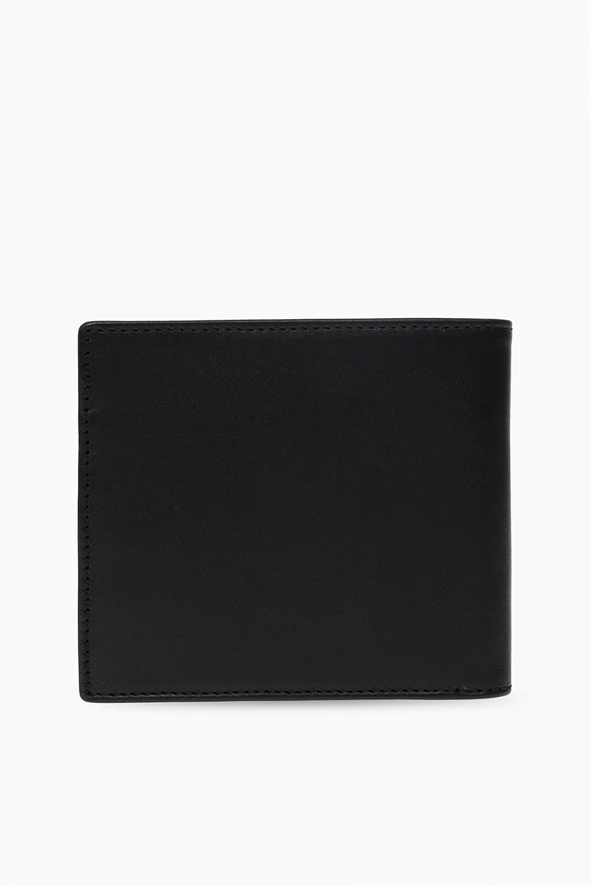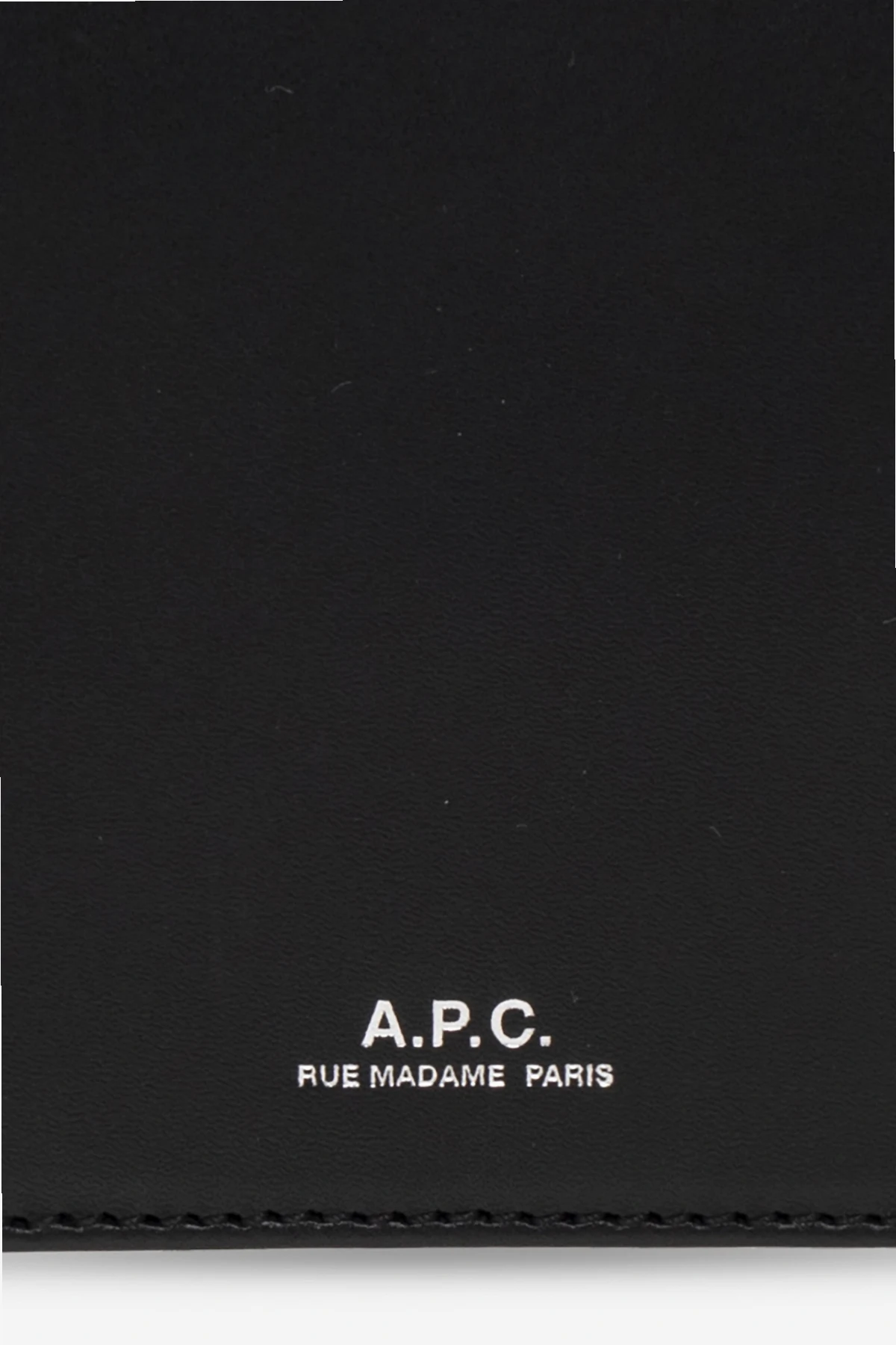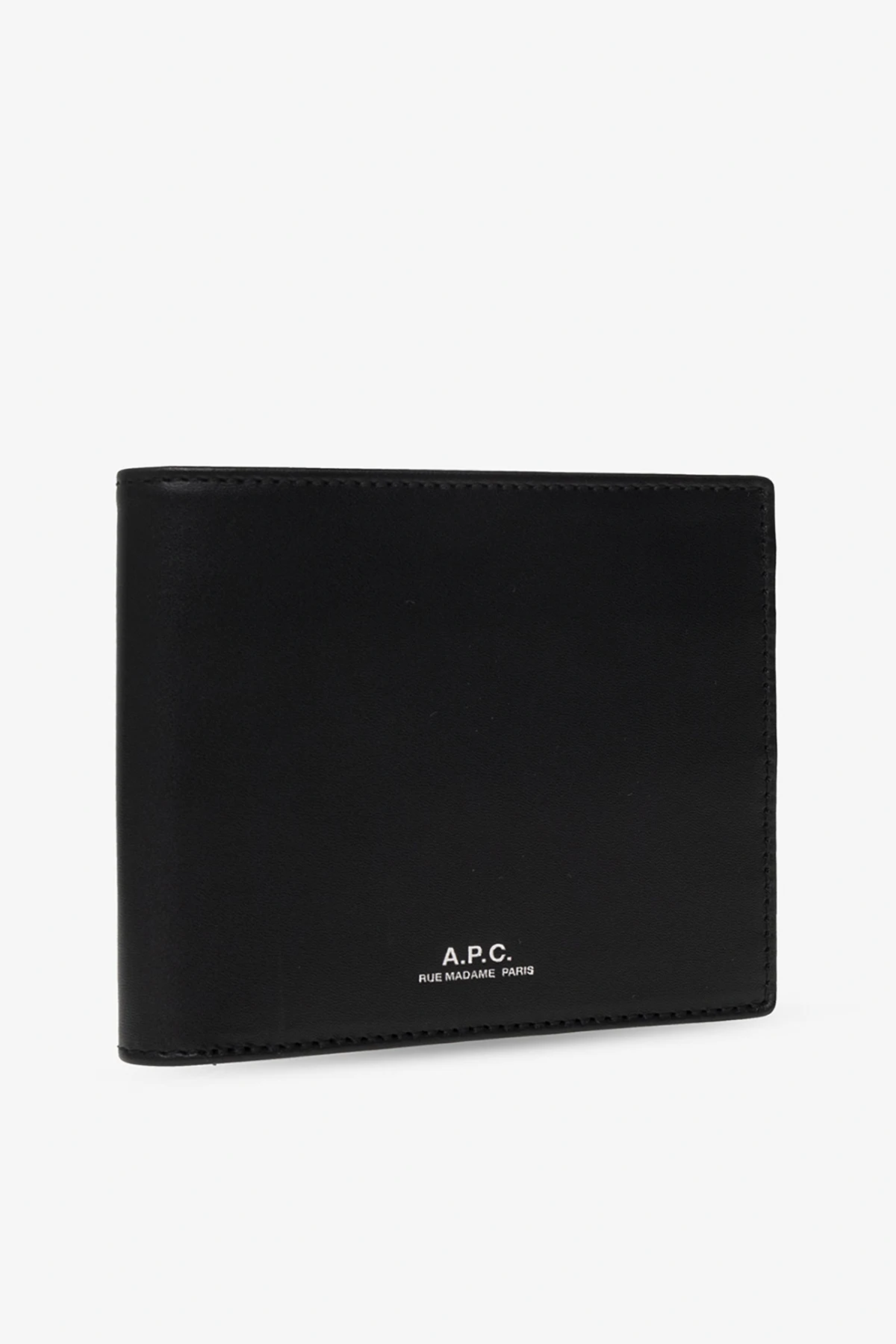 Black ‘Aly’ bifold wallet from A.P.C. Made of textured leather, this item features a silver-tone logo print and has a bill compartment, two slip pockets and six card slots inside.