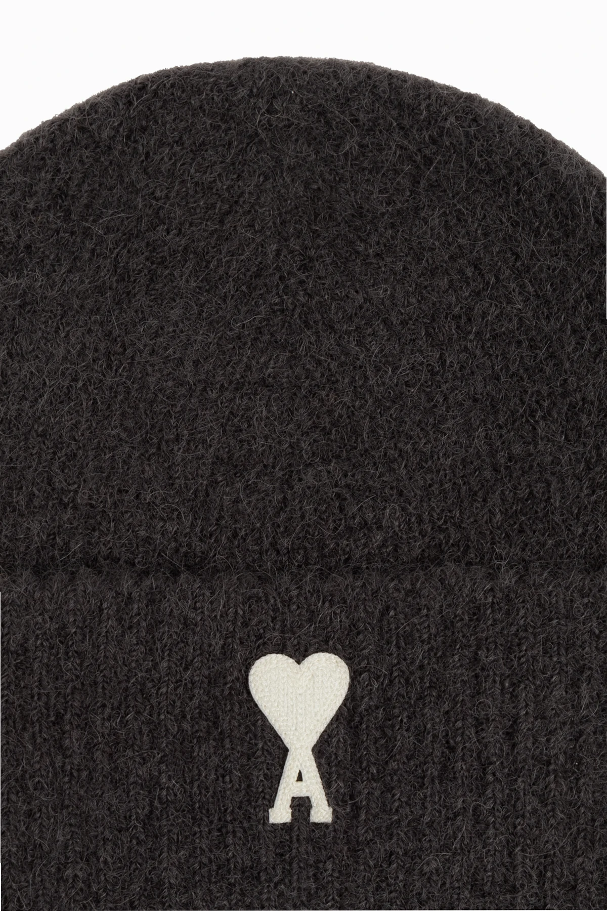 Introducing the Gray Beanie with Designer Logo Patch – a paragon of refined simplicity and understated elegance. Crafted with a blend of the finest materials, including alpaca wool, polyamide, and elastane, this beanie promises warmth and soft comfort. This unisex accessory features a classic winter hat shape with a folded brim. The beanie\'s minimalist, monochromatic gray design is accentuated by a distinctive logo patch – a white heart placed above the letter \"A\", adding a subtle yet impactful designer touch. Inspired by the effortless chic of Parisian fashion, Ami Alexandre Mattiussi brings a unique blend of casual and sophisticated style to this piece. Founded in Paris in 2011, AMI embodies a friendly, authentic approach to fashion, drawing inspiration from its namesake, the French word for \'friend\'. Why Buy This Product? Luxurious Material: Made from a premium blend of alpaca wool, polyamide, and elastane for superior warmth and comfort. Timeless Design: A minimalist, unisex beanie perfect for any wardrobe and any cold day. Distinctive Logo: Features an elegant logo patch that highlights the designer’s identity. Versatile Style: Pairs effortlessly with both casual and formal outfits, embodying the Parisian nonchalance. Exclusive Brand: Designed by Alexandre Mattiussi, the first male designer to win the prestigious ANDAM award.