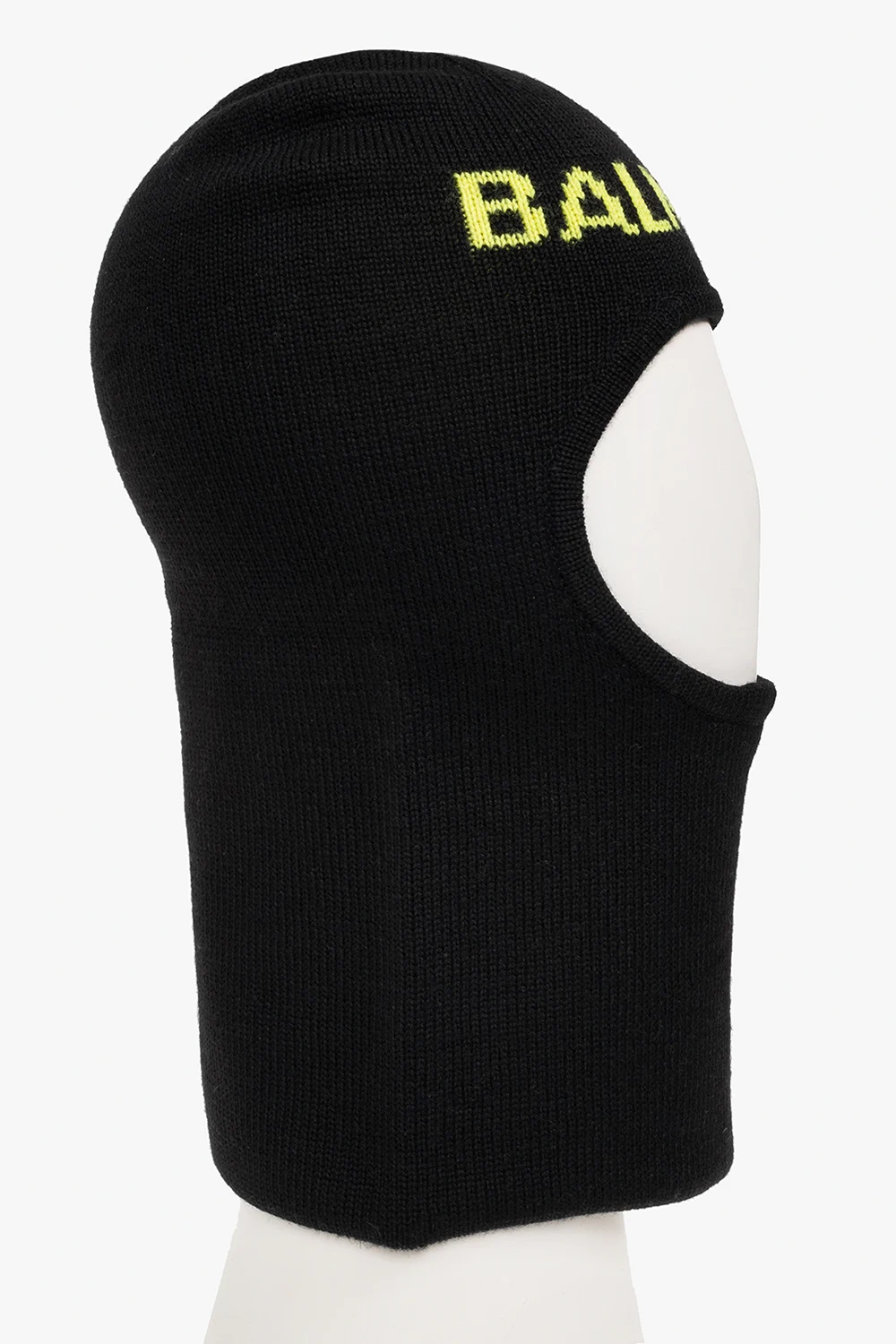 Black and yellow balaclava from Balmain Kids. Made of wool, this item features neon yellow logo embroidery on the front.