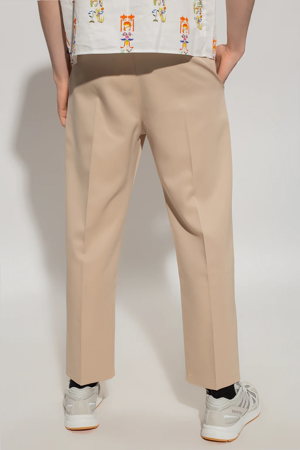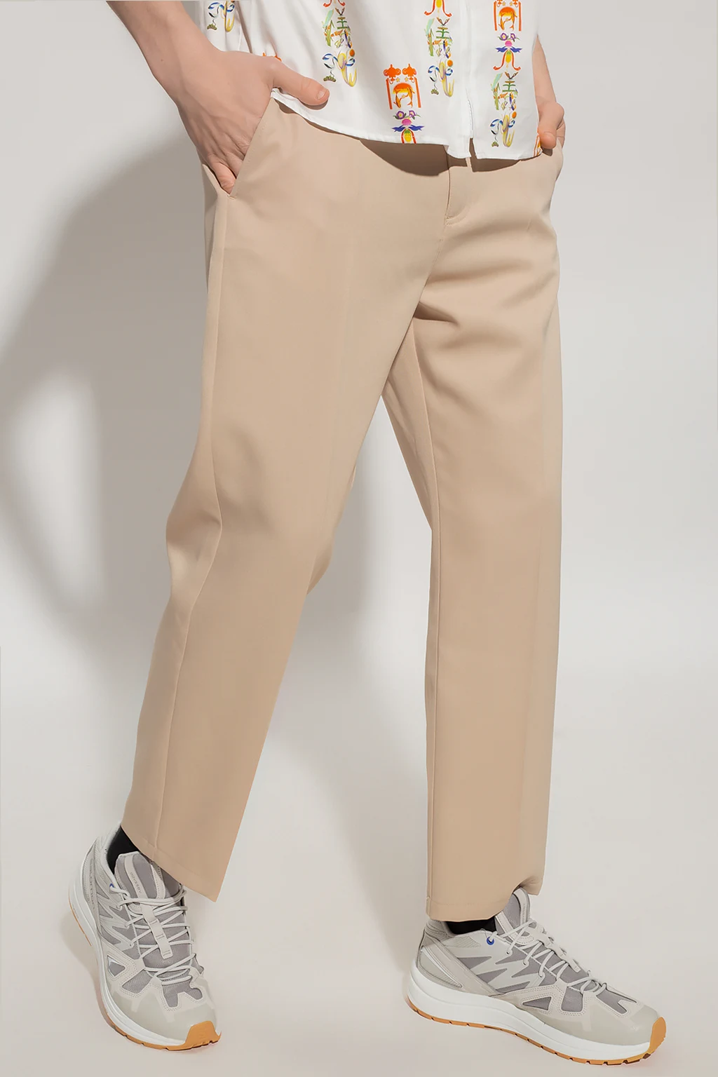 Light beige pleat-front trousers from Opening Ceremony. Fastened with a zip and button, this pair features two front pockets, decorative silver-tone zip around the waist and slightly tapered legs.