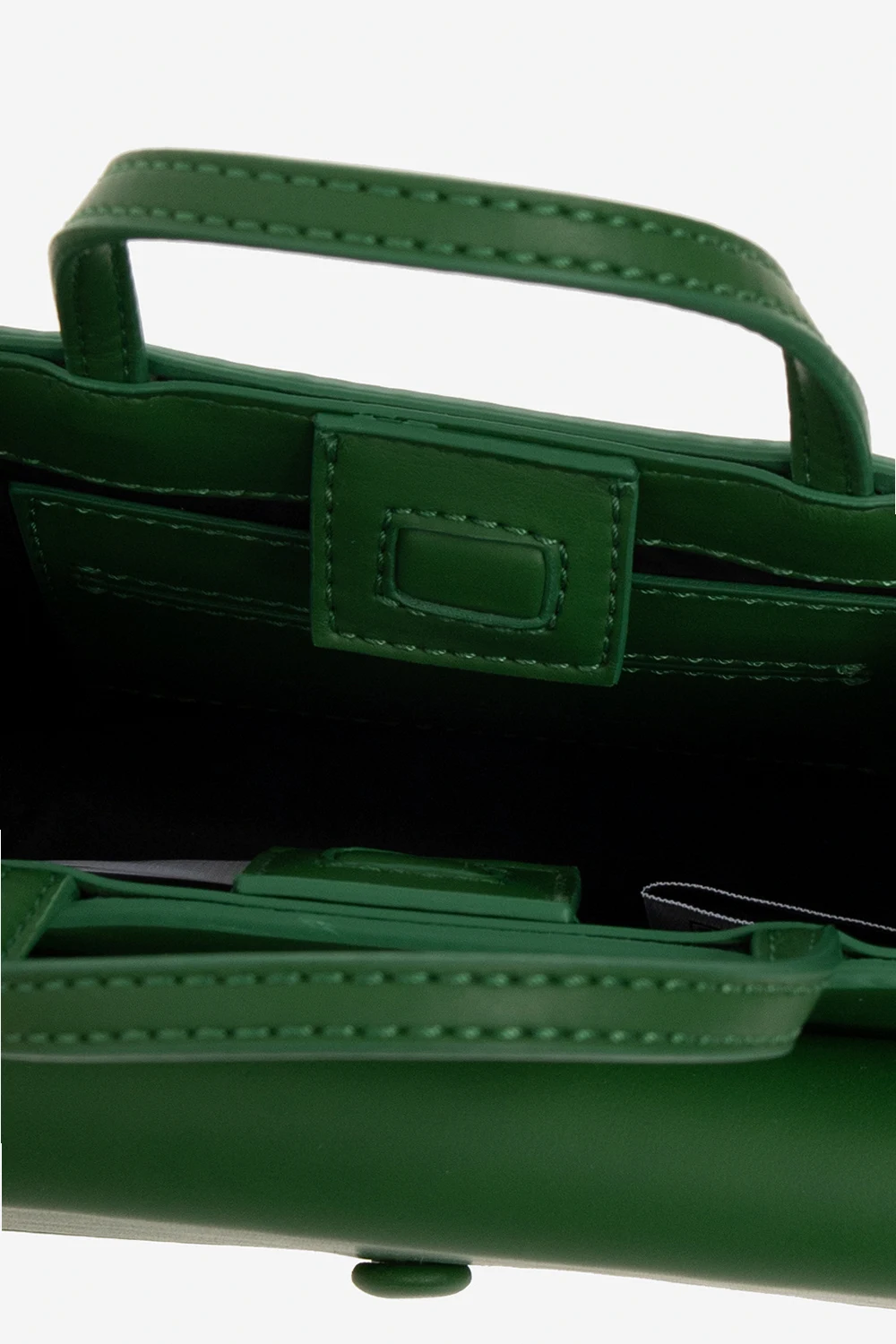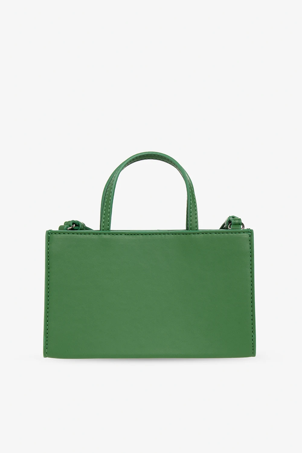 Green ‘Razor Clam’ shoulder bag from Opening Ceremony. Crafted from faux leather, this design secures with a magnetic fastener and showcases an embossed logo, a frontal pocket with a magnetic closure, two half-round handles, a detachable strap, silver-tone metal hardware and one internal compartment with a card slot.