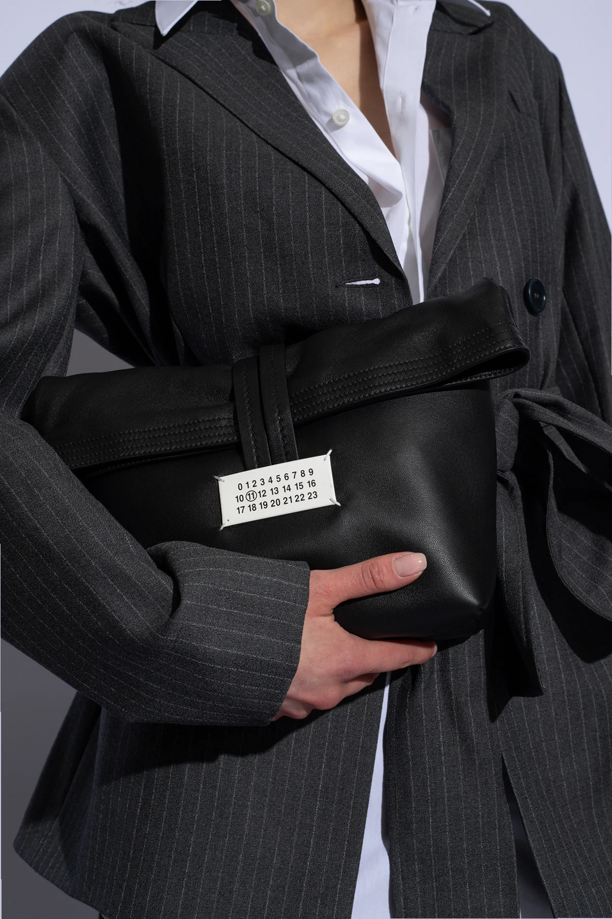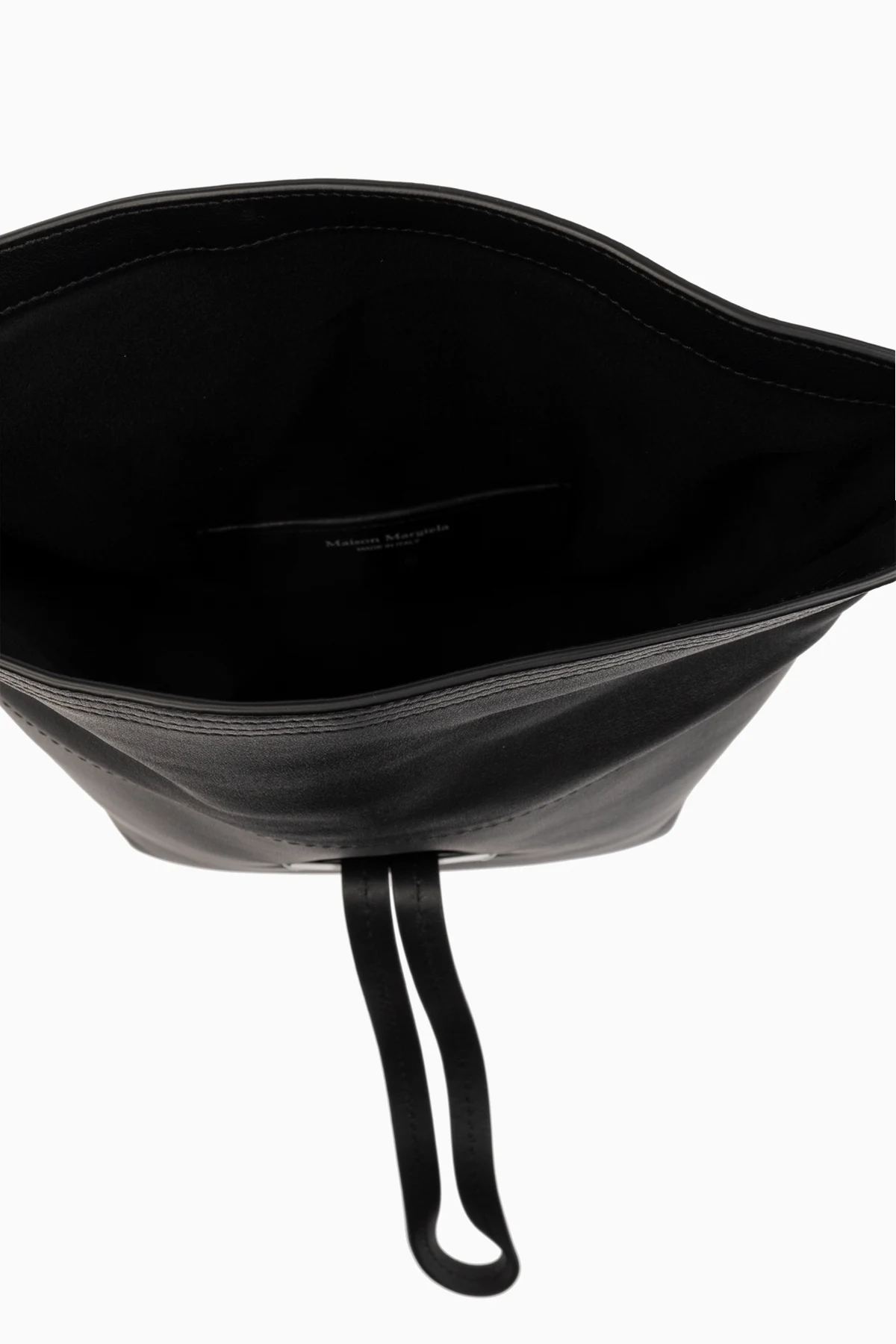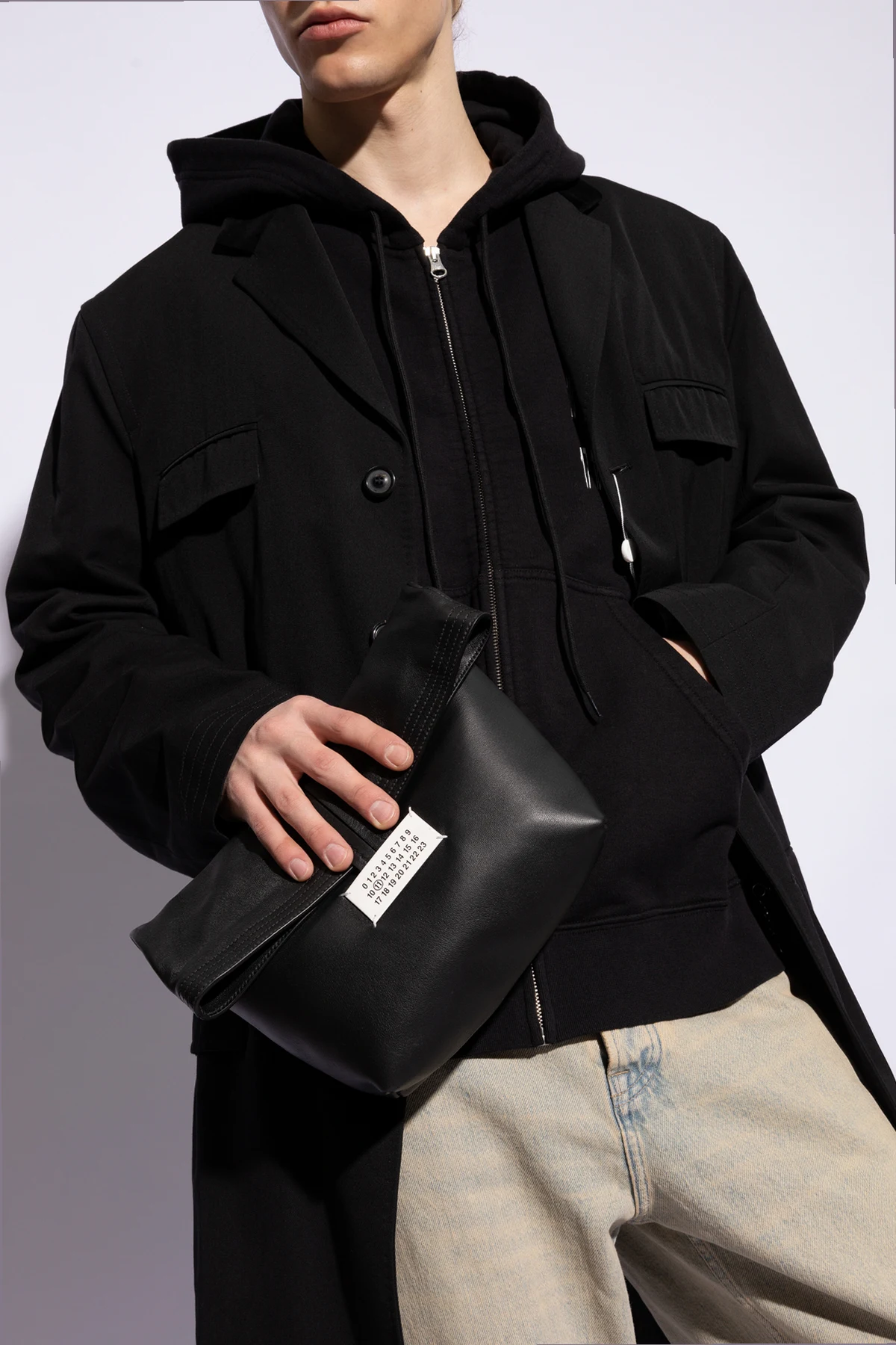 Introducing the Maison Margiela Handbag, a paragon of minimalist luxury. This exquisite piece, crafted from 100% premium leather, boasts a sleek, rectangular silhouette with subtly rounded corners, encapsulating the essence of high-end fashion. The bag\'s exterior, a deep, enigmatic black, is complemented by a distinctive white-and-black logo patch, adding a touch of elegance and brand identity. The design is further enhanced by a practical wrist strap, offering both security and ease of carry. Upon opening, the bag reveals a spacious, cotton-lined single compartment, designed for effortless organization and access to your essentials. Its clean lines and lack of superfluous decoration lend the piece a timeless allure, making it a versatile addition to any wardrobe. Why Purchase This Product? Constructed from 100% high-quality leather with a 100% cotton interior, ensuring durability and comfort. Features an innovative decorative closure that doubles as a handle, blending functionality with style. Equipped with an interior compartment and a card slot for optimal organization. The elegant, minimalistic design complements a wide range of outfits, elevating your everyday style.