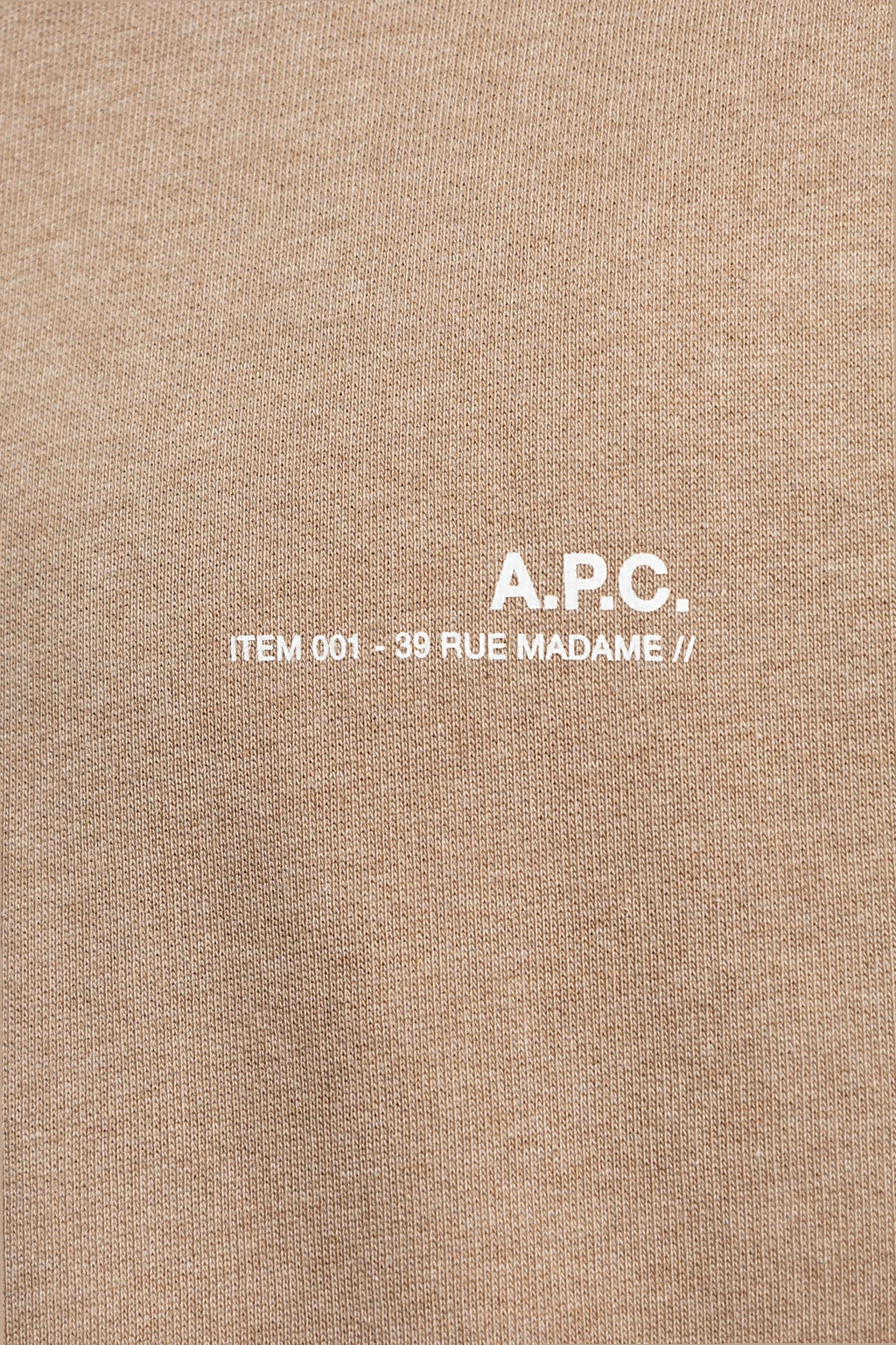 Beige ‘Cogau’ crewneck sweatshirt from A.P.C. Crafted from cotton jersey, this style showcases a white graphic print with the brand\'s logo, long sleeves and ribbed trims on the edges.