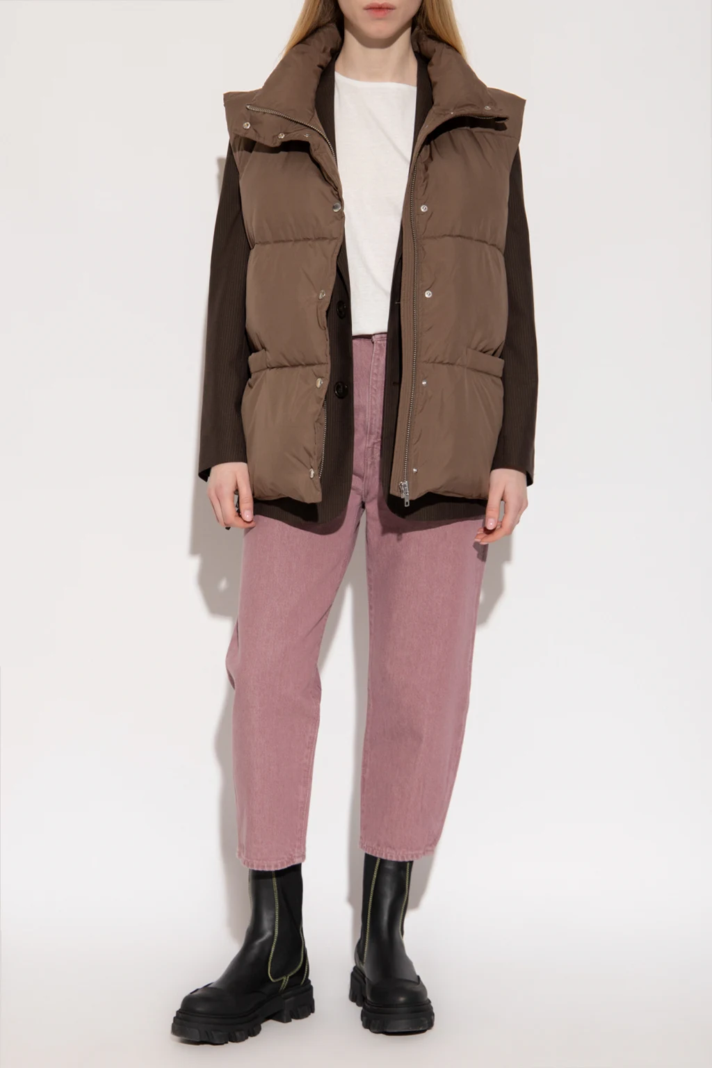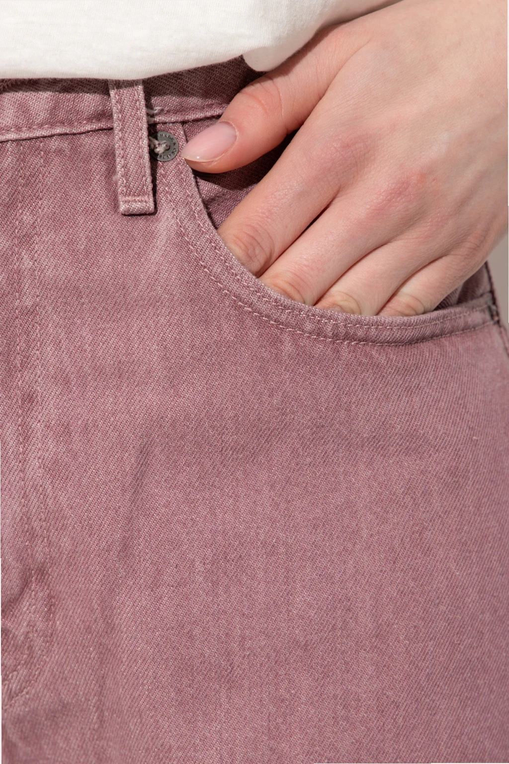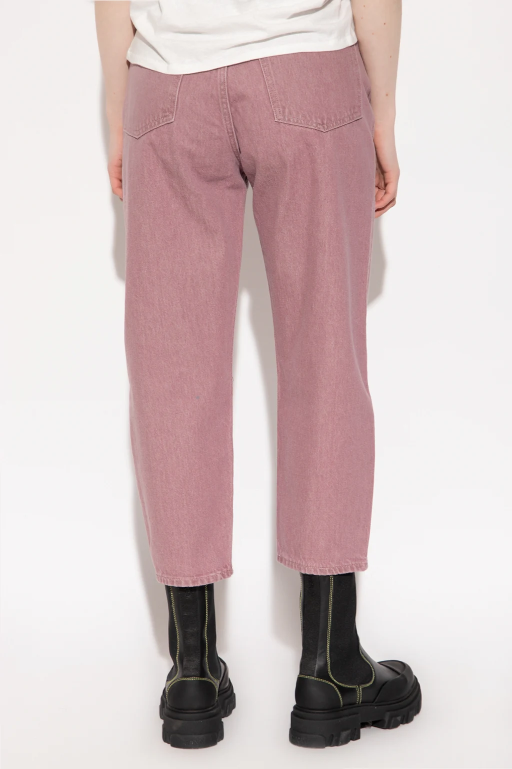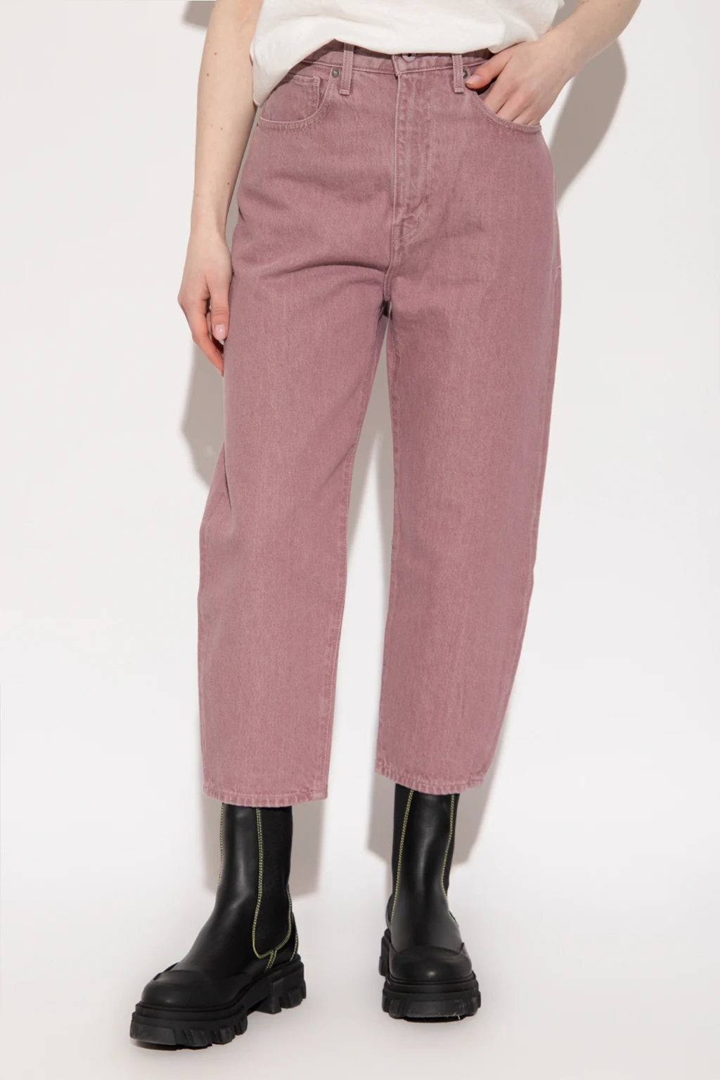 Light purple ‘Barrel Crop high-waisted jeans from Levi’s, the ‘Made & Crafted®’ collection. Made of organic linen grown without using pesticides and herbicides. Fastened with a zip and button, this pair falls down with 7/8 length legs and is complete with a leather logo-embossed patch in black and five slip pockets.