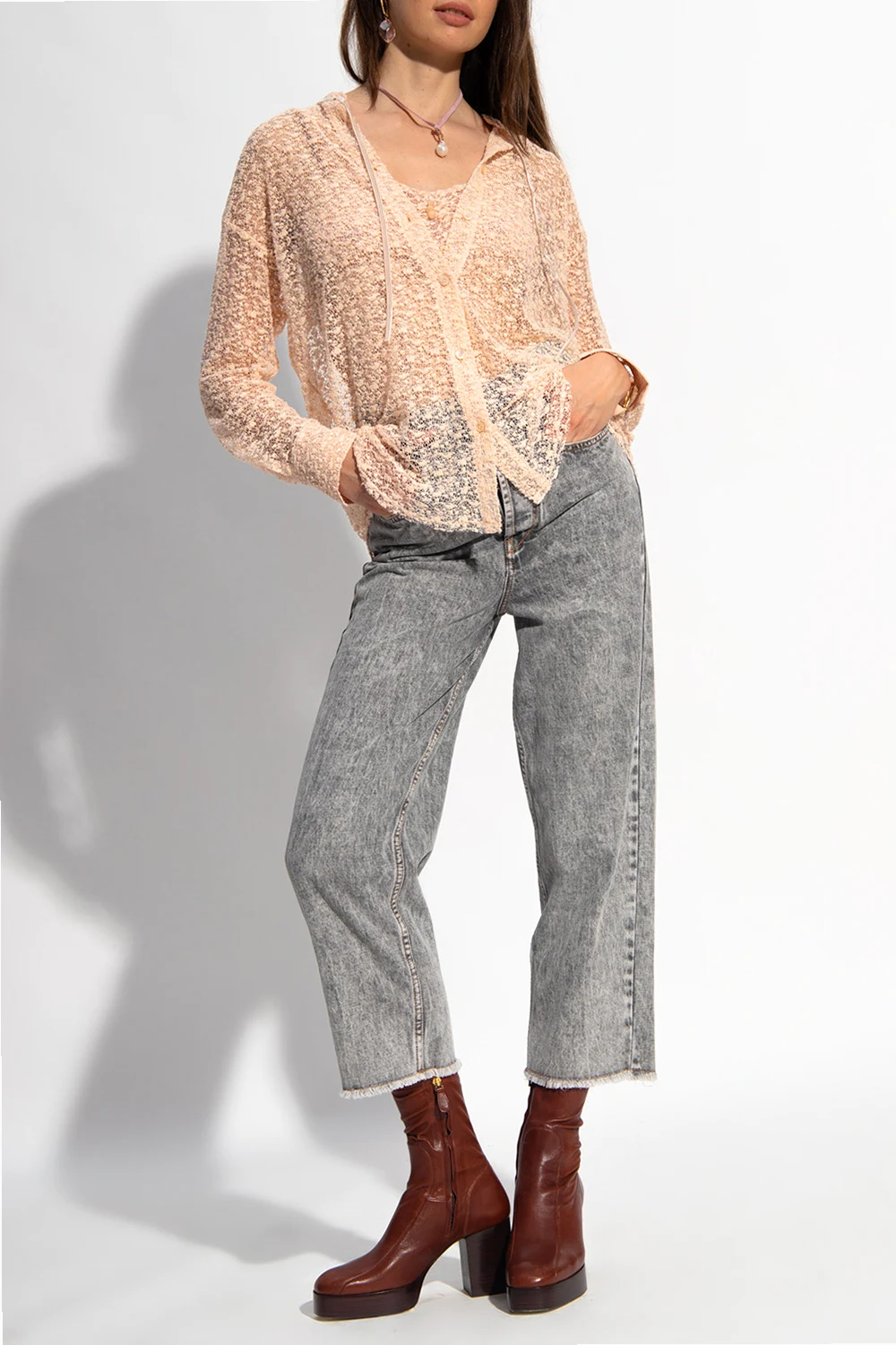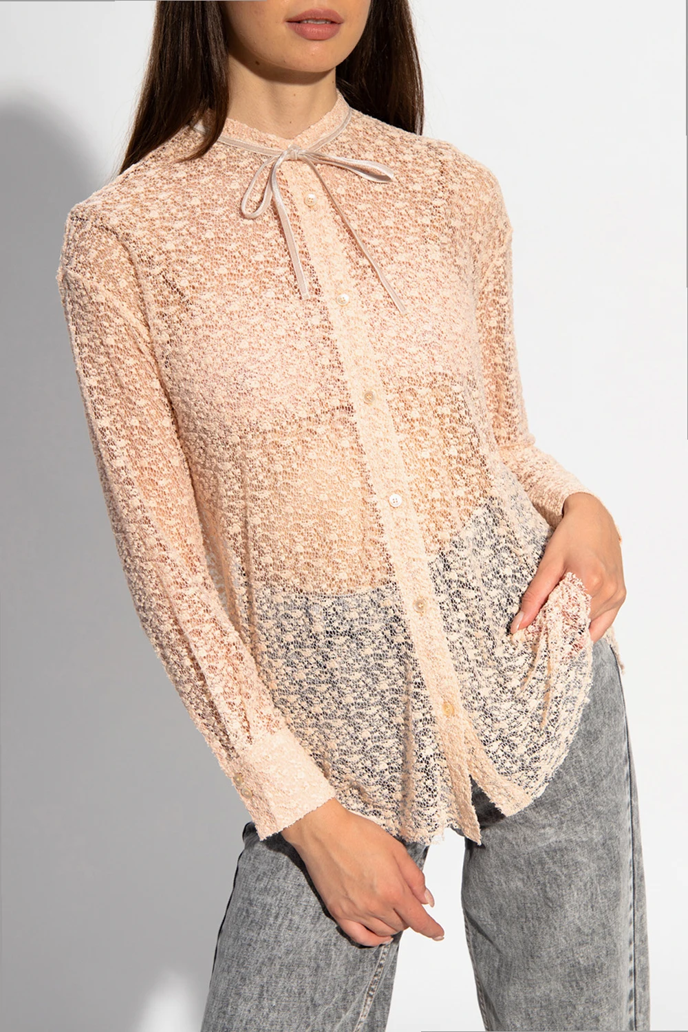 Light pink lace shirt from Forte Forte. Fastened with buttons, this garment features a high neck embroidered with a stripe and long sleeves with button cuffs.