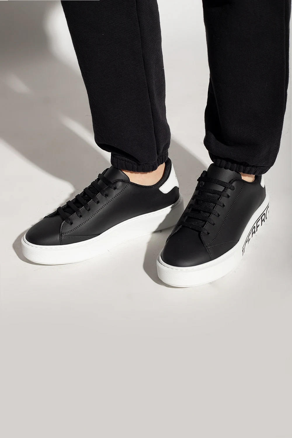 Black and white ‘Bozema’ sneakers from Iceberg. Crafted from leather, this lace-up model sits on a white rubber sole and showcases a printed logo.