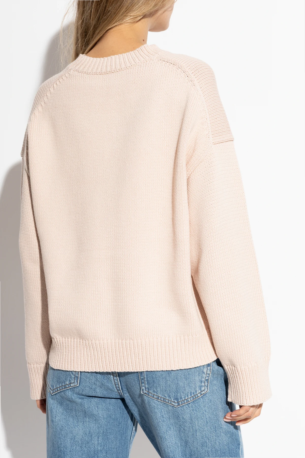 Introducing the Cotton Sweater by the esteemed New York brand, Theory. Crafted with an exquisite blend of cotton and nylon, this sweater epitomizes sophistication and comfort. The delicate powder pink hue adds a touch of elegance, making it a versatile addition to any wardrobe. The sweater features a classic, straight cut with a gracefully round neckline, embodying timeless style. The drop shoulder design imparts a relaxed silhouette, enhancing its laid-back charm. The visible knit texture accentuates its classic appeal, while the ribbed hem and cuffs introduce subtle detail to its minimalist form. Why purchase this product? Luxurious blend of materials for utmost comfort Elegant design with classic and relaxed elements Versatile color that complements diverse styles Perfect for creating stylish, everyday ensembles