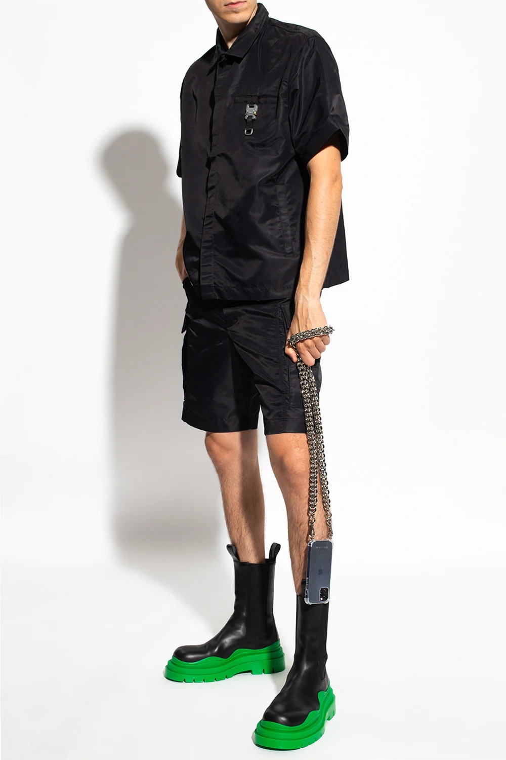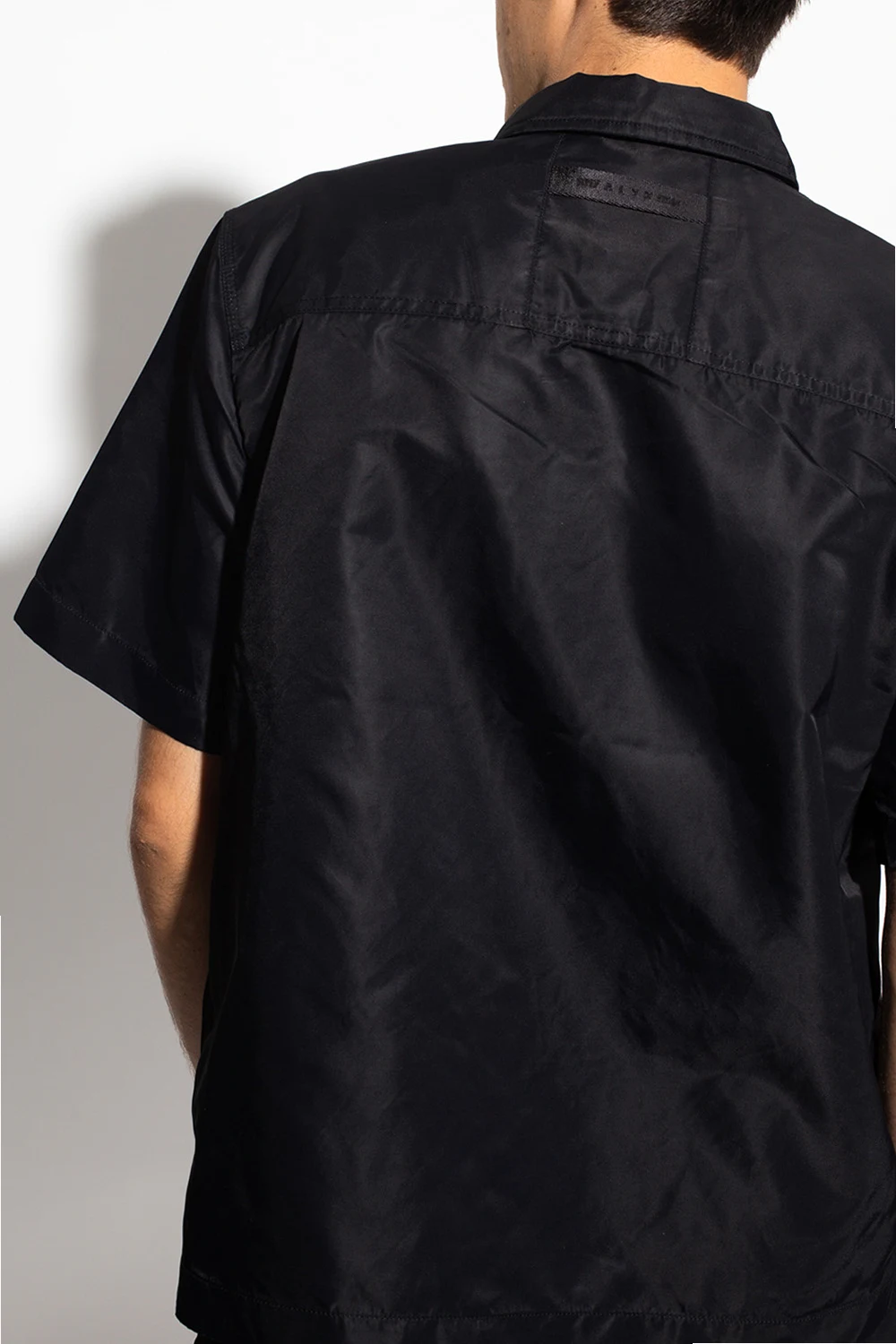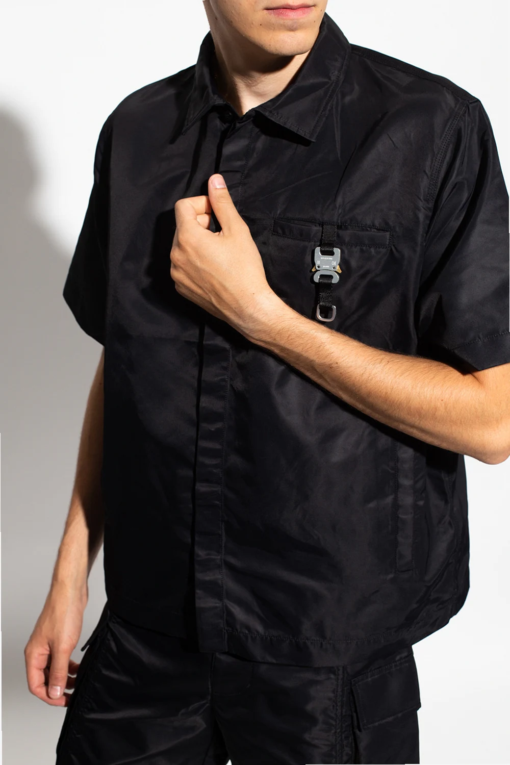 Black shirt from 1017 ALYX 9SM. Fastened with buttons with a concealed placket, this garment features three slip pockets and the label’s signature rollercoaster buckle with a logo in silver-tone.
