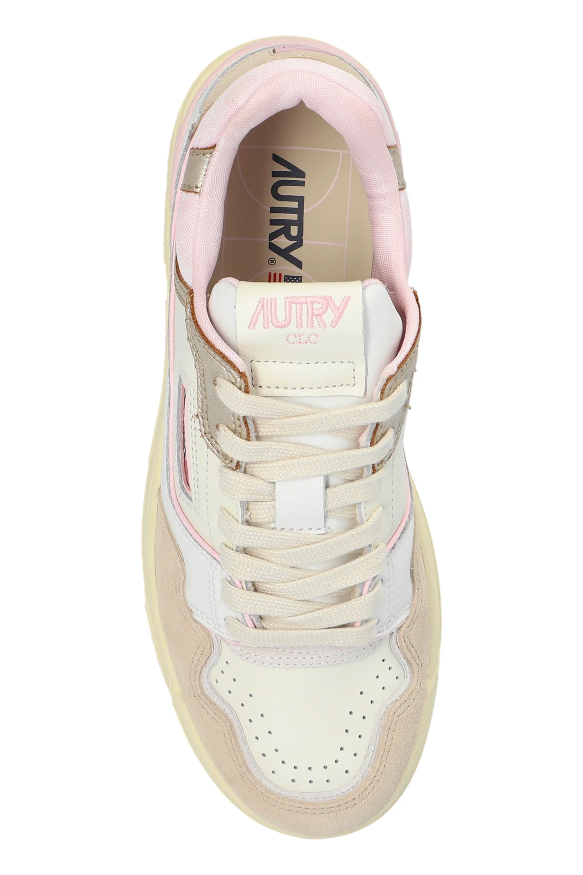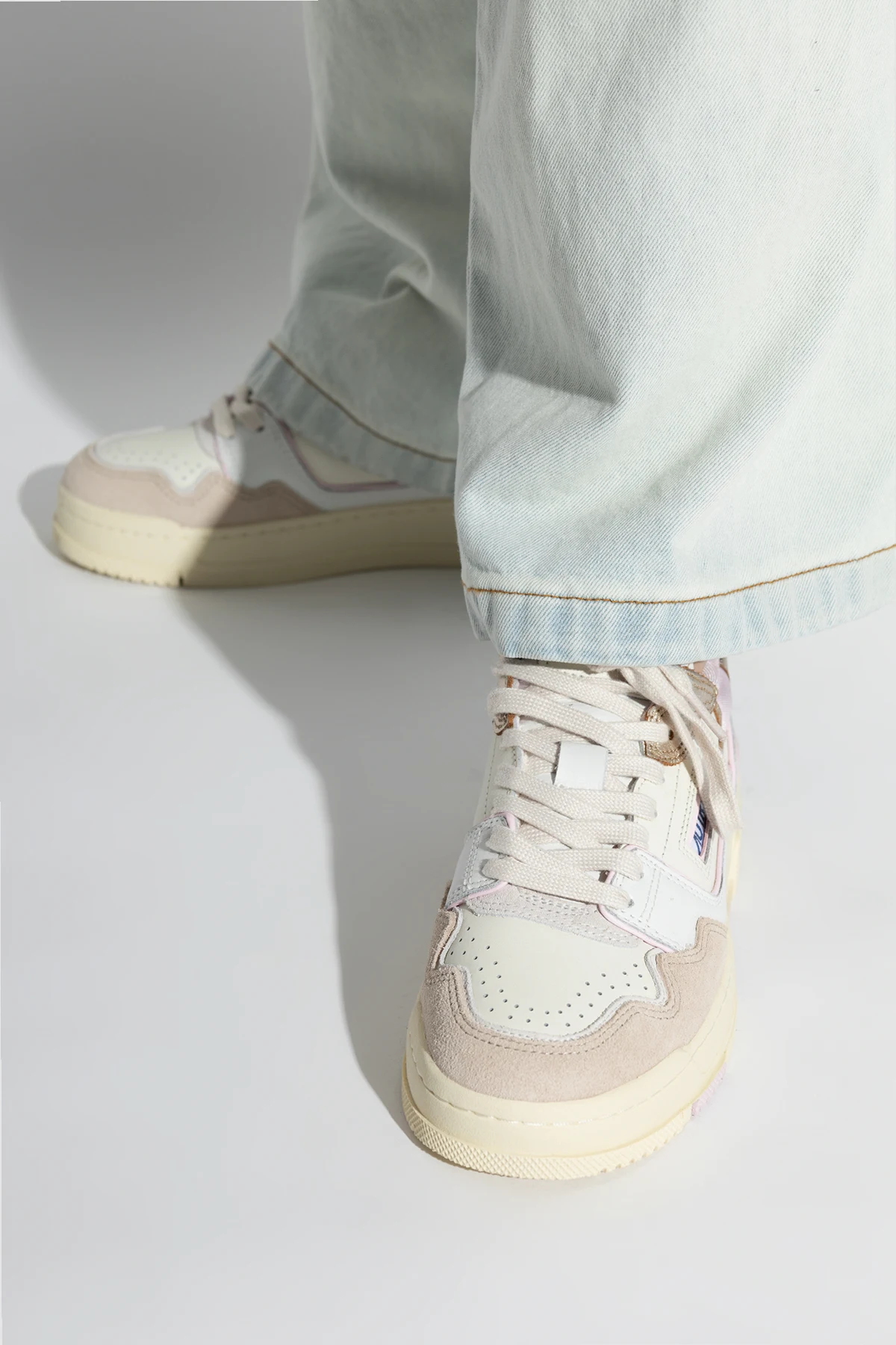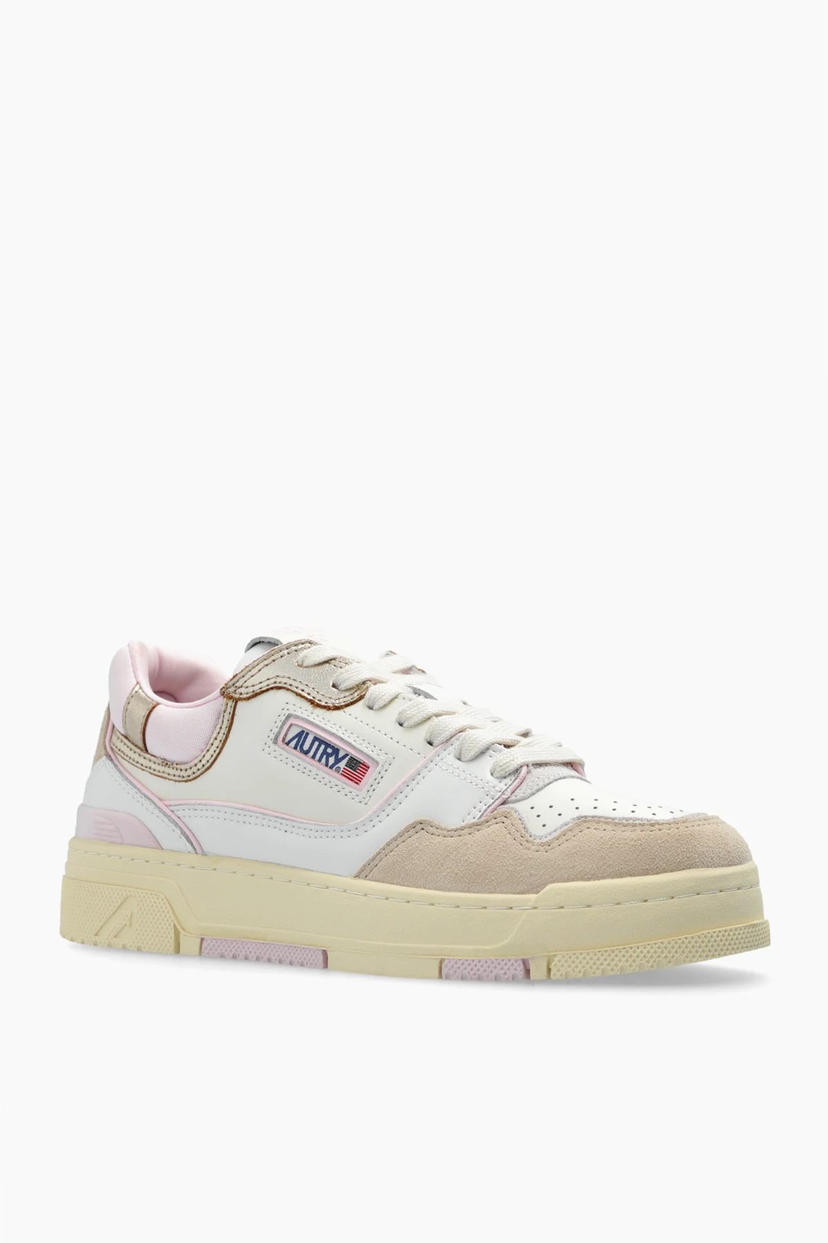 Discover the epitome of luxury and comfort with the CLC Sport Shoes by Autry. These exquisitely designed sneakers are a testament to sophisticated style, blending the soft hues of light beige, white, and pastel pink in a harmonious multicolor palette. Each step reflects a commitment to excellence, with a classic, sporty silhouette that signifies both elegance and agility. The CLC Sport Shoes are meticulously crafted from a superior mix of materials, including premium leather and high-grade synthetic fabric, ensuring a blend of durability and finesse. The nubuck or suede detailing on the toe and sides, paired with the smooth texture of leather in other sections, sets these shoes apart. Perforations on the toe box not only accentuate their aesthetic appeal but also serve a practical purpose by enhancing ventilation. Attention to detail is paramount, with the designer\'s logo proudly displayed on the side and the shoe\'s tongue, embedding a signature of authenticity. The classic lace-up design, matched perfectly to the shoe\'s color scheme, and the thick, beige rubber sole not only add to the visual appeal but also promise exceptional comfort and cushioning. Moreover, the reinforced structure suggests a lasting durability and supportive fit, making these shoes a reliable companion for any journey. Why Purchase These CLC Sport Shoes? Exclusive Design: A unique color block pattern sets these shoes apart in a world saturated with monotony. Premium Materials: Crafted from the finest leather and synthetic materials for unmatched quality and comfort. Enhanced Comfort: The thicker sole offers superior cushioning, ensuring every step is a leap in luxury. Ventilated Structure: Perforations provide breathability, keeping your feet cool and comfortable. Signature Details: Embellished with the designer\'s iconic logo, these shoes are a mark of true craftsmanship and luxury.